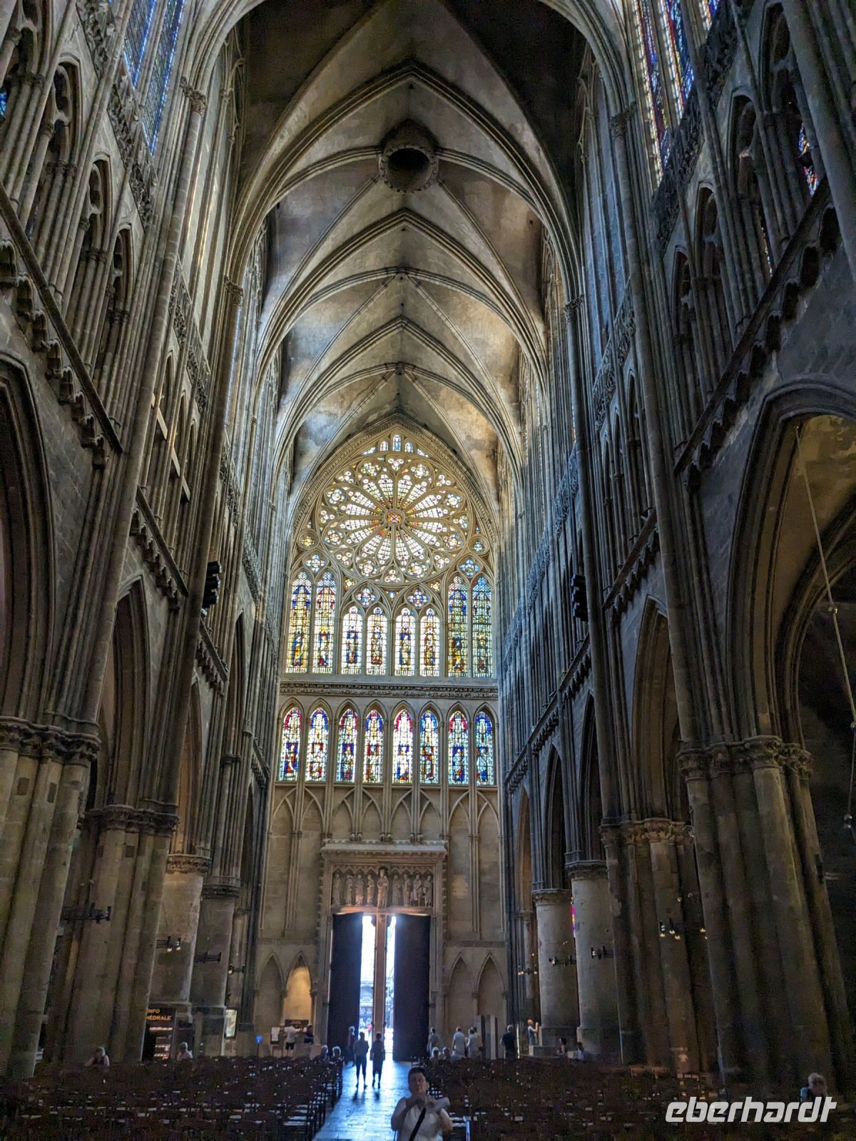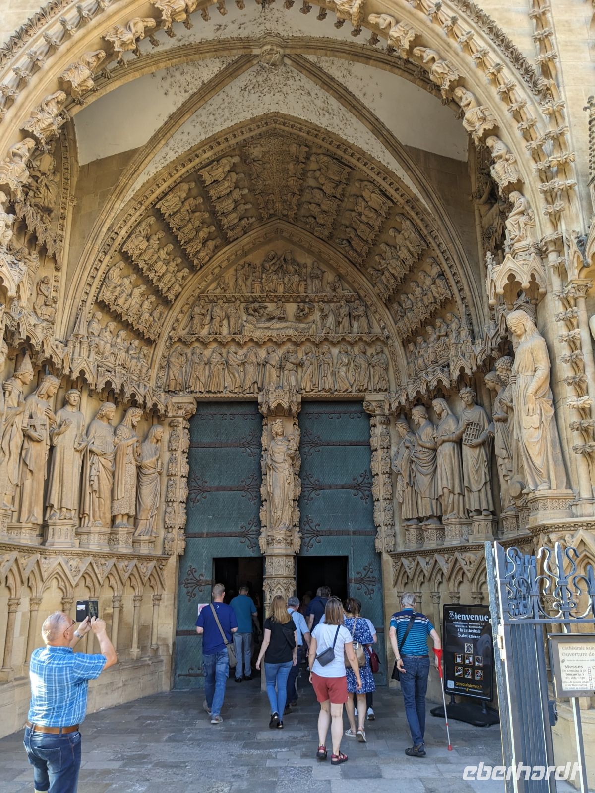 Bis zum Abendessen war noch etwas Zeit, die wir zu einem kleinen Rundgang in Metz nutzten. Die Metzer Altstadt, die schon außerhalb der alten Stadtmauern an der Place Louis beginnt, ist recht hübsch und wegen des warmen Spätsommer-Wetters saßen überall die Leute in den Cafes bzw. auf Straßen und Plätzen vor den Bistros und kleinen Bars und es wirkte ganz so, wie man es in vielen französischen Filmen sieht. Wir erreichten nach einem Spaziergang durch die belebte Innenstadt die Kathedrale, die glücklicherweise noch geöffnet hatte. Wie immer staunten die Gäste über die ungewöhnliche Höhe des gotischen Mittelschiffs, und die herrlichen bunten Glasfenster, die der Metzer Kathedrale ein unvergleichliches Flair verleihen. Unser Spaziergang führte dann weiter über die Mosel zum Theaterplatz, wo das wohl älteste im Original erhaltene Theater Frankreichs steht, noch aus der Zeit vor der Revolution von 1789. Den Abschluss bildete der Gang über die alte Zwingerbefestigung der Esplanade an der das ehemalige Arsenal und die vermutlich am besten erhaltene Templerkapelle in ganz Europa stehen.