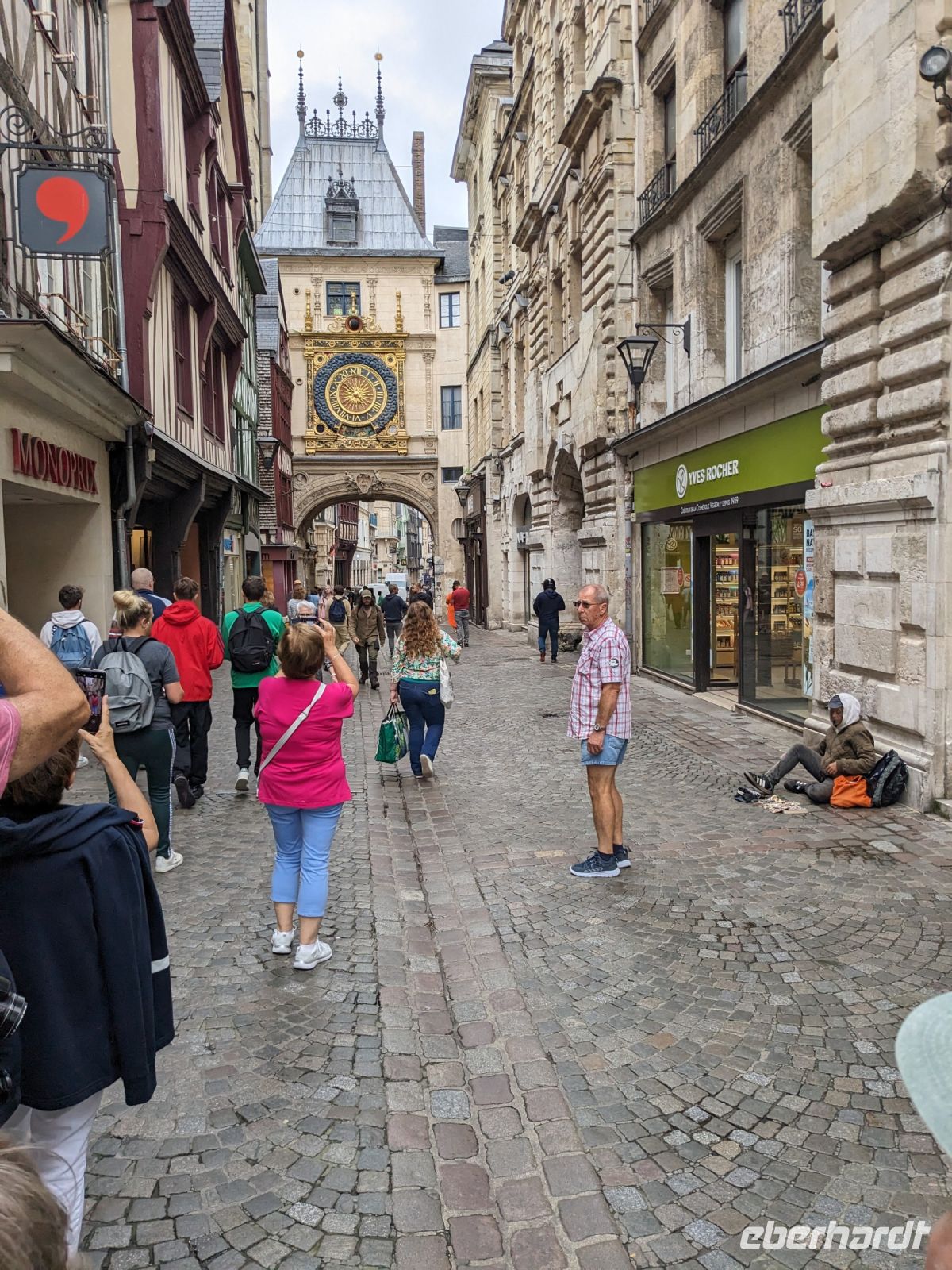 Der weitere Rundgang durch die Altstadt von Rouen führte uns am gotisch verzierten aber in der Frührenaissance erbauten historischen Parlament der Normandie, heute der Justizpalast der Region, vorbei und später durch den Uhrturm mit astronomischer Uhr, gleich neben dem geschichtsträchtigen Belfried Unser langer, aber interessanter Stadtrundgang endete am alten Markt von Rouen, der von bunten alten Fachwerkhäusern umstanden, immer noch eines der Zentren der Stadt darstellt. Anschließend gab es noch eine Stunde Freizeit zum individuellen Bummel durch Rouen.
