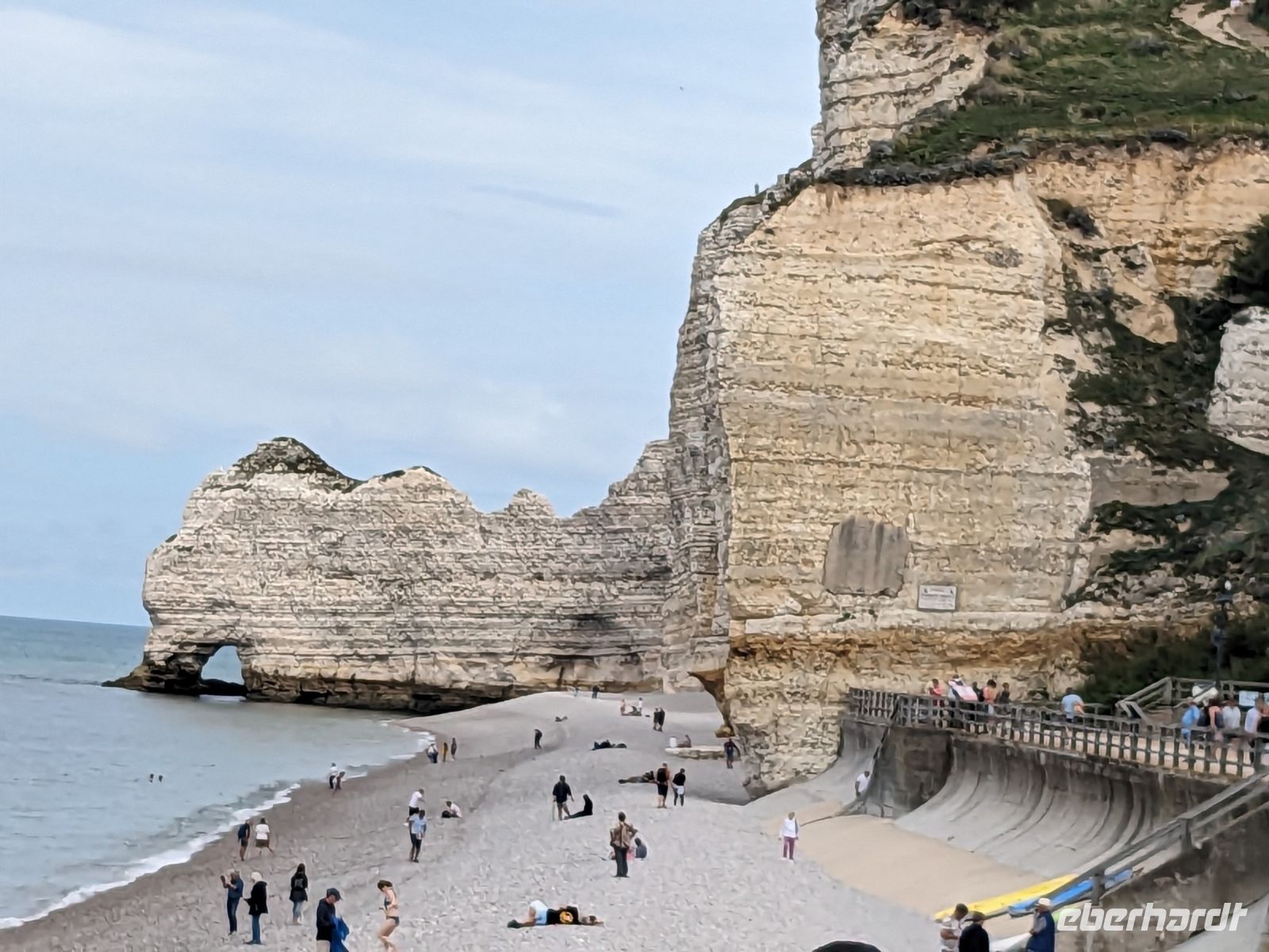Der Nachmittag begann mit der Fahrt in Richtung Küste. In Ètretat, dem für seine Felsformationen berühmten normannischen Seebad, das schon viele Künstler, insbesondere Literaten wie Maupassant oder Flaubert angelockt hatte. Nach kurzem Spaziergang erreichten wir die Schotterküste von der aus sich der Blick auf die wundersamen, von der Natur geschaffenen Formen der Kreidefelsen, die an Elefanten erinnern, richtete.