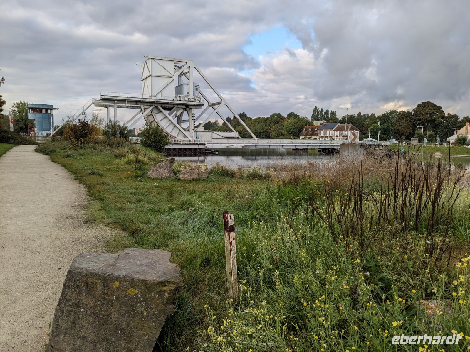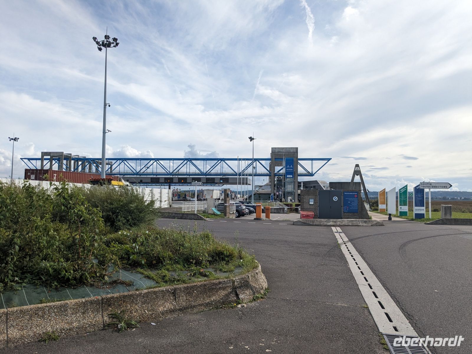 Danach ging es zur größten französischen Brücke, die fast so lang ist wie die Champs-Elysées in Paris. Die 1995 eingeweihte Pont de Normandie ist bis heute eine der größten Schrägseilbrücken der Welt. Über 60 m über dem Höchstwasserspiegel der Seinemündung erhebt sich der gewaltige Brückenbogen mit der vielbefahrenen mehrspurigen Straße.