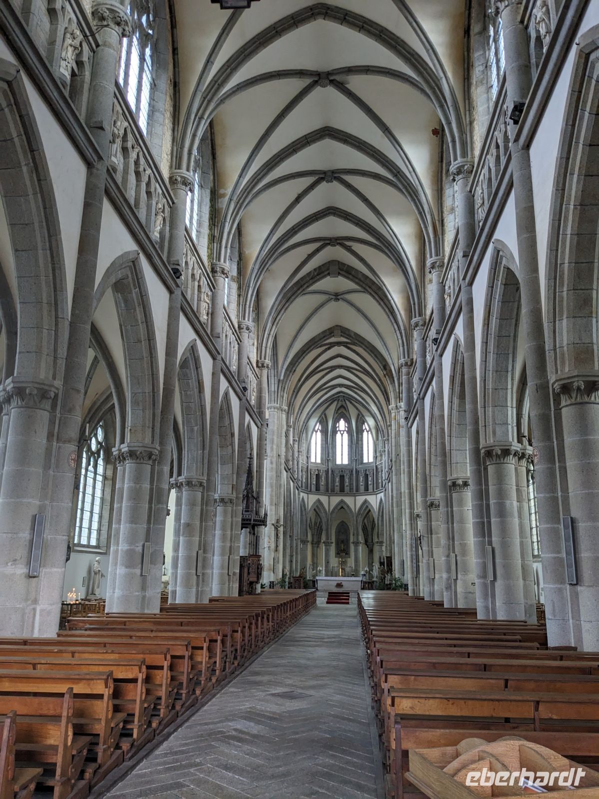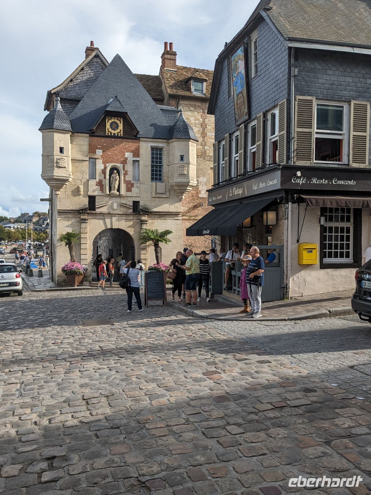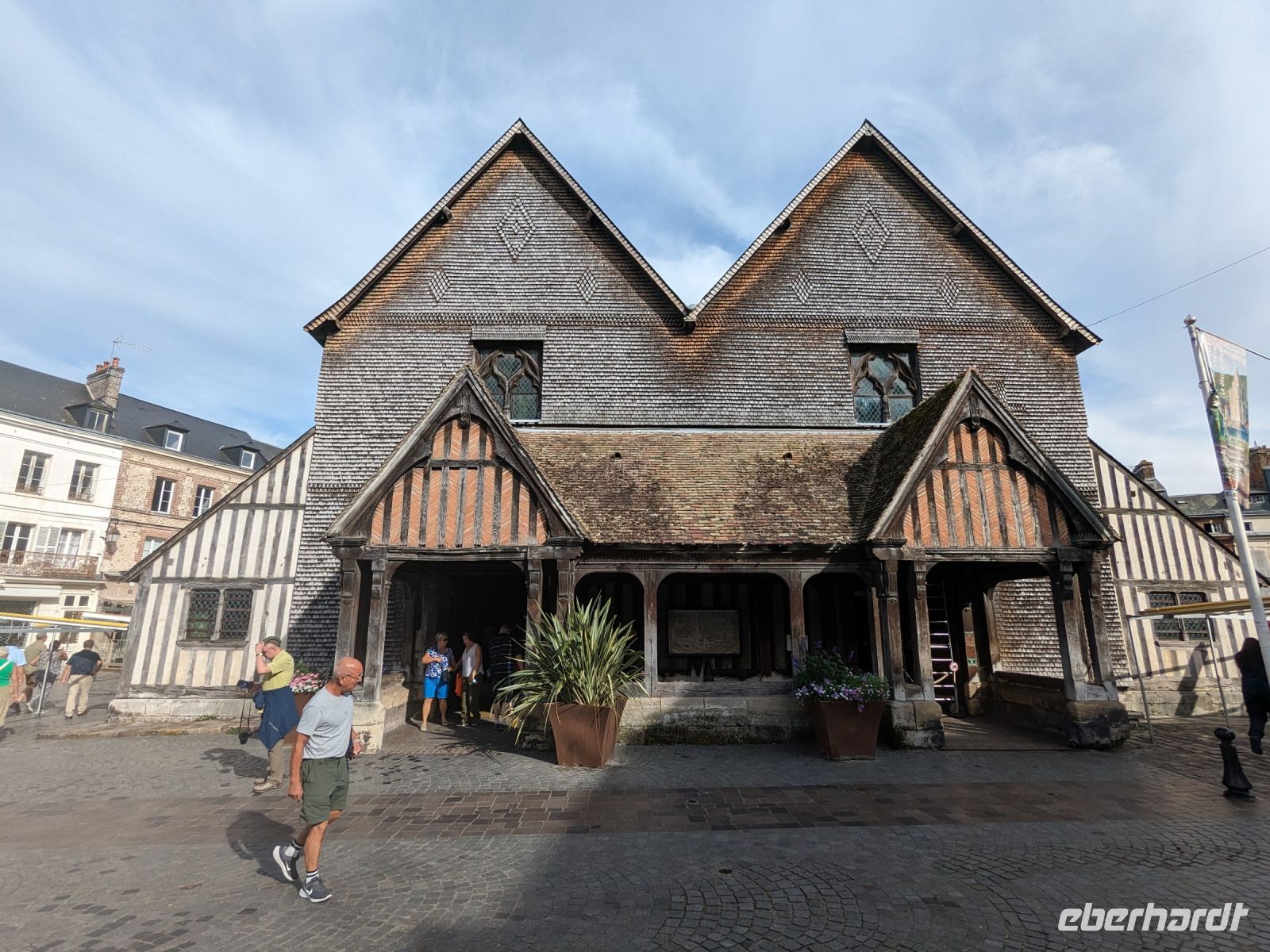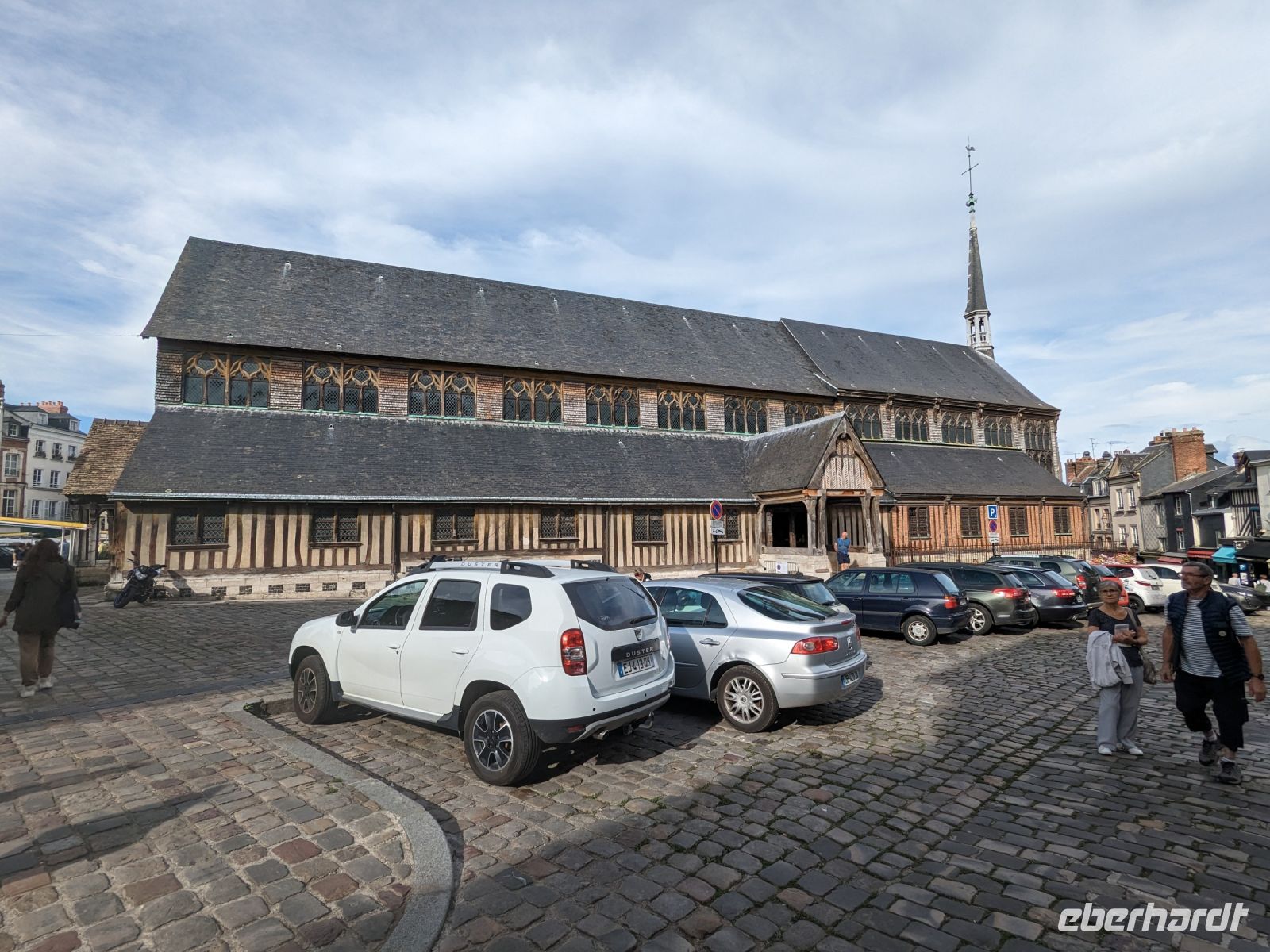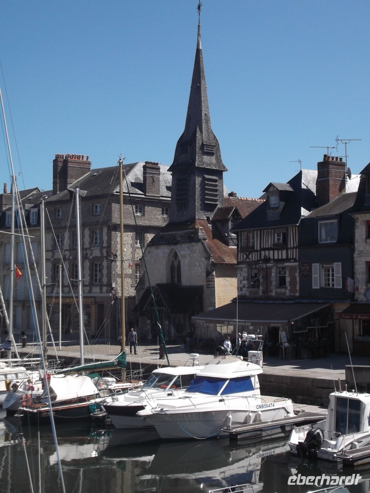 Anschließend verbrachten wir noch etwas Zeit in der hübschen alten Hafenstadt Honfleur. Ihre malerischen Gassen, vor allem das von hohen, schiefergedeckten Häusern umstandene Hafenbecken ist eine Touristenattraktion und zog mit ihrem Flair des 17. Jahrhunderts einst namhafte Künstler, vor allem Maler, an. Auch die Entdeckung und französische Kolonialisierung Kasnadas begann in diesem Hafen. Sehenswert neben dem historischen Hafenbecken ist vor allem auch die alte Katharinenkirche, erbaut kurz nach dem französischen Sieg im hundertjährigen Krieg, als überall Baumeister und Steinmetze fehlten. So errichteten hier in Honfleur Schiffszimmerleute die sehr eindrucksvolle zweischiffige Kirche und ihren malerischen freistehenden Fachwerk-Glockenturm aus den Materialien alter Schiffe.