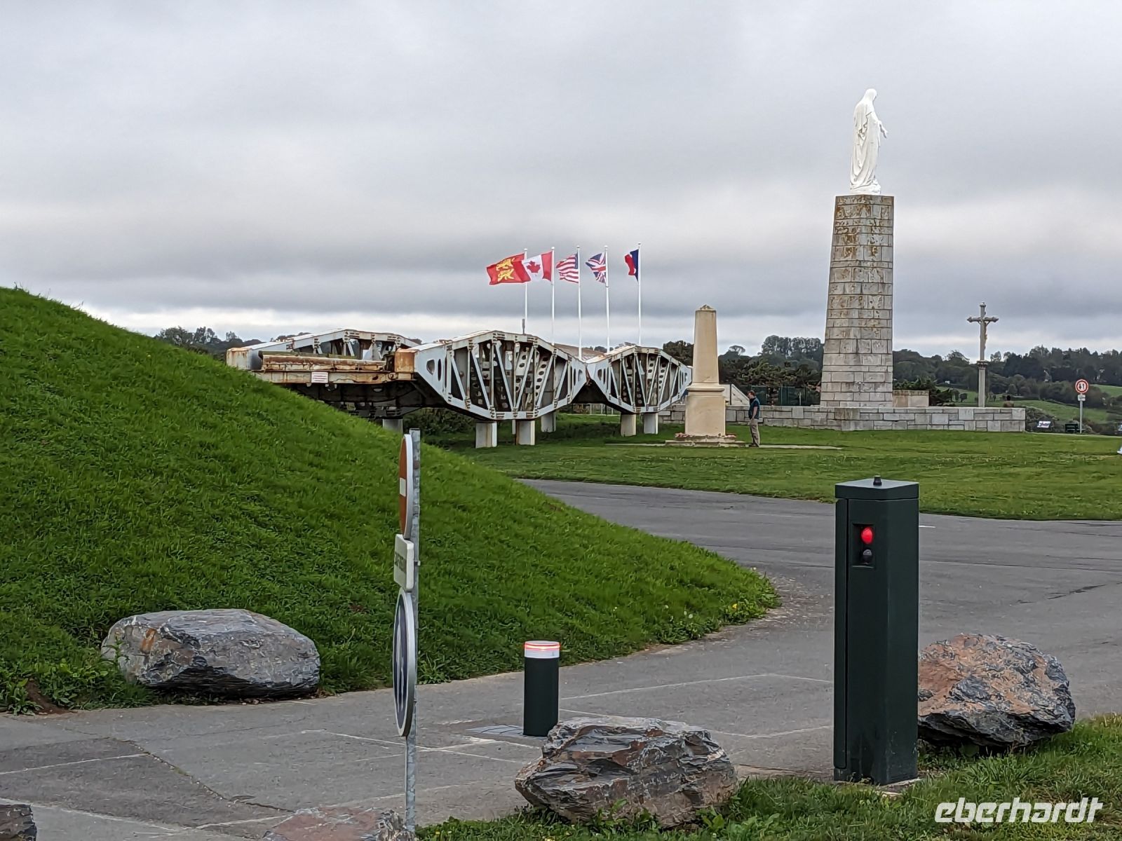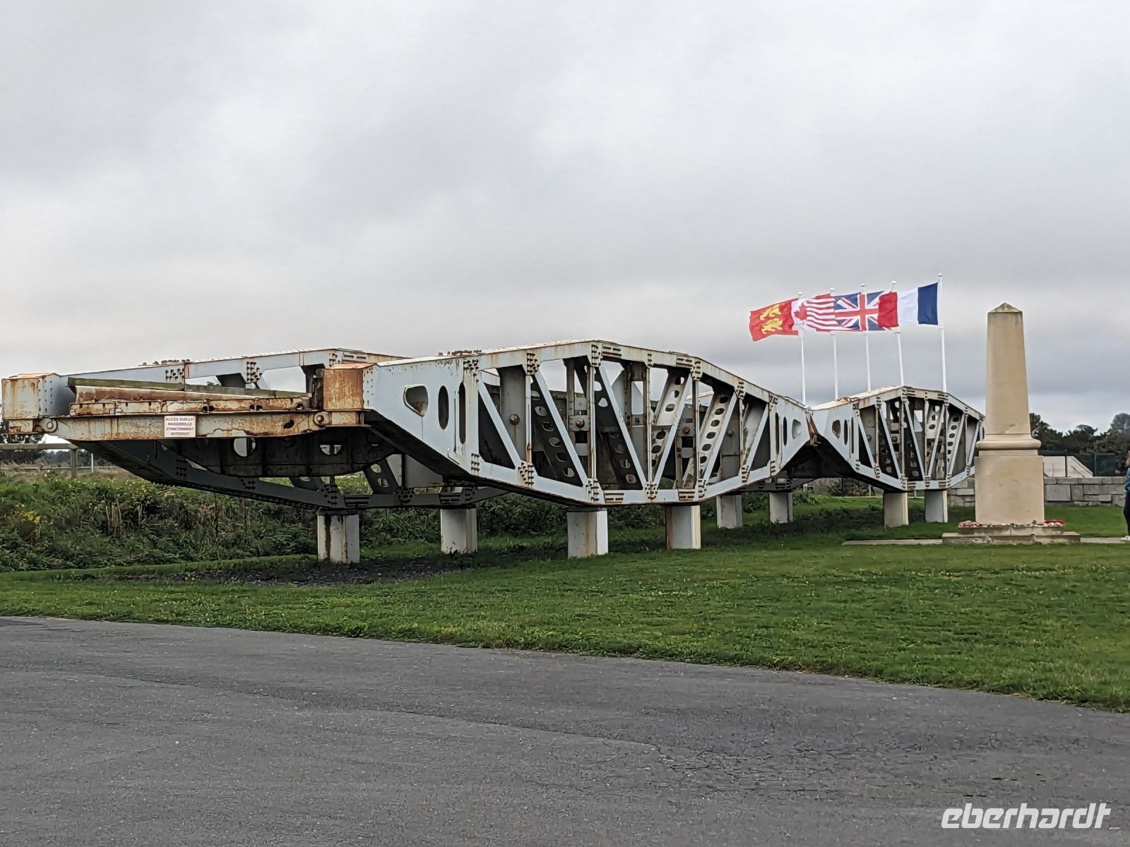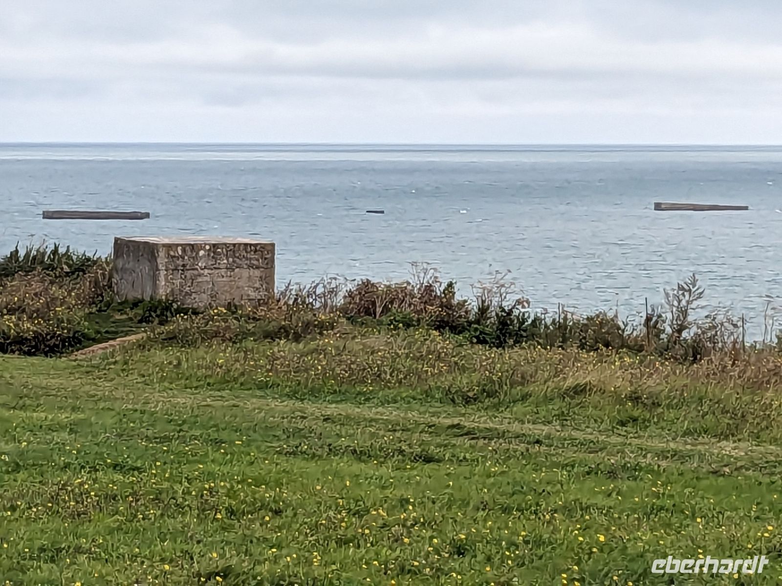 Unsere Weiterreise in die Bretagne begann heute mit einem Besuch der berühmte „Landungsküste“ der Aliierten in der Normandie im Juni 1944. Diese größte miliztärische Landungsoperation aller Zeiten – zumeist nach der englischen Version „D-Day“ genannt, war Auftakt zum letzten Kapitel des 2.Weltkrieges. Die unter dem Codenamen „Overlord“ bekannte Aktion britischer, amerikanischer, französischer und kanadischer Streitkräfte läutete die endgültige Niederlage Hitlerdeutschlands auch an der Westfront ein. Etwa 4300 Schiffe nahmen an der Anfang Juni in England begonnenen Lande-Operation teildie einen Überraschungsangriff auf die deutsche Westfront startete, der hier nicht erwartet wurde. Da die Küste ließ eigentlich keine großangelegte Anlandung von Soldaten und Militärgerät zuließ, brachten die beteiligten Schiffe der Alliierten ihre Häfen mit und legten mit Hilfe von betongefüllten riesigen Senkkästen 33 künstliche Molen an. Bis heute kann man die Reste dieser sogenannten „Mulberry-Häfen“ selbst bei Flut sehen. Überall in der Umgebung eines der wichtigsten Landungsorte - Arromanches - findet man Spuren dieser bedeutsamen Ereignisse und der damit verbundenen menschlichen Leistungen.