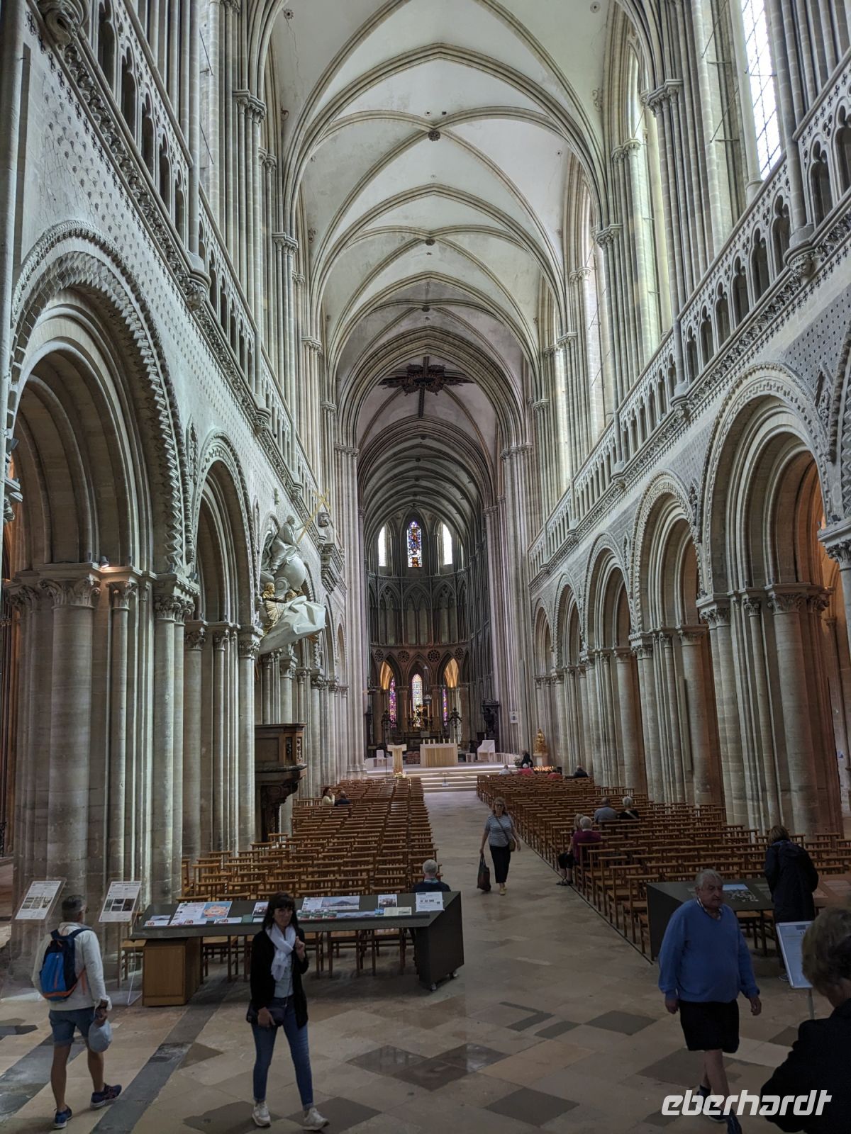 Später dann setzten wir unsere Fahrt zur früheren normannische Hauptstadt Bayeux fort. Hier gibt es nicht nur eine sehenswerte Kathedrale, gewachsen in Romanik, Gotik und Renaissance, sondern ein besonderes Museum zeigt eines der eindrucksvollsten Textilkunstwerke aus dem Mittelalter. Der „Teppich von Bayeux“ ist ein fast 70 m langer und nur 52 cm breiter Textilstreifen, dessen historische Stickerei die Geschichte der Eroberung Englands durch die Normannen und die Entscheidungsschlacht 1066 bei Hastings zeigt. Es ist wundervoll, dieses herrlicghe, gut erhaltene Stück mittelalterlicher Geschichte zu betrachten, das hzum UNESCO-Welt-Dokumentenerbe gehört.