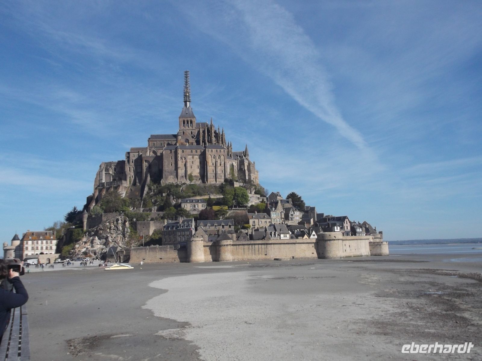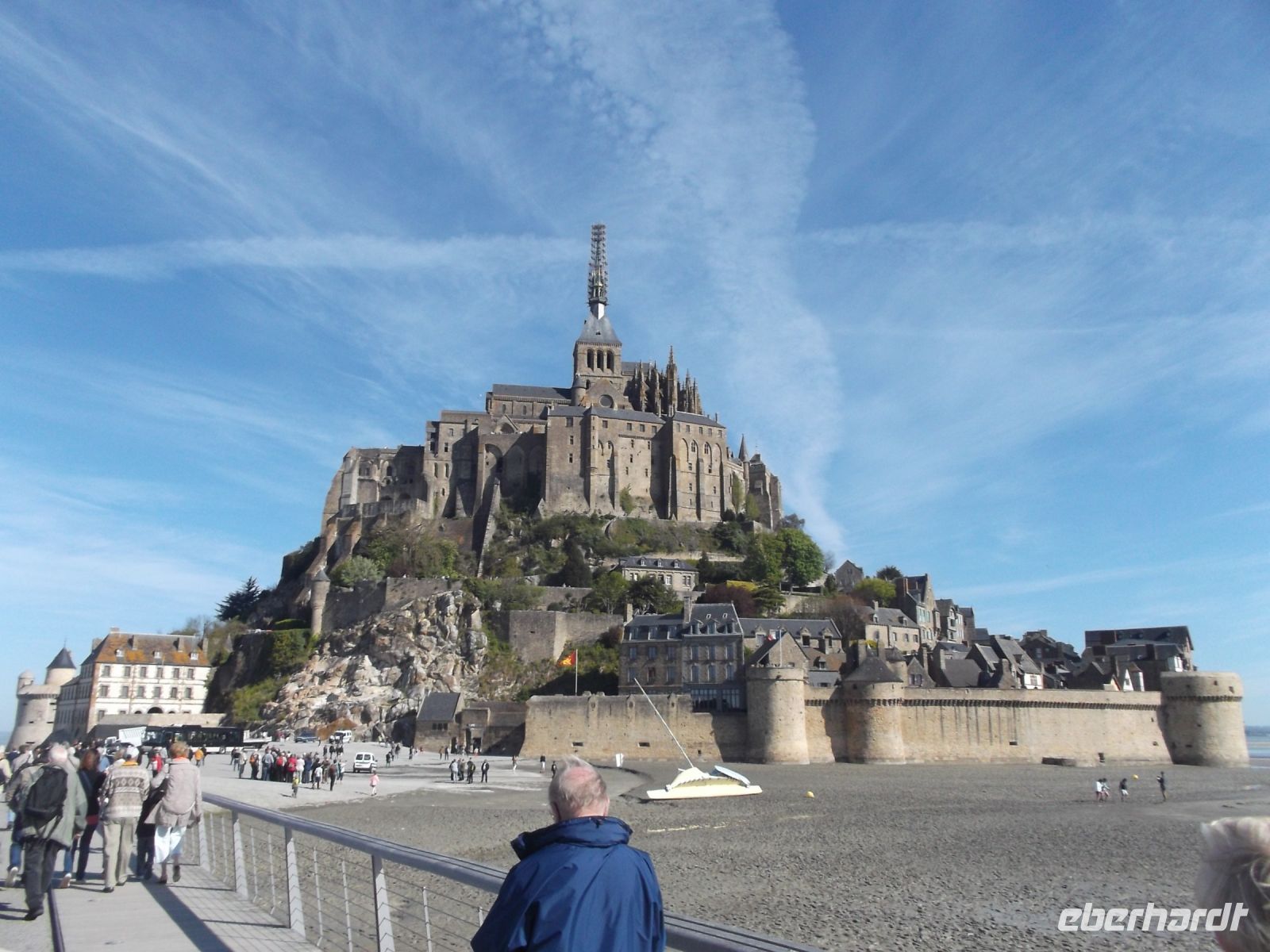 In gewisser Weise ist es DER Höhepunkt-Tag, wenn man eines der schönsten Objekte des europäischen UNESCO-Weltkulturbes, den Mont St.Michel, besucht. Immerhin bewunderte man den „Berg“ schon im Mittelalter und nannte ihn „Wunder des Abendlandes“. Die Klosterfestung inmitten der Bucht von Mont St.Michel liegt auf einer Gezeiteninsel, die bei Ebbe trockenfällt und bei Flut von Wasser umspült wird. Ihre eindrucksvollen Bauwerke sind durch jahrhundertelange emsige Bautätigkeit entstanden. Verteidigungsanlagen ähnlich einer wehrhaften Stadtmauer umgeben fast auf Meereshöhe die unglaublich massiven turmhohen Stützmauern, die als Krönung die Aufbauten eines Klosters und einer großartigen gotischen Kirchenlage tragen. Ihre Spitze mit dem krönende Erzengel Michael ragt über 150 m hoch in den Himmel. Wohl kaum jemand kann sich dem Eindruck entziehen, der von dieser Anlage ausgeht – gelegen im Wechsel der Gezeiten und umtost von Wellen und Stürmen und begleitet vom Geschrei der Lachmöwen. Immer wieder hebt das Spiel des Lichtes auf dem Wasser die atemberaubende Architektur des Klosterberges hervor. Es war eine technische Meisterleistung der unergründlich scheinenden Geschichte, die hier seit Jahrhunderten Besuchern, Pilgern, Wallfahrern, aber auch gekrönten Häuptern präsentiert wurde. Wallfahrtsort und Hoffnungsträger, Ort der Profite für Reliquienhändler, deren Part heute die oft überteuerten Souvenirläden übernommen haben, Gebetsstätte und Spielball der Geschichte, aber auch Schauplatz von Katastrophen – so wirkt der hoch aufragende Mont St.Michel fast wie eine Verdichtung der Geschichte ganz Europas.