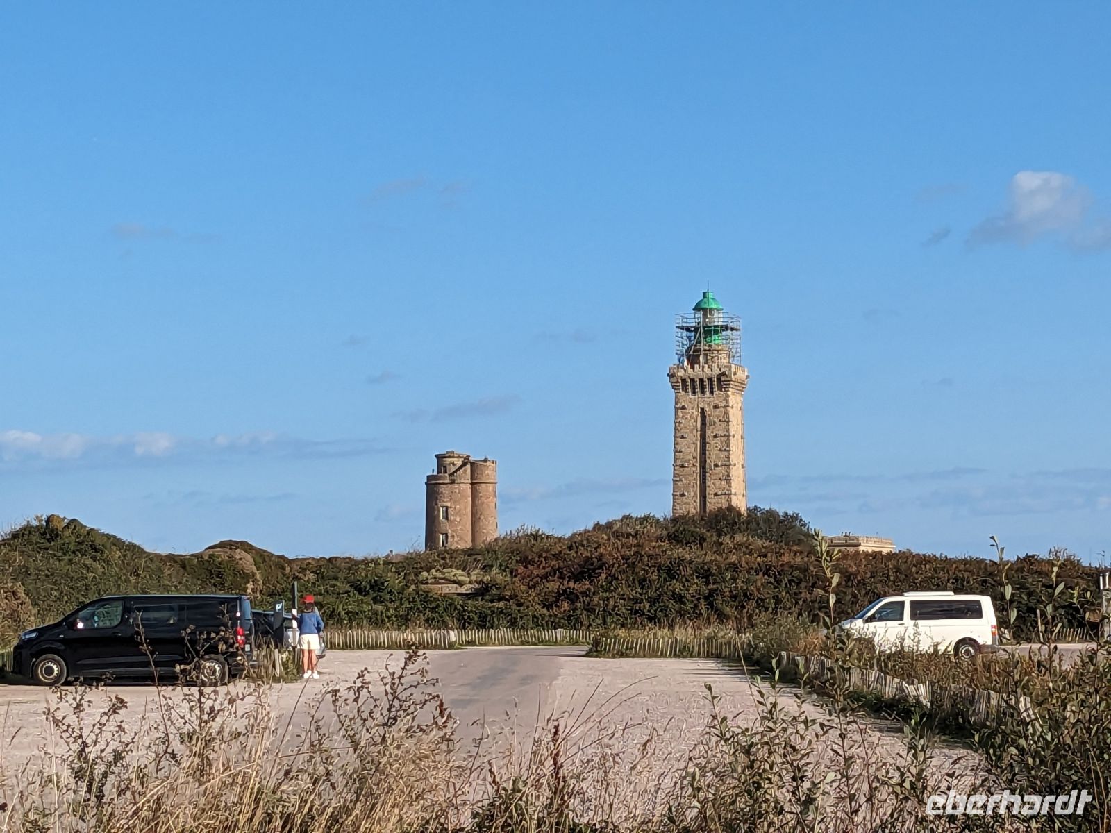Landschaftliche Schönheiten, von denen die Bretagne eine Menge zu bieten hat, bilden traditionell den Hauptinhalt dieses Reiseprogramms. Erstes Ziel heute war das Cap Frehel. Zunächst mussten wir an St Malo vorbei und den Fluß Rance überqueren, dessen Mündung die Städte St. Malo und Dinard trennt. Hier gibt es eine Besonderheit, die den „Tidenhub“, den Höhenunterschied des Wasserspiegels zwischen Ebbe und Flut, energietechnisch nutzt. In der Stau-Mauer, die das Wasser der Mündung bei Ebbe zurückhält, sind Turbinen untergebracht, die als Gezeitenkraftwerk – übrigens das einzige ökonomisch genutzte in Europa und inzwischen vor allem als technisches Denkmal interessant – den Höhenunterschied der Gewässer zur Stromerzeugung nutzen. Eine Stunde später erreichten wir das Cap Frehel. Auf 70 m Höhe über dem Meer steigen die Klippen hier an und bilden ein grandioses Naturschauspiel, wenn das türkisfarbene Meer an die Küste aus rotem, schwarzem und grauem Gestein tost.1950 wurde der interessante Leuchtturm, erbaut, dessen Leuchtfeuer noch aus 120 km Entfernung gesichtet werden kann. Hier unterhalb des Turms beginnt ein hübscher Rundwanderweg durch Heidekraut und Ginster zu den von Möwen und Kormoranen bevölkerten Klippen.
