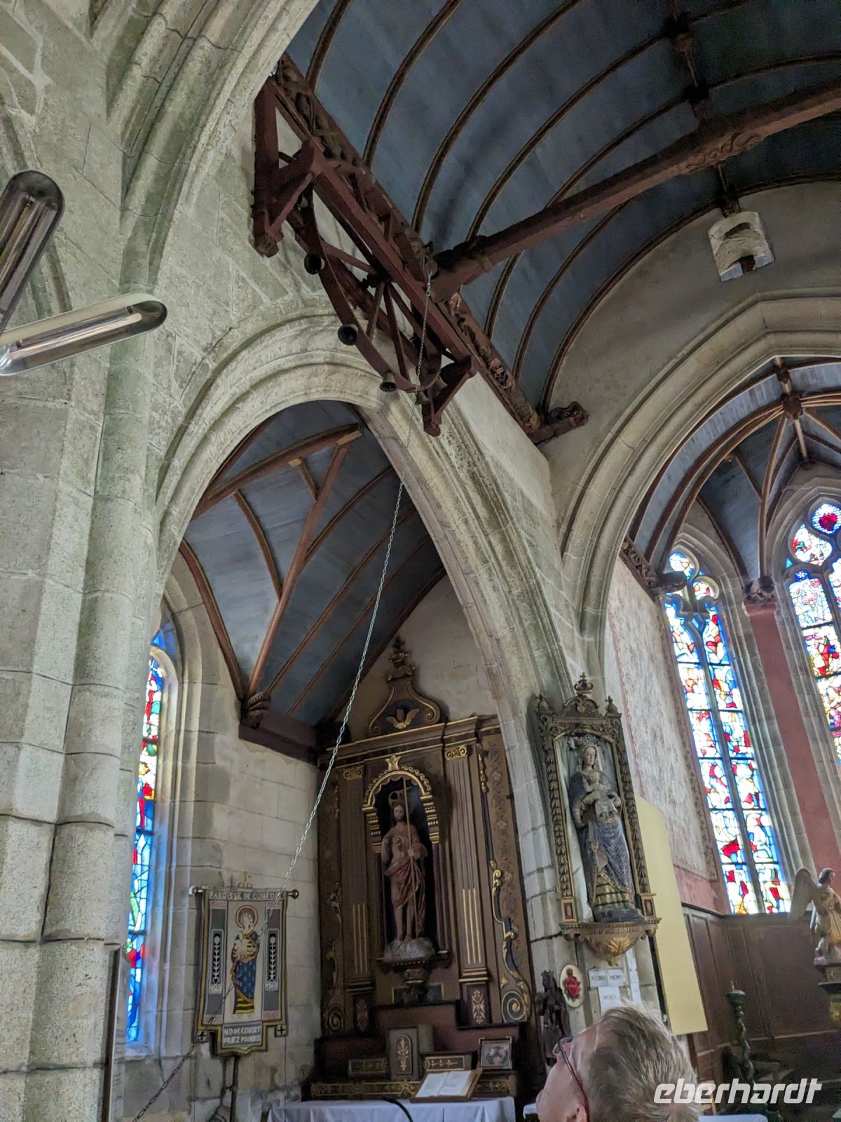 Danach setzten wir unser Programm per Bus fort und besuchten zusätzlich bei einem Stopp unterwegs in Meilars die als besondere Wallfahrtskirche geltende Dorfkirche Notre Dame de Confort mit dem „Rad der wundertätigen Madonna“. Wenn man es kräftig dreht, so sagt die Legende, dann gehen Wünsche in Erfüllung.