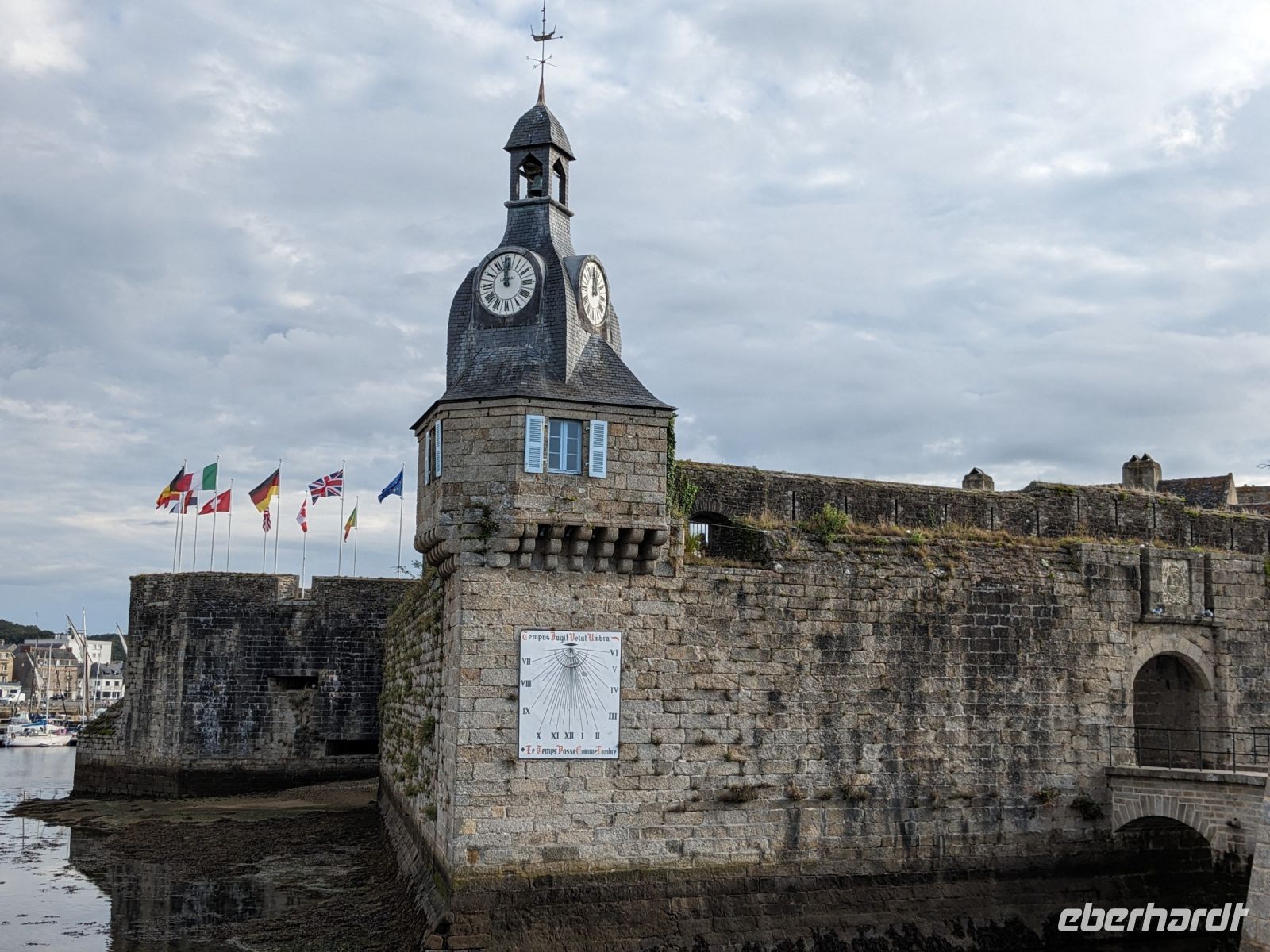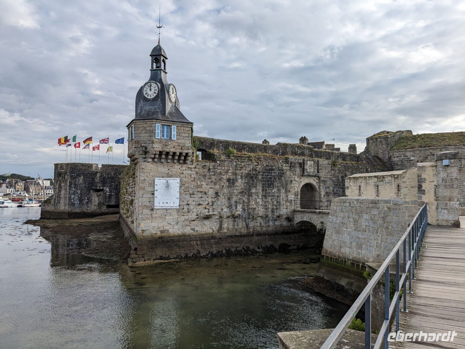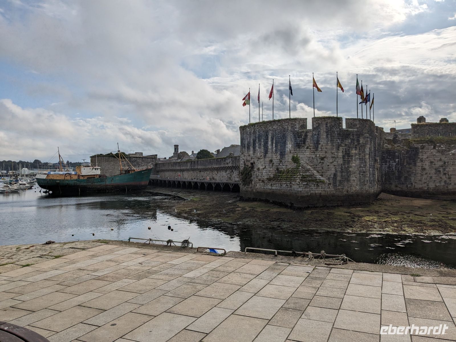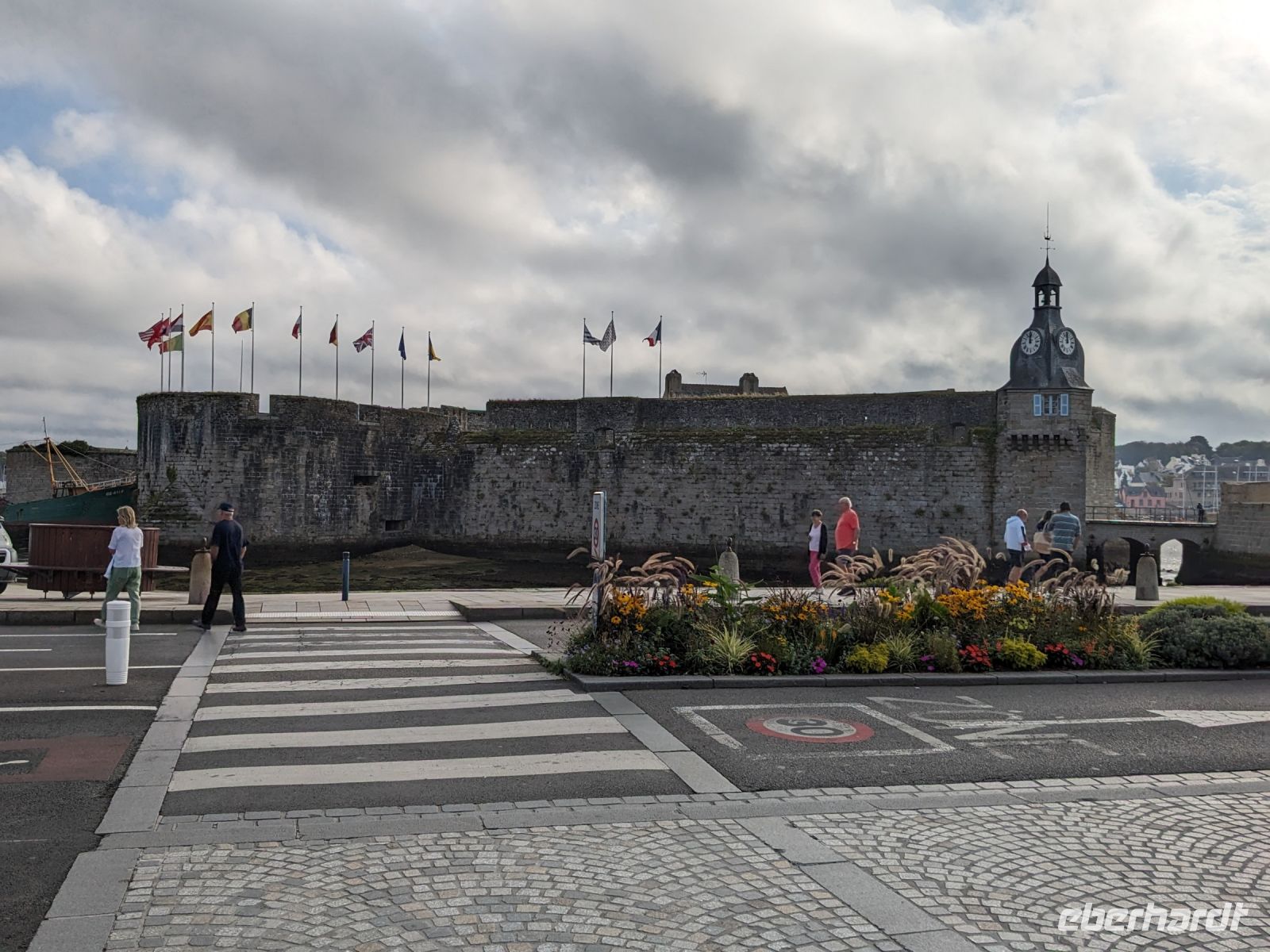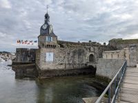 Die Fischerei-Hochburg und mit Ihrer Altstadt auf der Liste des UNESCO- Weltkulturerbe stehende Concarneau war heute der erste Tageshöhepunkt. Der berühmte französische Festungsbaumeister Ludwigs XIV., Sebastien Prestre Le Vauban, hatte einst die winzige – etwa 350 auf 150 m messende Insel direkt an der Küste neben dem Fischereihafen befestigt, die wie ein steinernes Schiff wirkt. Die gewaltigen Festungswerke liegen ehrfurchtgebietend vor dem Betrachter, mit Uhrturm und ausladenden Kanonenbastionen als Bug. Früher gab es nur einen einzigen Zugang, gesichert durch Zugbrücken und eine noch vorhandene kleine Vorburg. Durch diesen Eingang gelangt man bis heute in Vaubans Garnisons- und Artilleriefestung. Zwei Hauptstraßen, verbunden durch wenige Quergassen machen das Innere des kleinen Ortes aus und vermitteln einen guten Eindruck von einer Festungsstadt aus dem 17. Jahrhunderts.