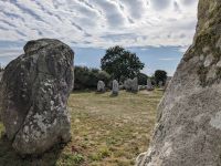 Danach ging es zu den berühmten großen Alignements von Carnac. In kaum einem anderen Gebiet der Welt sind so viele Monumente der jungsteinzeitlichen Megalithkultur auf engstem Raum konzentriert wie hier in der südlichen Bretagne. Und nur hier findet man die besondere Art megalithischer Hinterlassenschaften - die Alignements, kilometerlange parallele Setzungen riesiger Steine. Die aus insgesamt mehr als 3000 Steinen bestehenden Reihen von Carnac und Locmariaquer, die man unter den Namen Le Menec, Kermario und Kerlescan kennt, sind eingezäunt und dürfen nicht betreten werden.