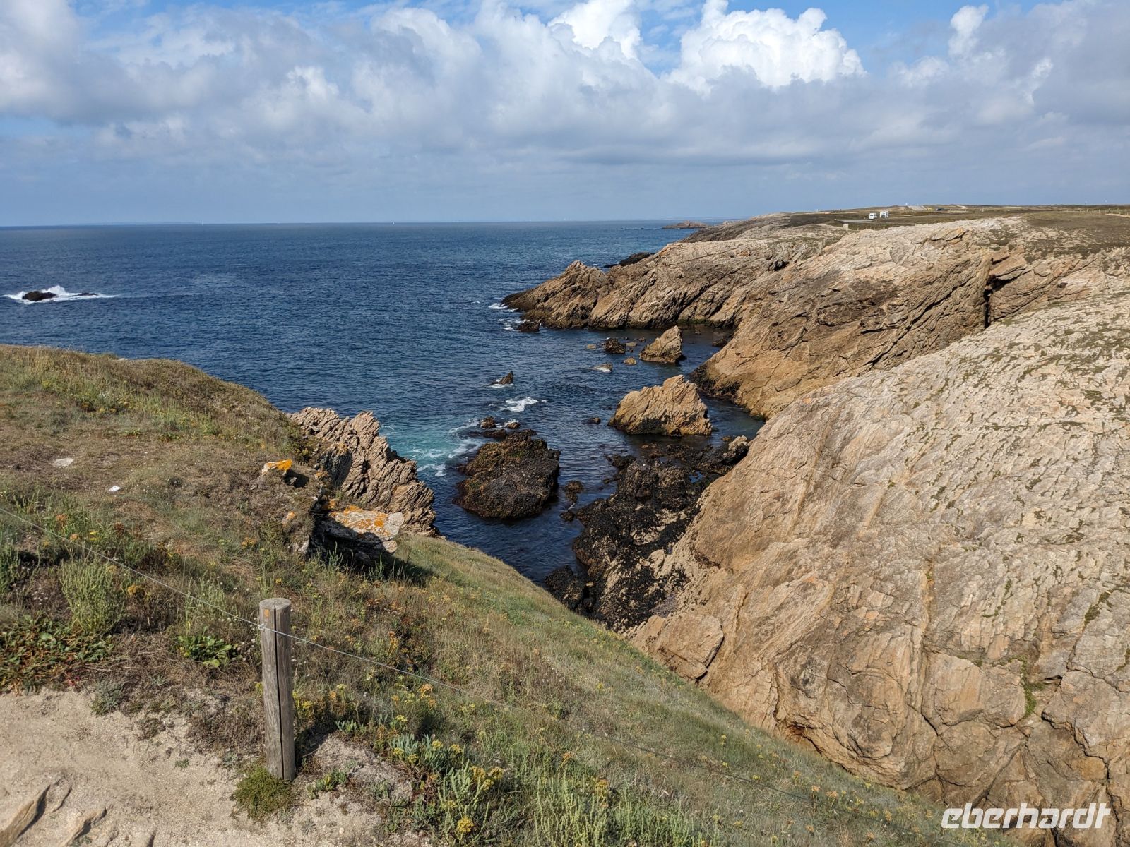 Vom Parkplatz der Pointe du Raz fuhren wir zum Fotostopp die malerische, wenn auch für die Schifffahrt gefährliche „Baie des Trepasseés“ an, oft als „Bucht der Dahingegangenen“ oder sogar „der toten Seeleute“ übersetzt. Die der Bucht vorgelagerte Felsenkette, Untiefen und eine starke Strömung machten diese Uferzone früher zu einer der gefürchtetsten an der bretonischen Küste.