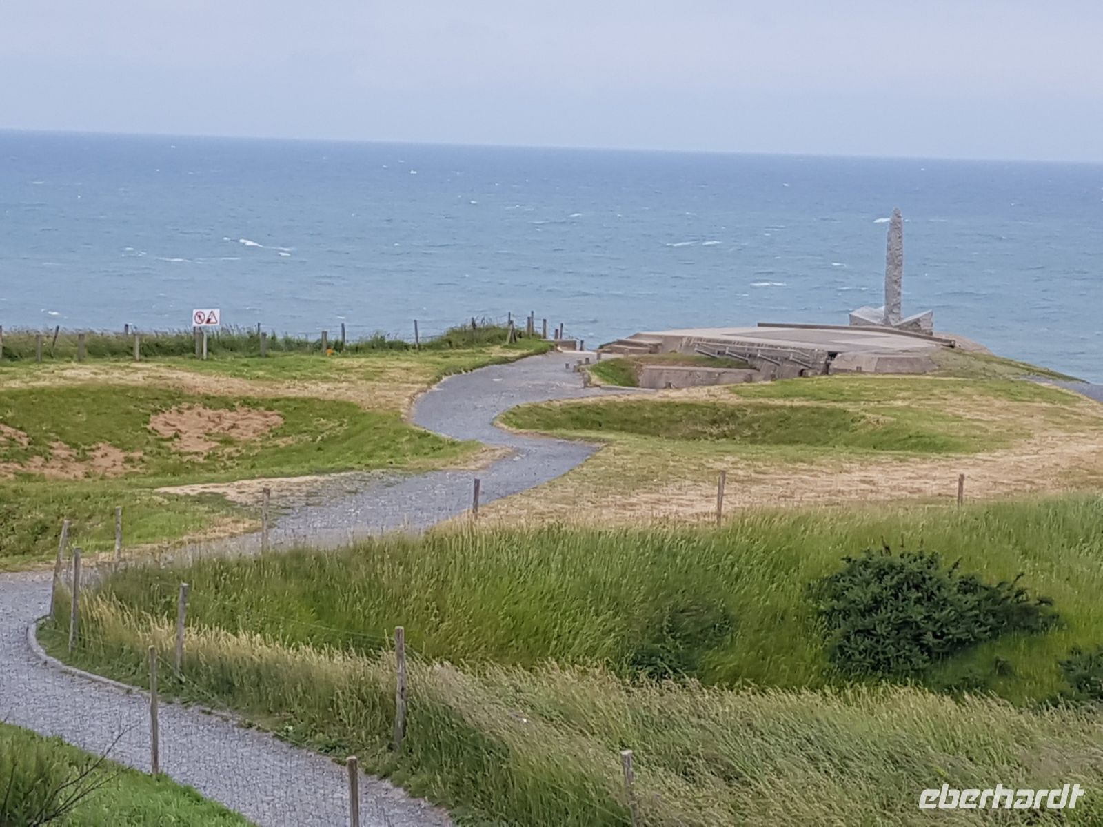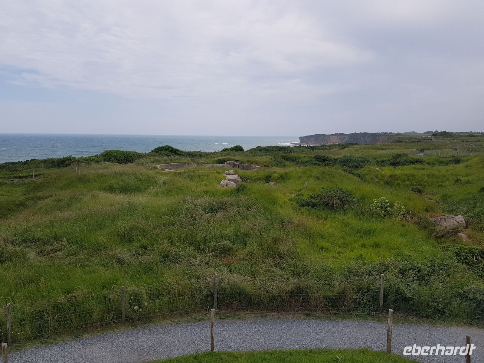Dann fuhren wir weiter zur OMAHA BEACH und erreichten die Küste von Point du Hoc. Hier kletterte ein Rangerbataillon von 225 Soldaten mit Seilen und Leitern an der Steilküste hinauf, um die deutsche Stellung, die von hier aus die Abschnitte OMAHA und UTAH BEACH beschoss, auszuschalten. Sie wurden jedoch zunächst von den deutschen Soldaten massiv bekämpft und eingekesselt, bevor in der Nacht zum 8. Juni das 116. US-Infanterieregiment und ein weiteres US-Rangerbataillon diesen Küstenabschnitt vollständig einnehmen konnte.