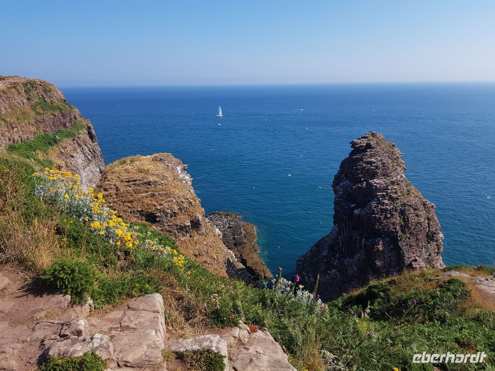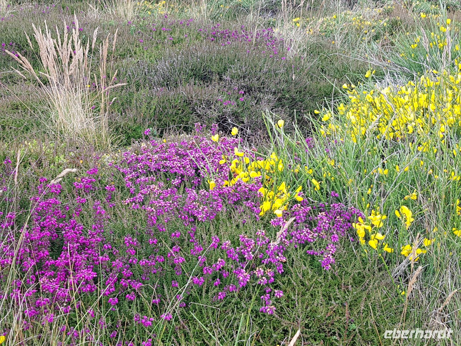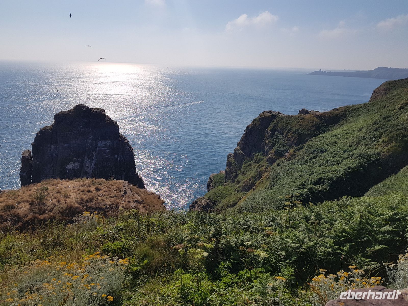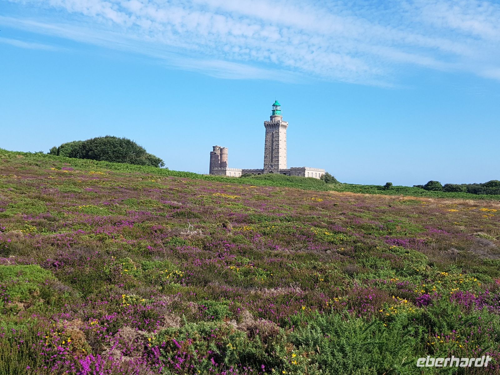 Unsere Rundreise durch die Bretagne führte uns an diesem Tag zu zwei spektakulären Küstenlandschaften. Zuerst fuhren wir an dem bekannten Seebad Dinand vorbei und erreichten die Côte d'Emmeraude, die Smaragdküste, mit ihren weiten, flachen Buchten und steilen Felsklippen. Am Cap Fréhel, einer 70 m hohen Steilküste, legten wir eine längere Pause ein, um dieses bezaubernde Naturparadies zu erwandern. Ein wunderschöner Rundweg führt seit Kurzem an der Küste entlang zum Leuchtturm und zur Spitze des Caps. Während sich rund um den Leuchtturm ein Teppich aus violetter Erika und gelben Ginster ausbreitet, fasziniert die Vogelwelt an den steil aufragenden Felsen des Cap. Es war für uns kaum zu fassen, was für eine einzigartige Naturszenerie uns hier umgab.