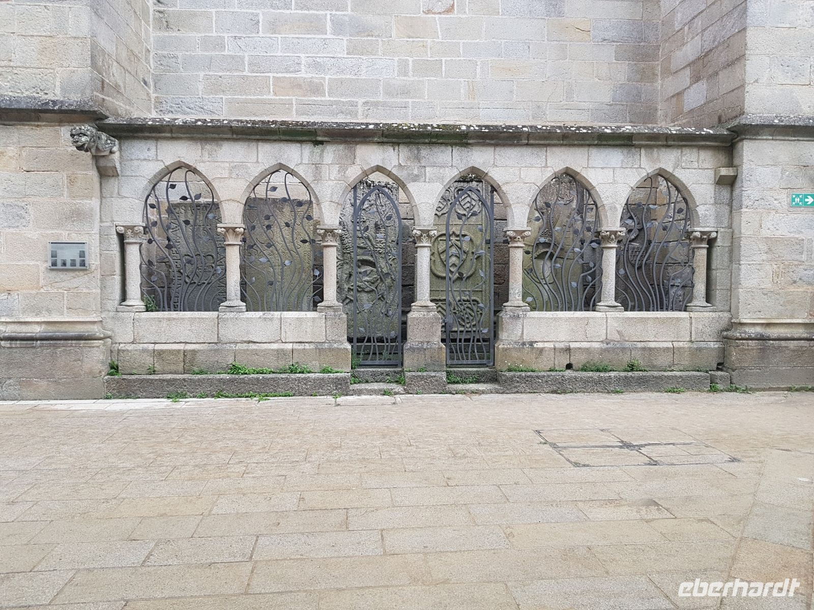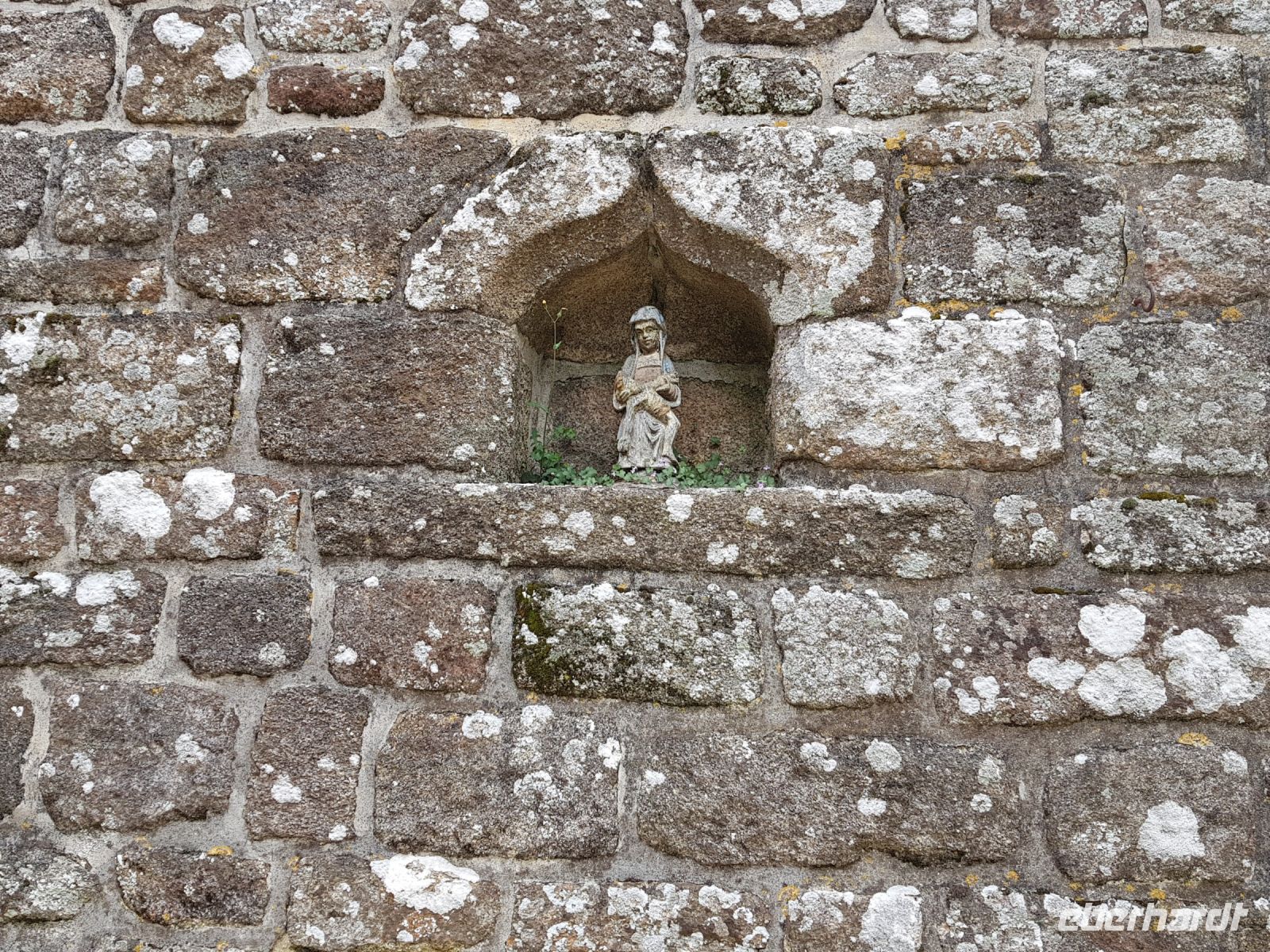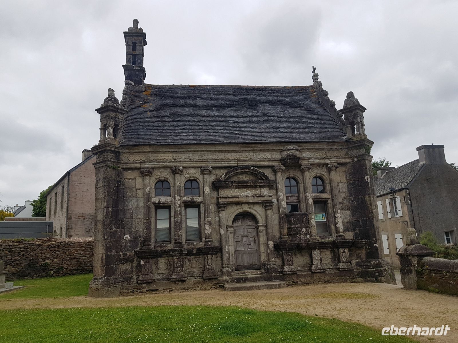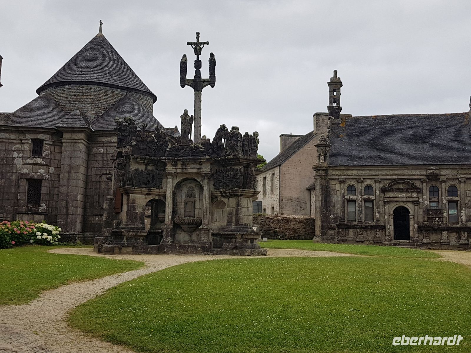Dann kehrten wir dieser spektakuläre Felslandschaft den Rücken und fuhren ins Hinterland der Bretagne. Hier war der Kalvarienberg in Guimiliau im Departement Finistère, einer der berühmtesten Kalvarienberge dieser Region, unser Ziel. Ein breites Triumphtor führt zum Kirchhof, der durch die Kirche und das Beinhaus, beides Bauten aus dem 16. Jahrhundert, und eine gemauerte Einfriedung gerahmt wird. In der Mitte dieses Kirchhofs befindet sich der zwischen 1581 und 1588 geschaffene Kalvarienberg. Bis zu 200 Figuren versammeln sich in eindrucksvollen Passionszenen unter einem hoch aufragenden Kreuz. Es ist kaum vorstellbar, wie es dem Meister dieses Kalvarienberges möglich war, diese vielen Figuren aus dem harten Granitstein zu meißeln. Auch die Kirche beeindruckte uns aufgrund ihrer prachtvollen Ausstattung, wie z.B. eines wunderschönen Taufpavillons.