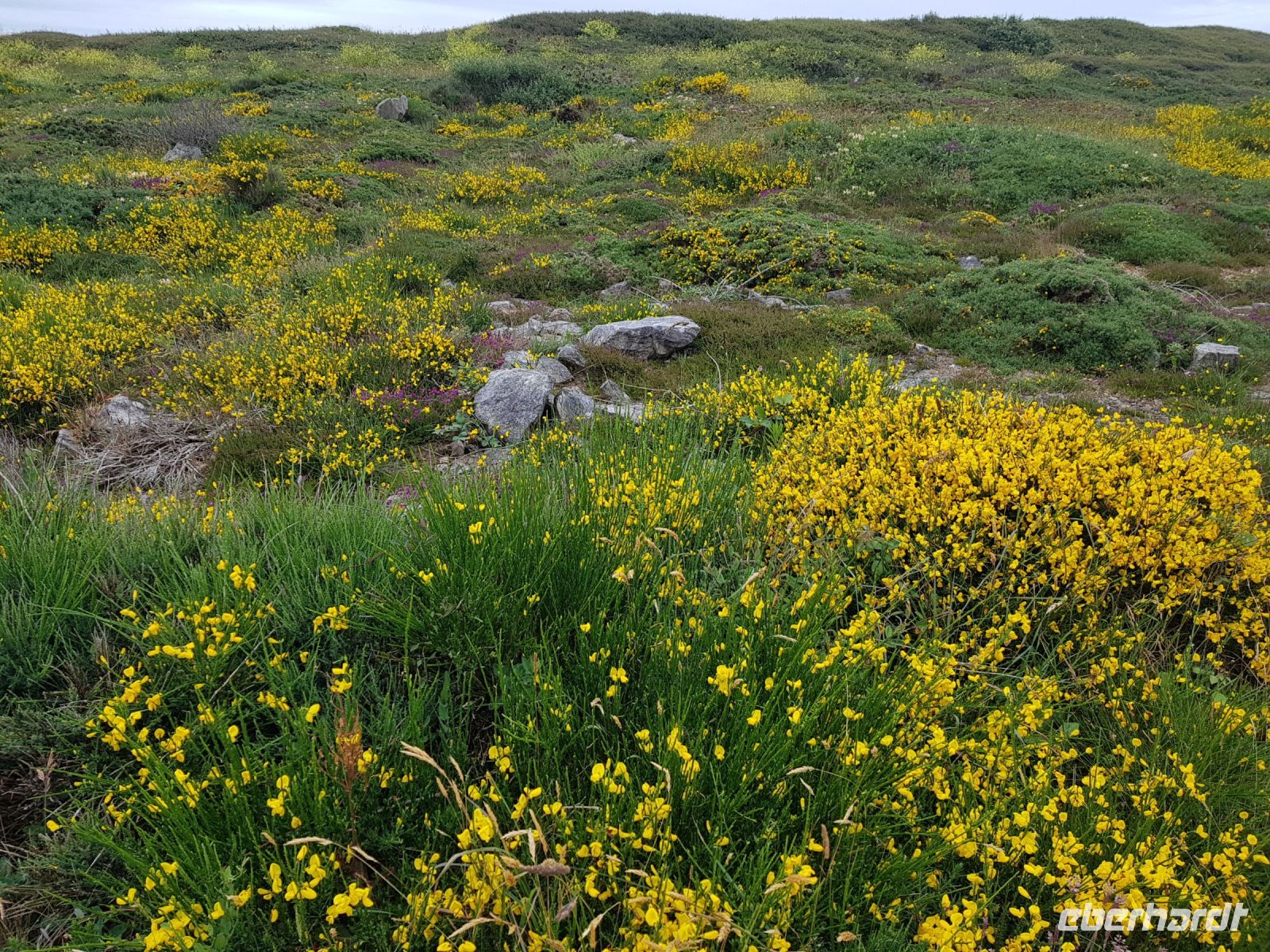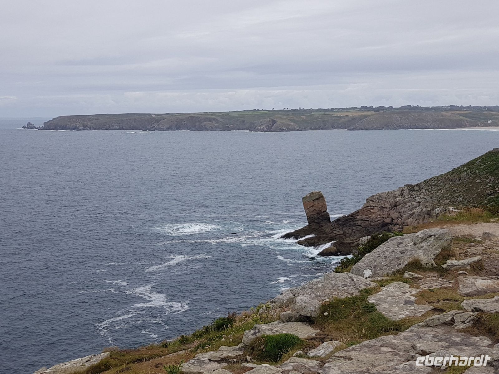 Anschließend begannen wir unsere Rundfahrt auf dem Cap Sizun, einer Landzunge, die 30 km in den Atlantischen Ozean hineinreicht. Sie teilt die im Norden befindliche Irois See von dem Golf von Biskaya im Süden. Wir legten einen Fotostopp am Cap du Van ein, wo man eine sehr gute Sicht hat auf die Pointe du Raz, die Spitze des Cap Sizun, hat.