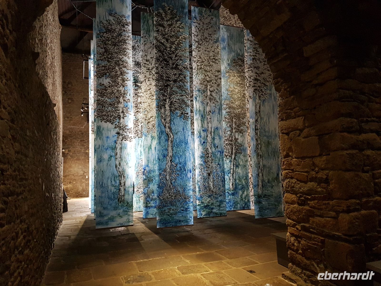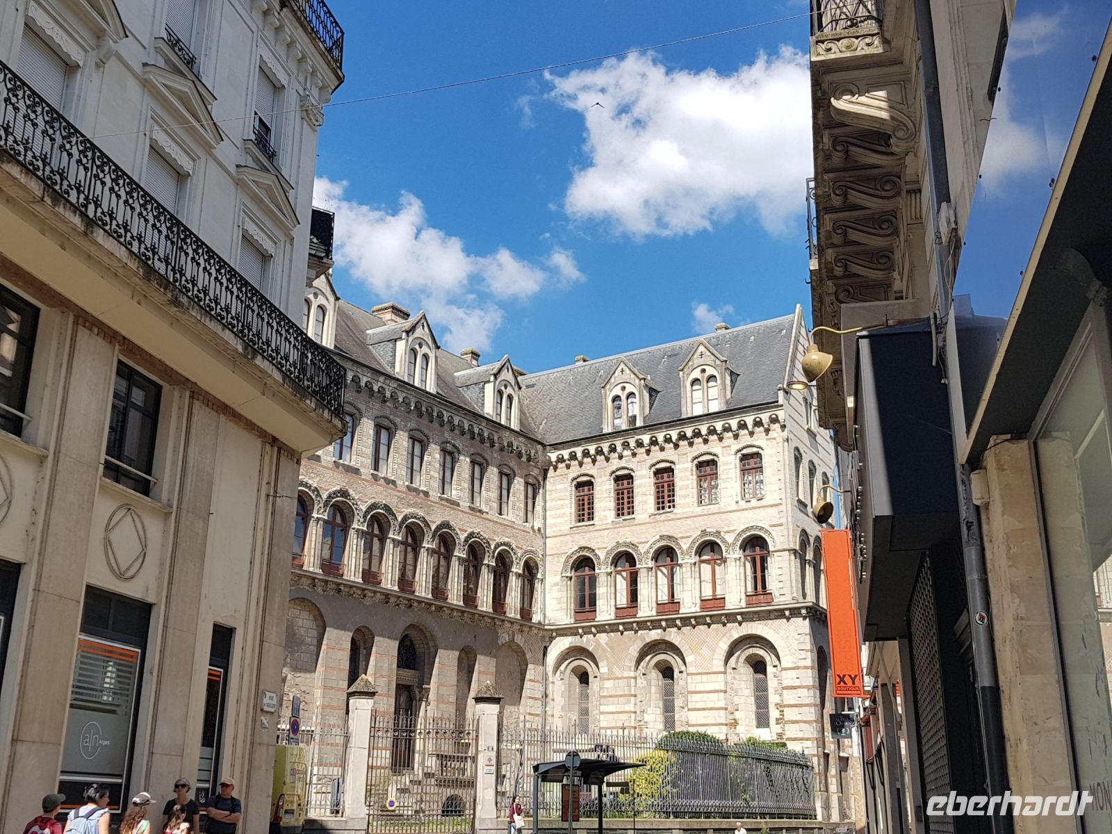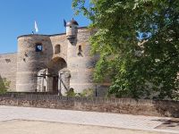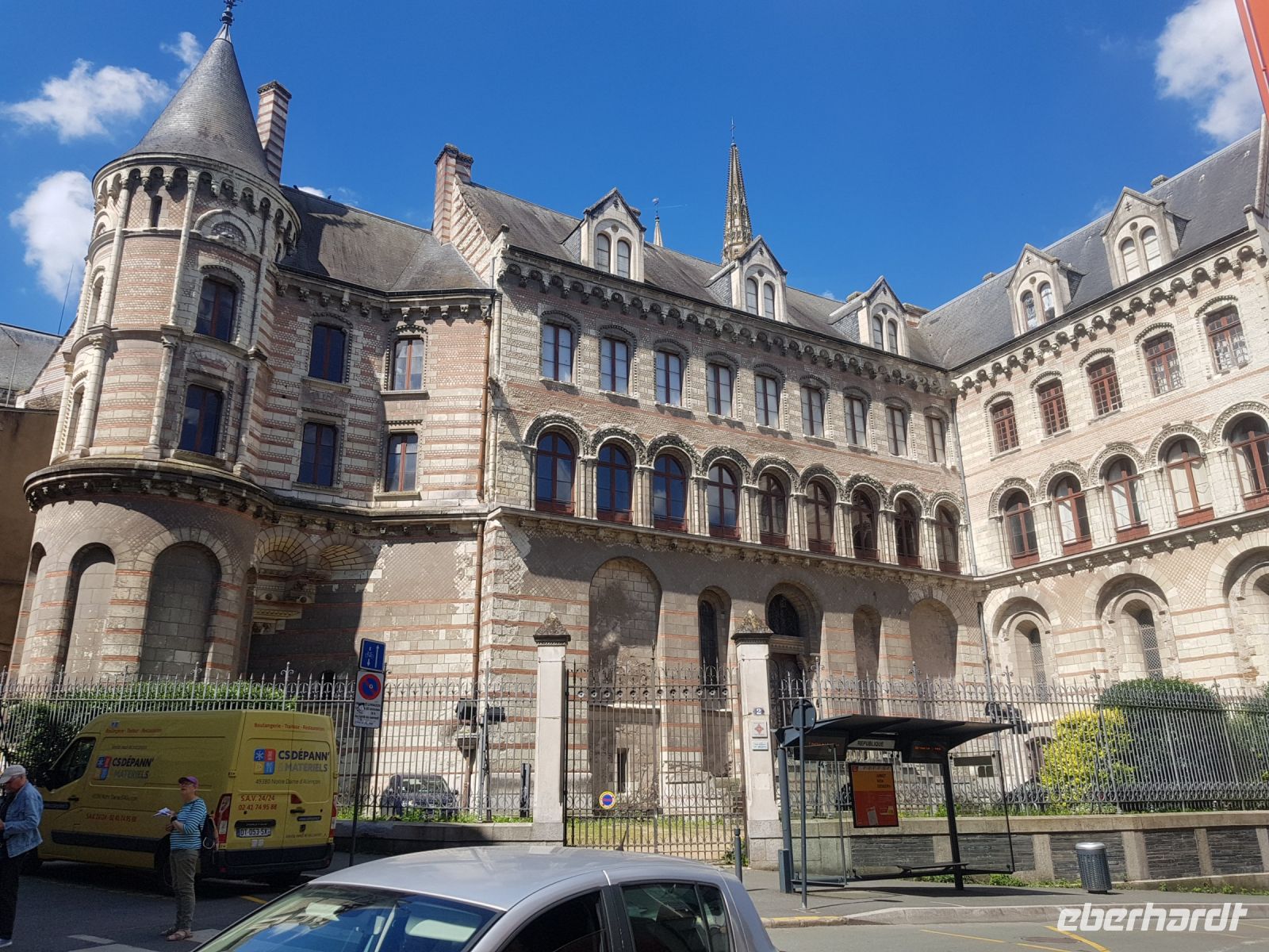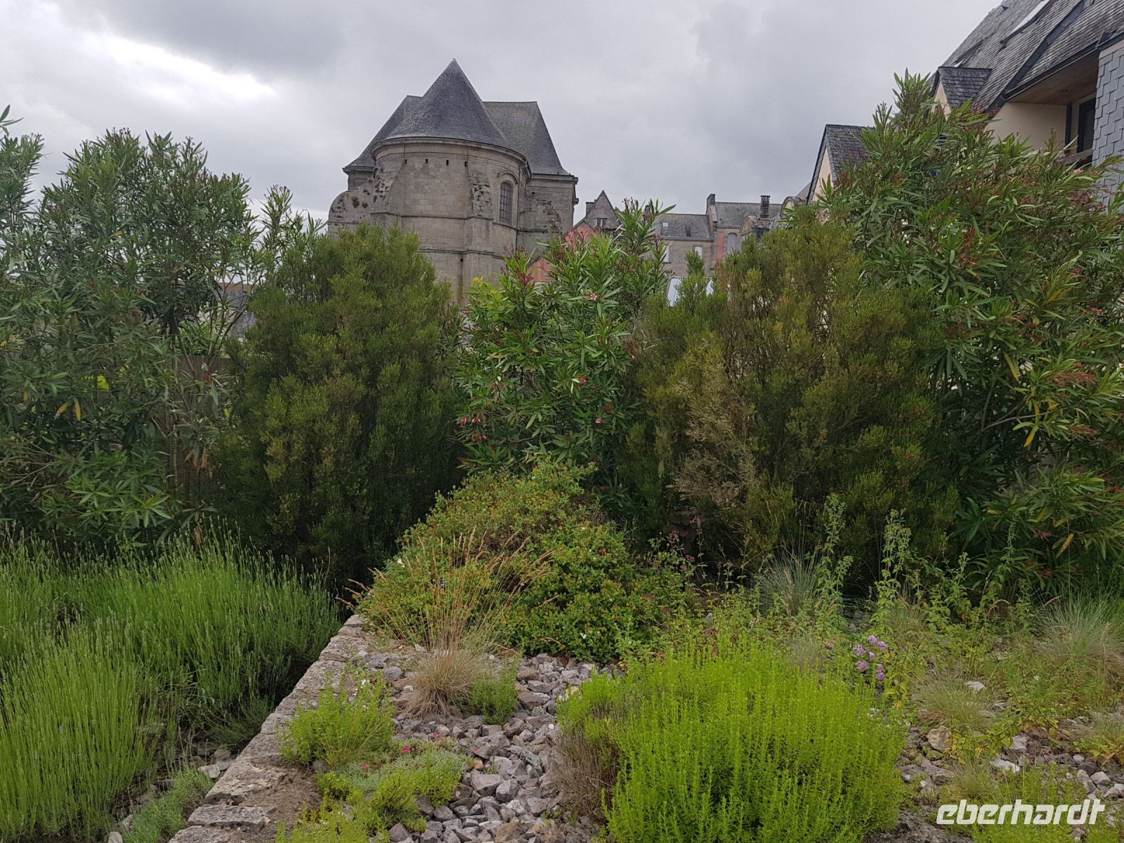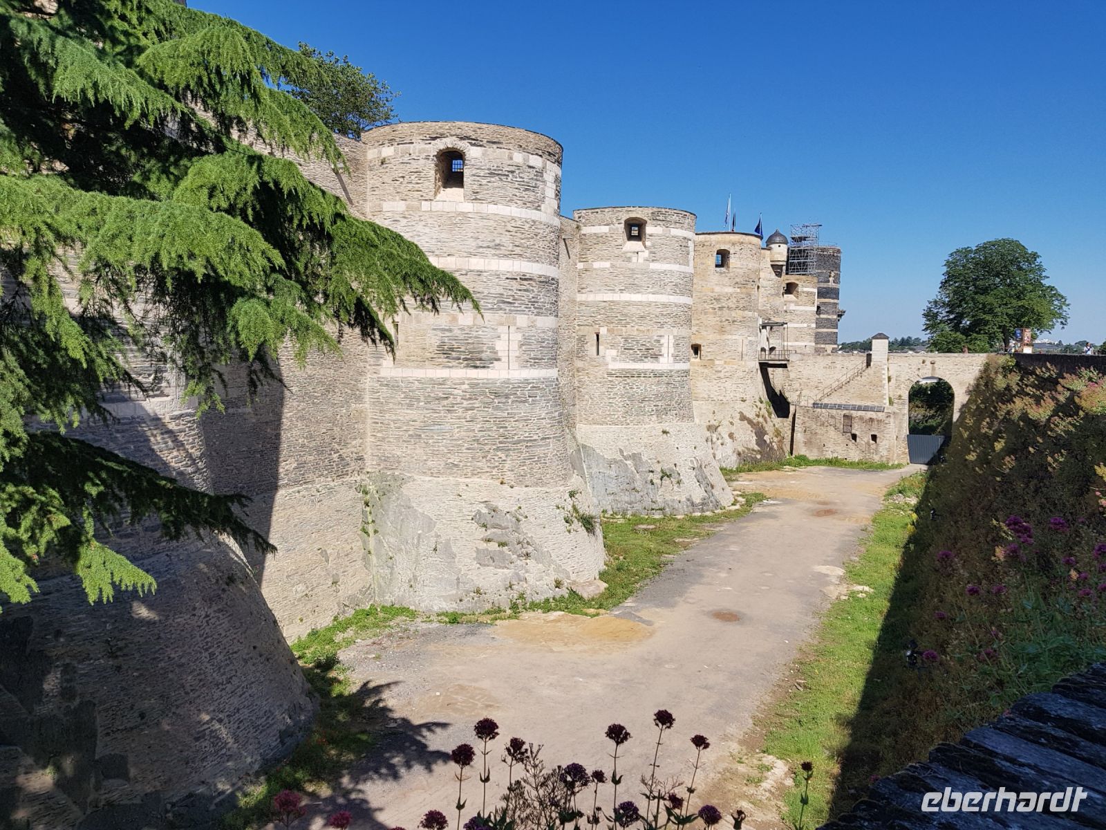 Gegen Mittag erreichten wir das an dem Fluss Maine gelegene Angers. Die Stadt war viele Jahrhunderte Hauptstadt des Anjou. Ihre Herzöge gründeten das Geschlecht der Plantagenet, die als Könige von England ein Territorium regierten, das von Schottland bis zu den Pyrenäen reichte. Mit der Entmachtung der Plantagenet in Frankreich durch König Philippe Auguste gelangte das Herzogtum Anjou an die französische Krone. Die französische Regentin Blanka von Kastilien ließ Anfang des 13. Jahrhunderts eine mächtige Burg als Bollwerk gegen die Bretonen errichten, die später durch ihren Sohn Karl von Anjou ausgebaut wurde und heute noch erhalten ist. Im Innenhof der Burg steht heute ein vor wenigen Jahrzehnten errichtetes Museum, in dem der 1373-1380 in dem Pariser Atelier von Nicola Bataille gewebter Teppichzyklus zur Apokalypse des Johannes ausgestellt ist. Der Auftraggeber dieses Teppichs war der Herzog Ludwig I. von Anjou, Bruder des französischen Königs Karl V., der den königlichen Hofmaler Jean de Bruges mit dem Entwurf dieses Teppichzyklus beauftragt hatte. Während einige von uns diesen bedeutenden Teppichzyklus besichtigen, erkunden andere die Altstadt von Angers mit ihrer Kathedrale vor der gerade äußerst spannende archäologische Ausgrabungen stattfinden, oder kehrten ein.