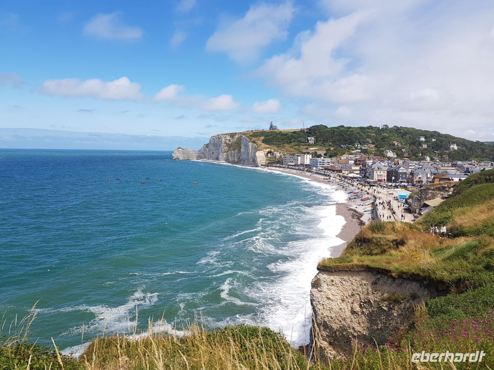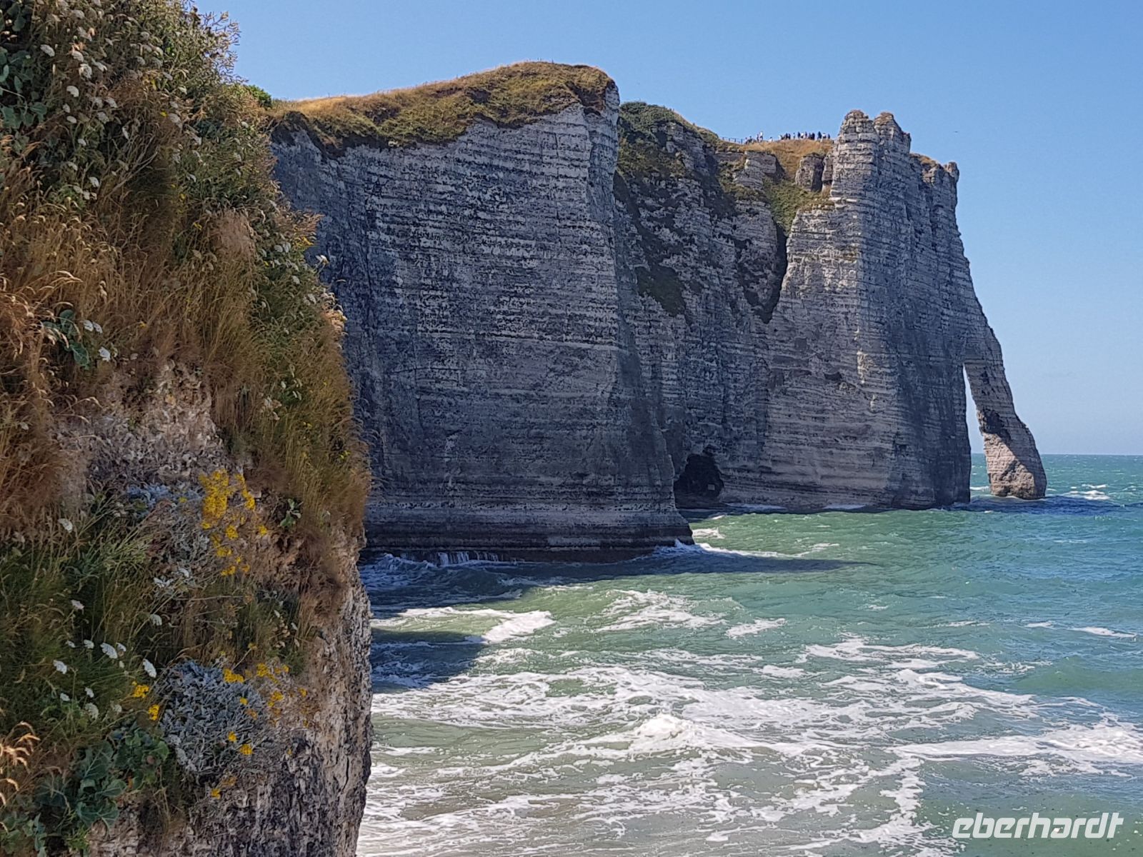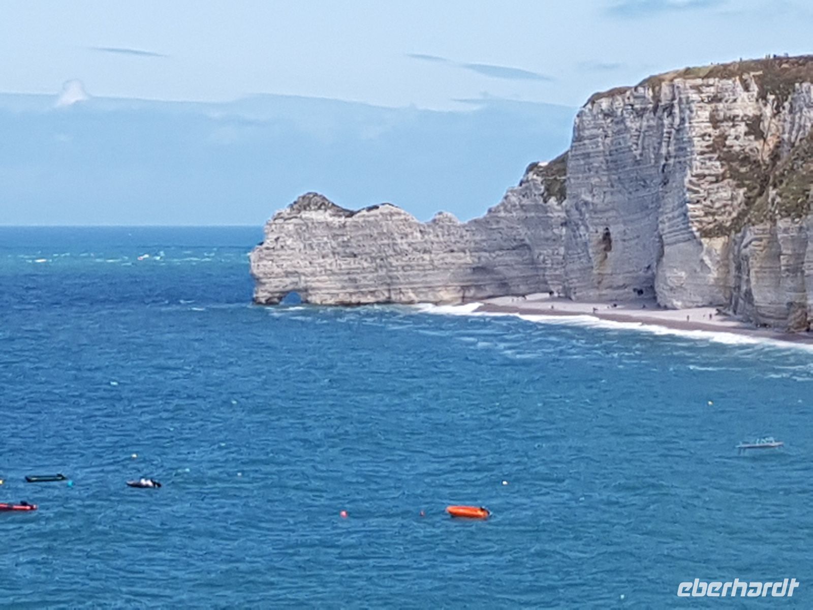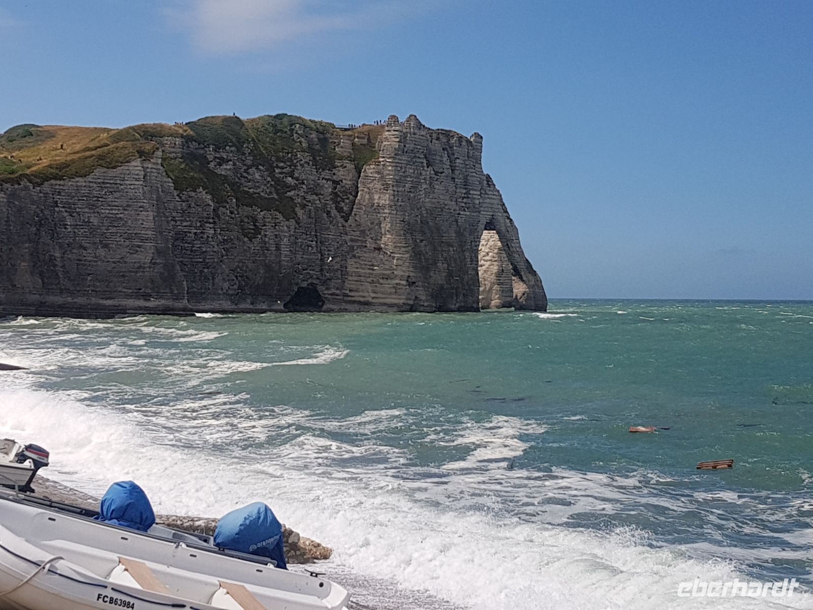 Das Meer erwartete uns unter blauem Himmel mit starkem Wind und bewegter See. Ein wunderbares Wetter um Fotos zu machen ! Während einige von uns diese fantastische Küste erwanderten, in dem sie die „Falais d'Aval“ links oder die Falais d'Amont“ rechts hinauf stiegen, genossen andere das Meer von der Strandpromenade aus oder kehrten in einem der vielen Restaurants oder Bars ein.