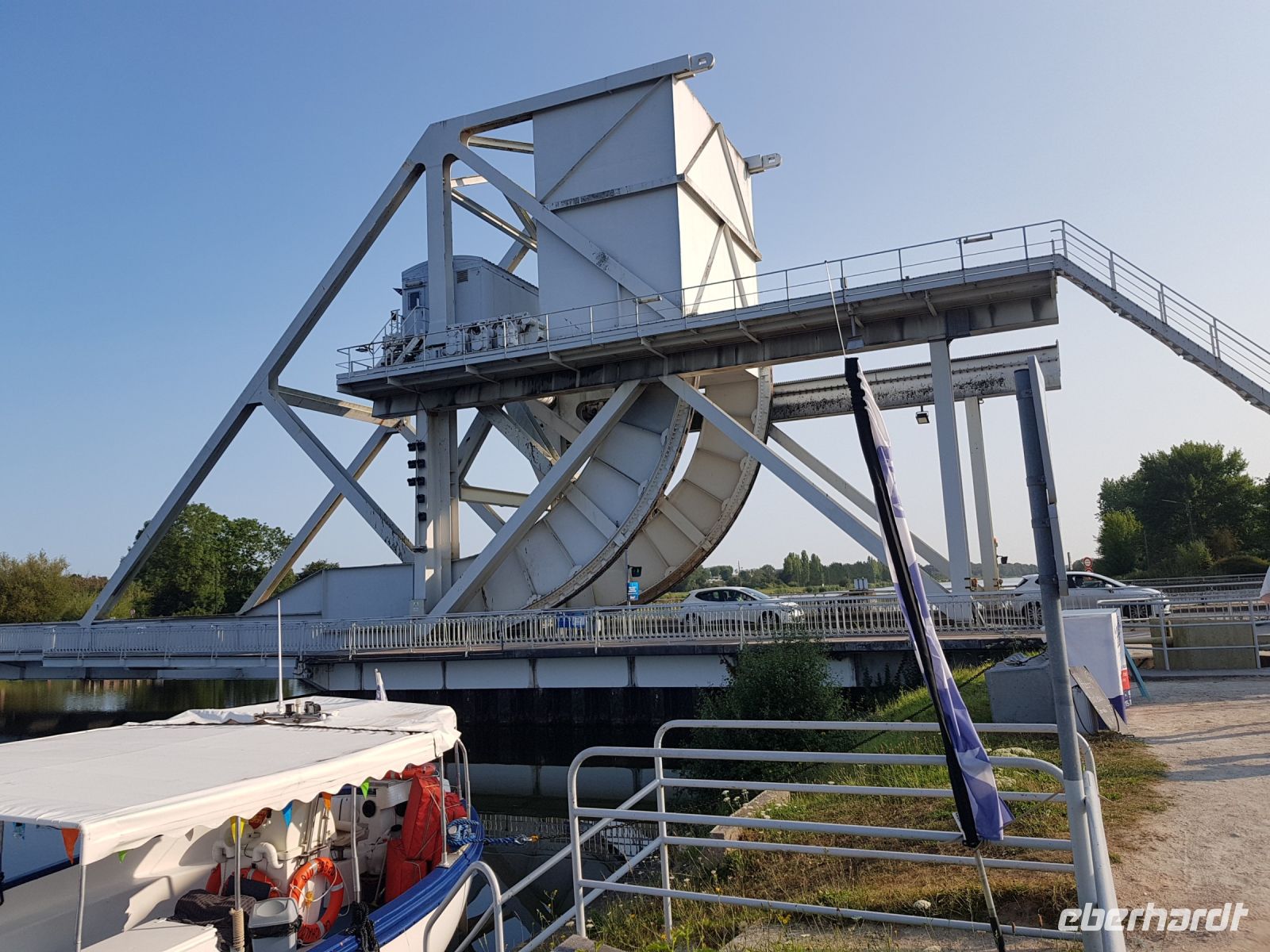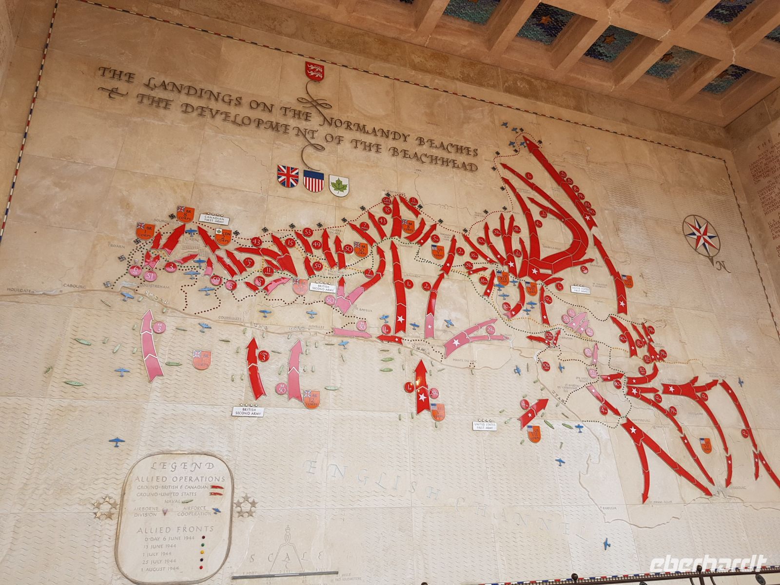 Zuerst fuhren wir am Morgen zur Pegasus-Brücke bei Bénouville am Beginn der SWORD BEACH. Sie erhielt ihren Namen von dem Flügelross Pegasus, das die 5. britische Fallschirmjägerbrigade zu ihrem Wappen wählte. Diese Brigade landete hier in der Nacht vom 5. zum 6. Juni 1944 um einen Brückenkopf aufzubauen. Nach dem Vorbild dieser Brücke wurde 1994 hier eine neue Kanalbrücke erbaut, die den Nahmen ihrer Vorgängerin übernahm.