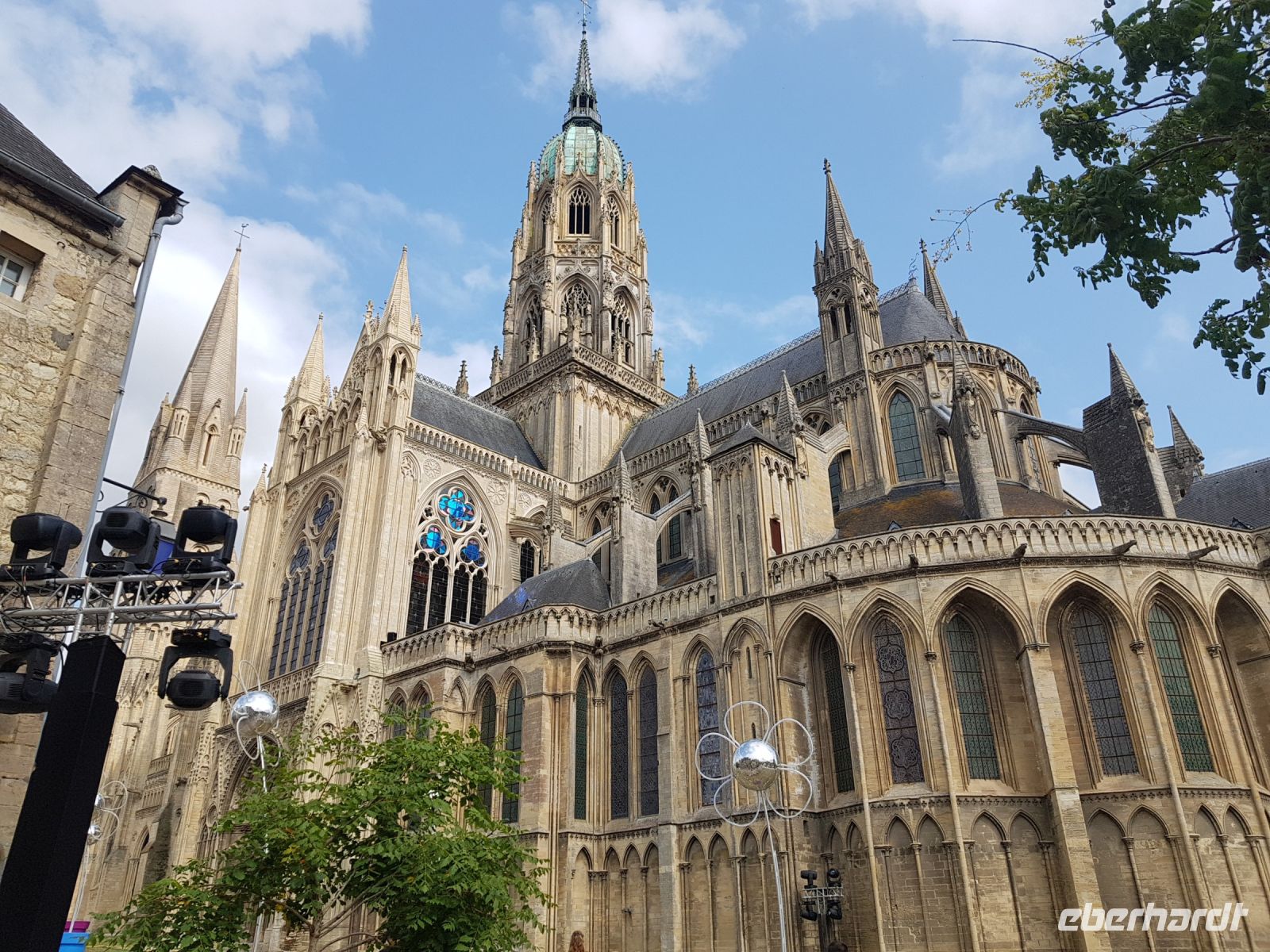 Dann brauchten wir eine Pause. Wir fuhren in das nahe gelegene Städtchen Bayeux um dort unsere Mittagspause zu verbringen. Einige von uns sahen sich den berühmten „Teppich von Bayeux“ an, das älteste großformatige Textilkunstwerk Frankreichs, das in farbig gestickten Einzelszenen die Eroberung Englands durch Wilhelm den Eroberer darstellt. Andere besuchten die imposante, reich verzierte Kathedrale oder kehrten zu einem Mittagessen ein.