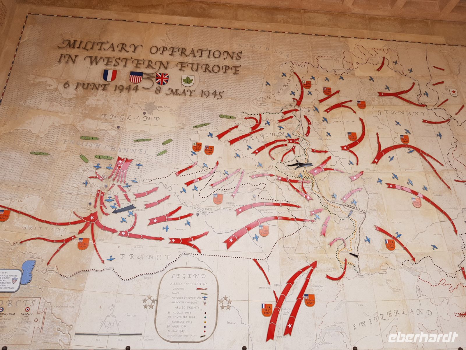 Heute stand der Besuch der Landungsstrände auf dem Programm unserer Reise. Hier an der normannischen Côte de Nacre landeten am 6.6.1944 die Alliierten um unter unzähligen Opfern Frankreich und Westeuropa vom deutschen Faschismus zu befreien. Sie landeten an einem 98 km langen Abschnitt dieser Küste, der sich von Ouistreham an der Mündung der Orne im Osten bis nach Sainte-Mére-Eglise auf der Halbinsel Cotentin im Westen erstreckte. Dieser Abschnitt wurde in die Teilabschnitte SWORD BEACH, JUNO BEACH, GOLD BEACH, OMAHA BEACH und UTAH BEACH eingeteilt und den einzelnen alliierten Armeen zugeordnet.