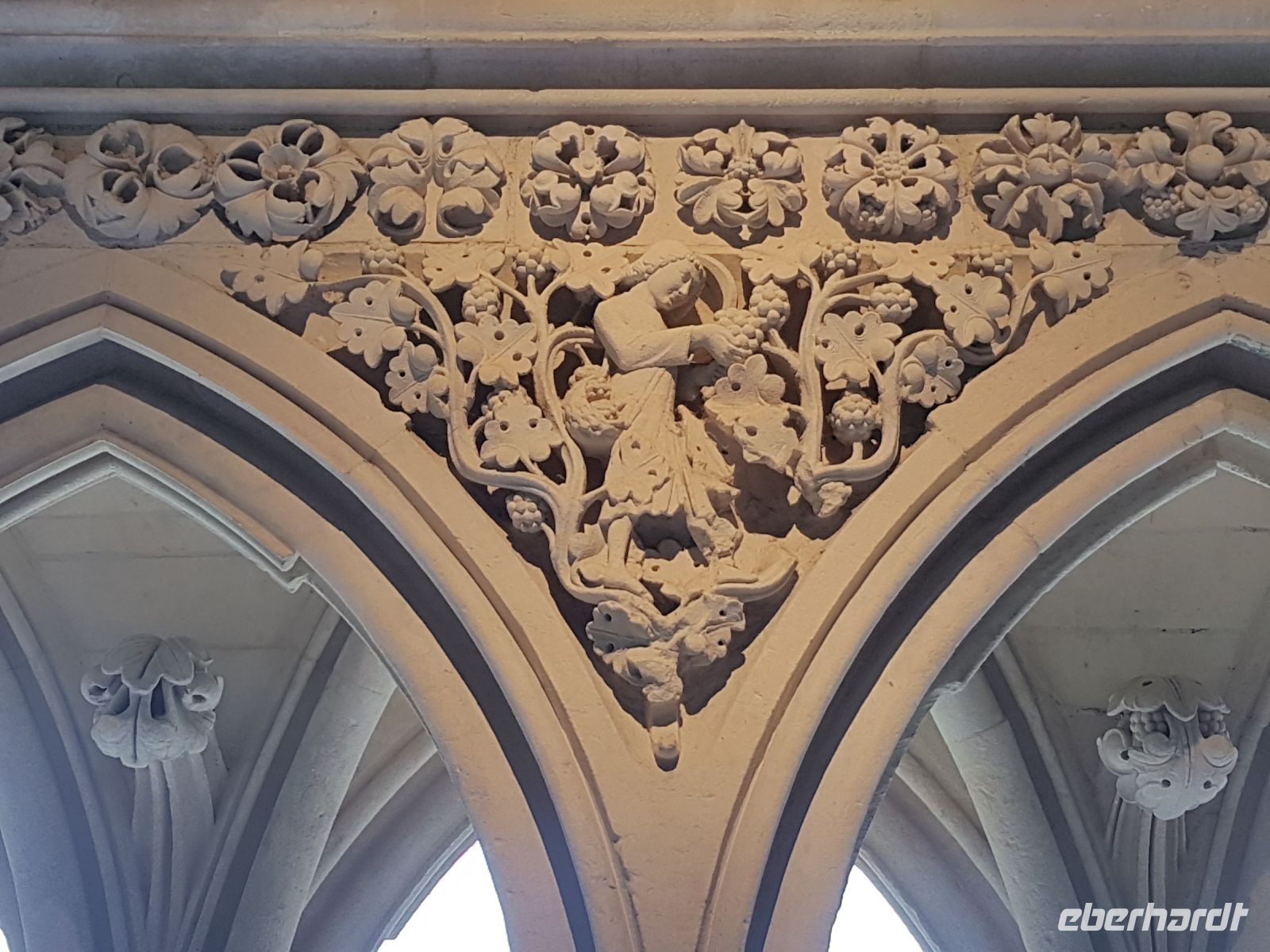 Hier, im Inneren der Burg wurde zwischen 1952 und 1954 von Bernard Vitry ein Museumsgebäude errichtet, in dem der berühmte Wandteppich der Apokalypse ausgestellte ist. Dieser Wandteppich wurde im Auftrag von Herzog Ludwig I. von Anjou nach Entwürfen des königlichen Hofmalers Hennequin de Brügge von dem berühmtesten Weber von Paris Nicolas Bataille in sieben Jahren von 1373 bis 1380 geschaffen. Er gliedert sich in sieben Teppiche. Sie ergeben heute noch eine Länge von 103 Metern. Einige aus unserer Reisegruppe besichtigten diese einzigartige Werk der Webkunst und mit ihm die Burg der Herzöge von Anjou. Andere sahen sich in der Altstadt um, besuchten die Kathedrale oder kehrten zum Mittagessen ein.