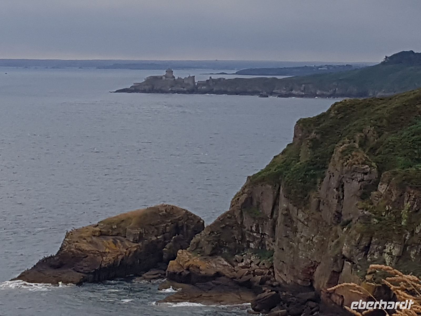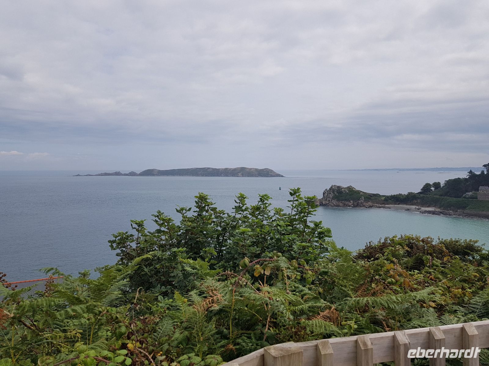 Anschließend warteten zwei spektakuläre Küstenlandschaften der Bretagne auf uns. So ließen wir das alte Seebad Dinard links liegen und steuerten die Côte d'Emmeraude, die Smaragdküste an. Sie zeichnet sich durch hohe steil Felsklippen unterbrochen durch weite, flache Buchten aus.