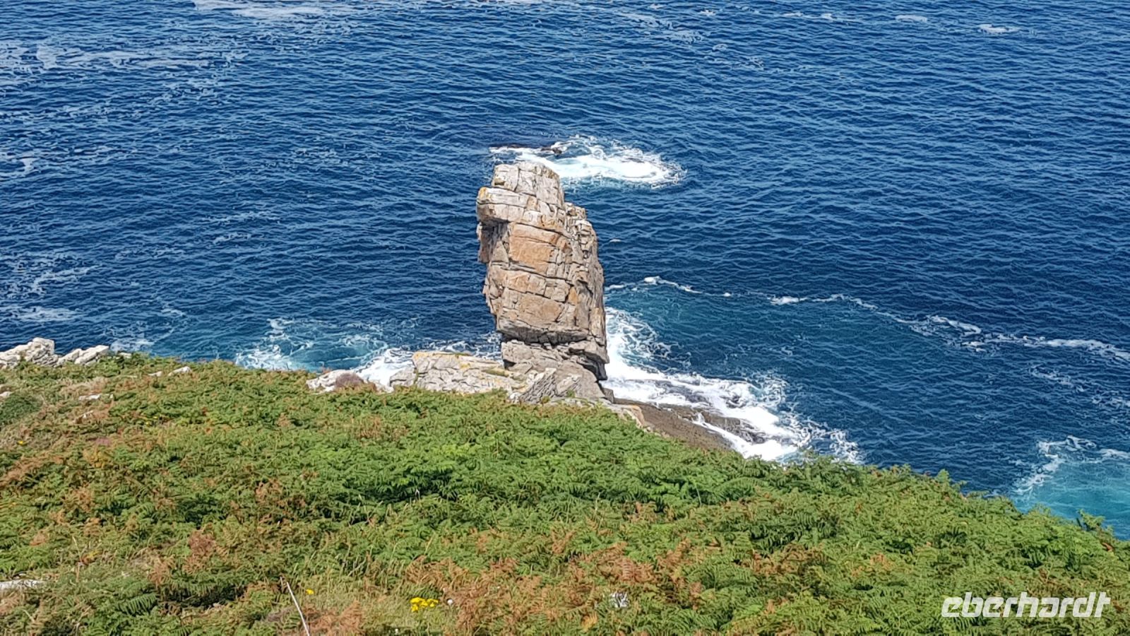 Dann ging es auf das Cap Sizun, einer spitzen 30km langen Landzunge, die wir im Rahmen einer Rundfahrt erkundeten. Im Norden des Caps liegt das Mer Iroise (die irische See) im Süden reicht der Golf von Biskaya an das Cap heran. Diese beiden Meere haben unterschiedliche Gezeitenströme, die an der Pointe du Raz mit voller Wucht aufeinander treffen und die, neben den vielen Riffen und Klippen, für die Seefahrt sehr gefährlich sind. Die Pointe de Raz war in der Vergangenheit berüchtigt für unzählige Schiffsbrüche und ist heute für den Schiffsverkehr gesperrt.