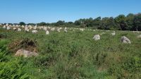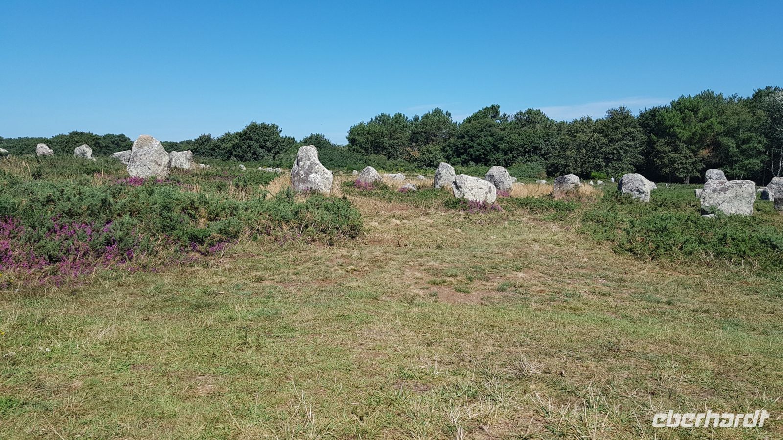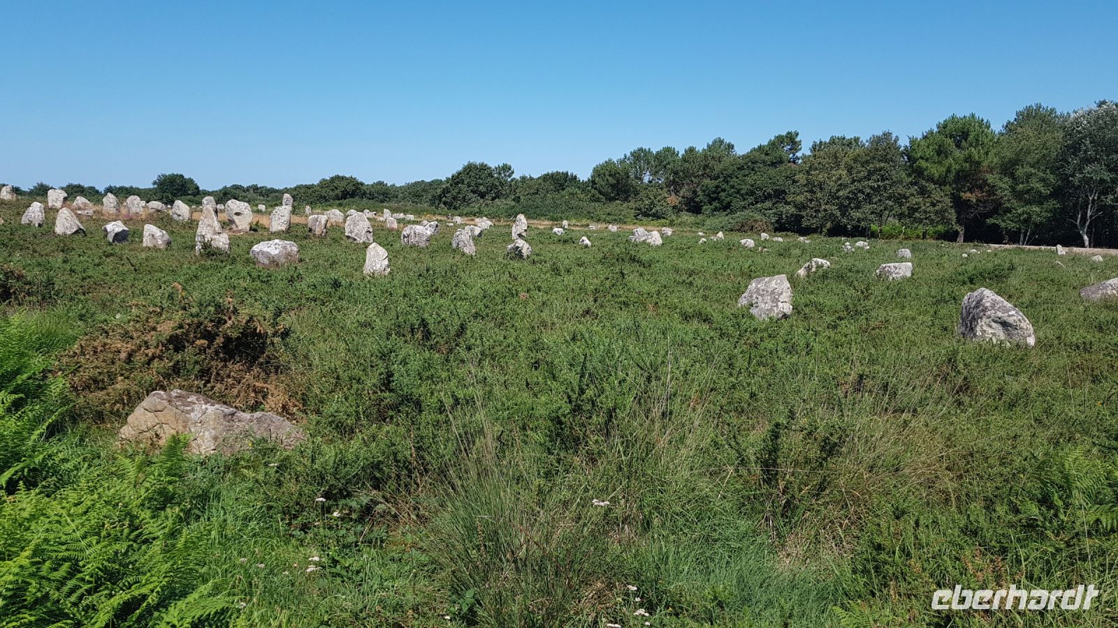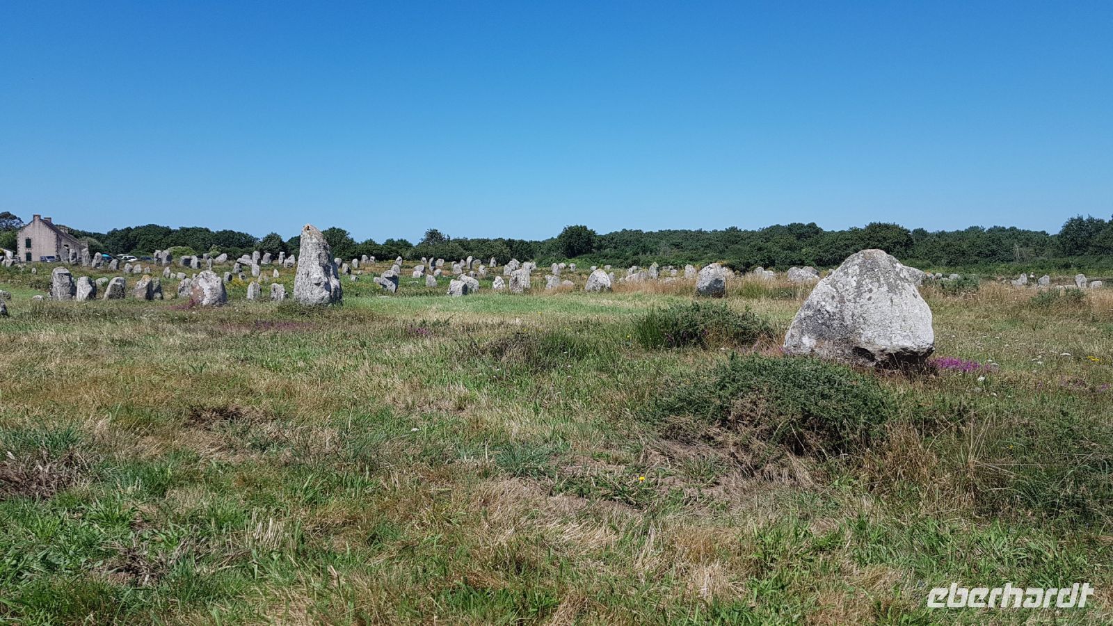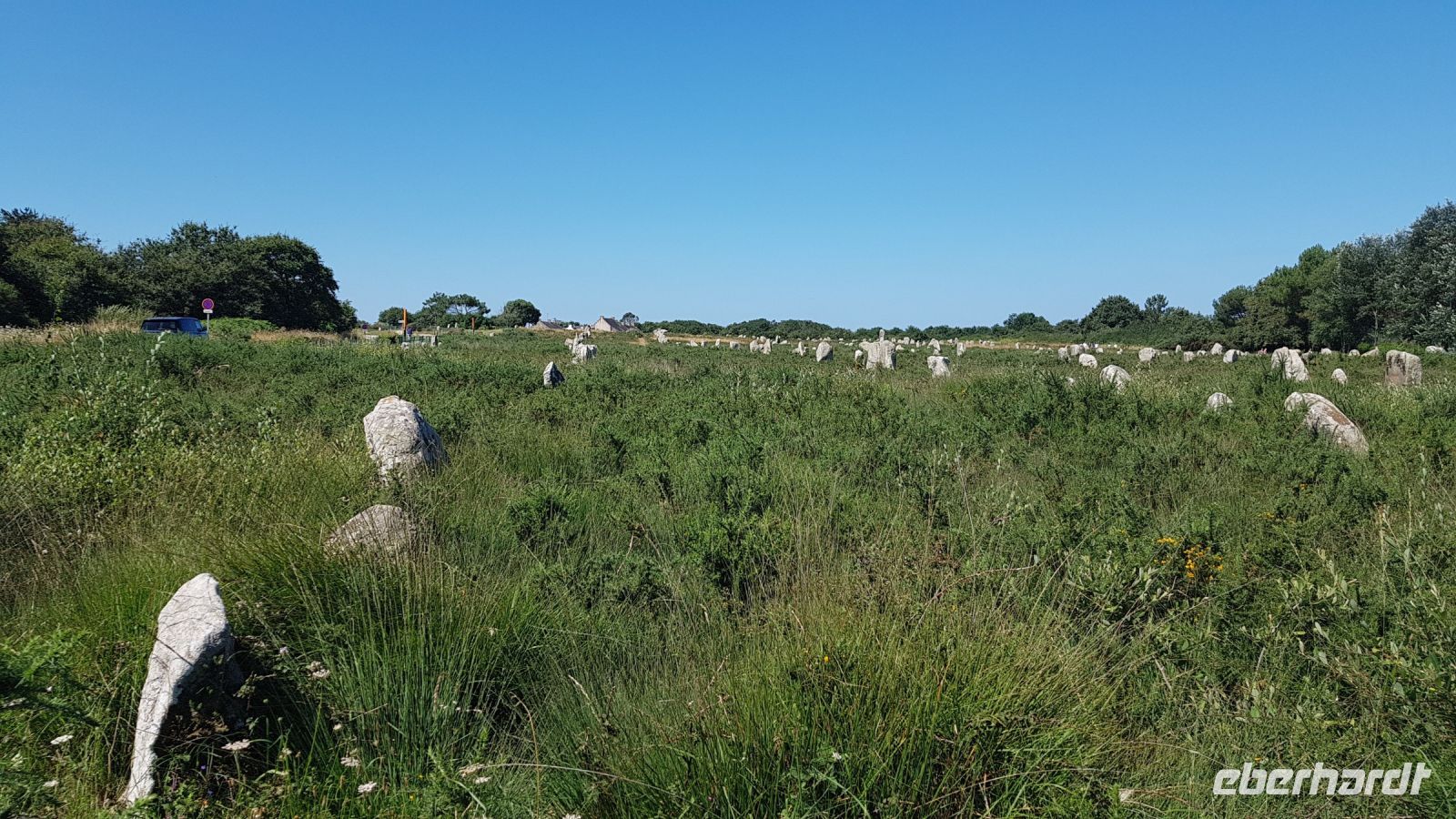 Später erreichten wir die weltberühmten Megalithanlagen von Carnac im Departement Morbihan. Wir stiegen bei den Steinreihen von Le Menec aus, nahmen den gerade bereit stehenden Sightseeing-Bus oder erkundeten zu Fuß die Anlage. Sie besteht aus bis zu 12 Steinreihen, die sich über eine Fläche von gut einem Kilometer erstreckt. Insgesamt umfasst die in der Jungsteinzeit geschaffene Anlage ca. 4 Kilometer. Im Besucherzentrum der von Le Menec informiert ein Film, den man auch in deutscher Sprache sehen kann, über die wissenschaftliche Einordnung und die derzeitigen Interpretationen der Megalithanlagen. Einig ist man sich vor allem darin, dass es sich hier um die älteste bisher bekannte Kultstätte der Menschheit handelt.
