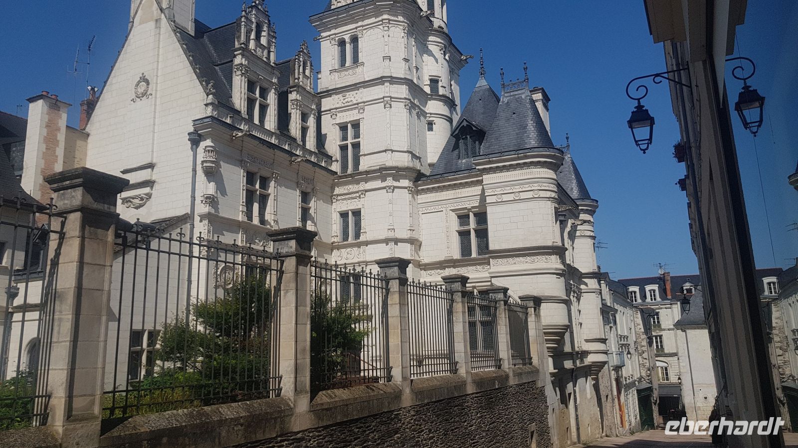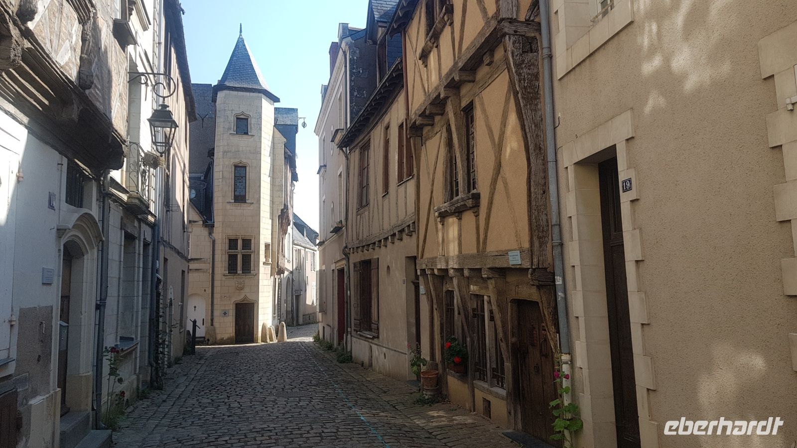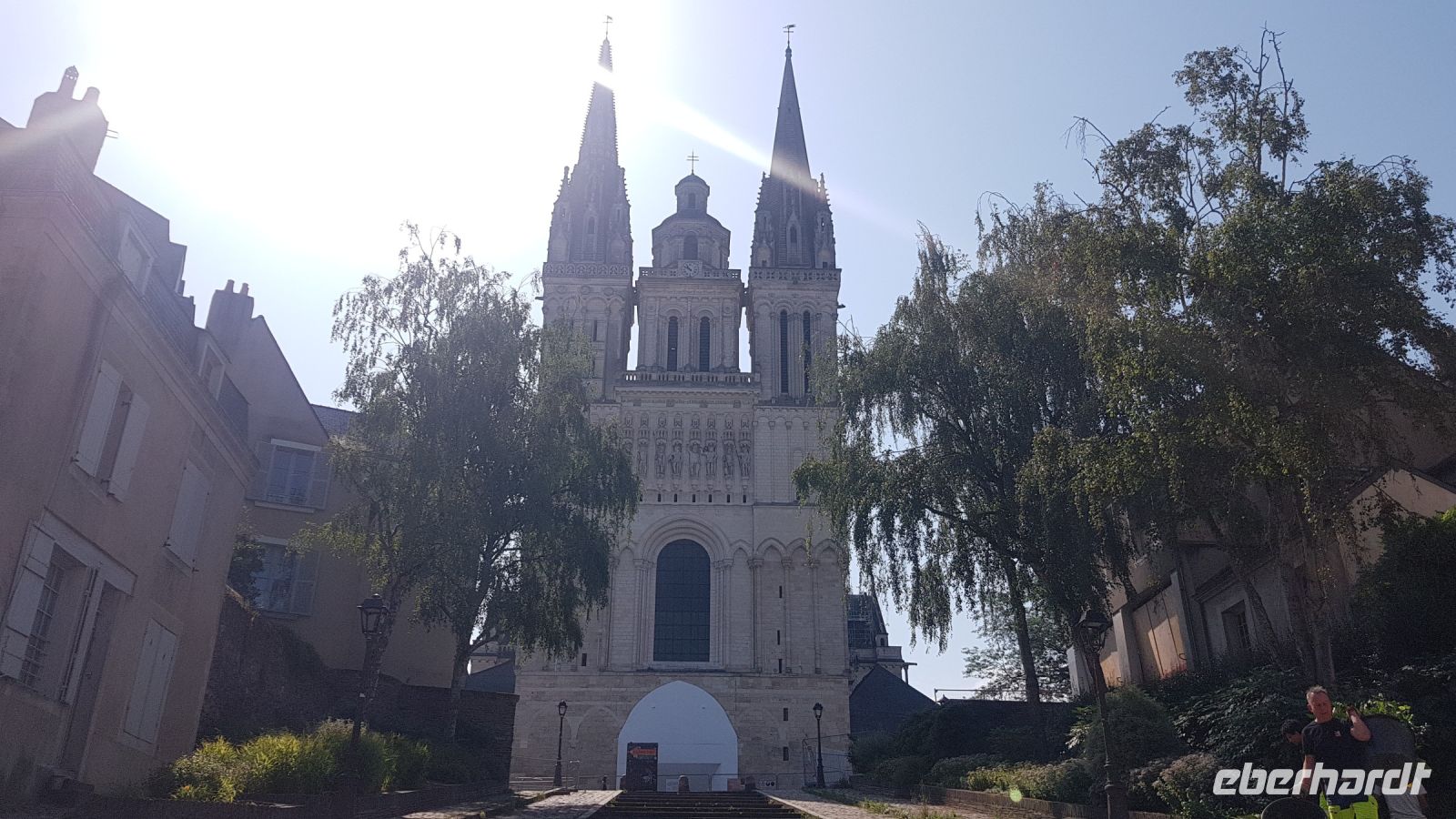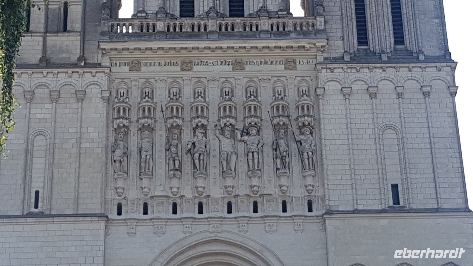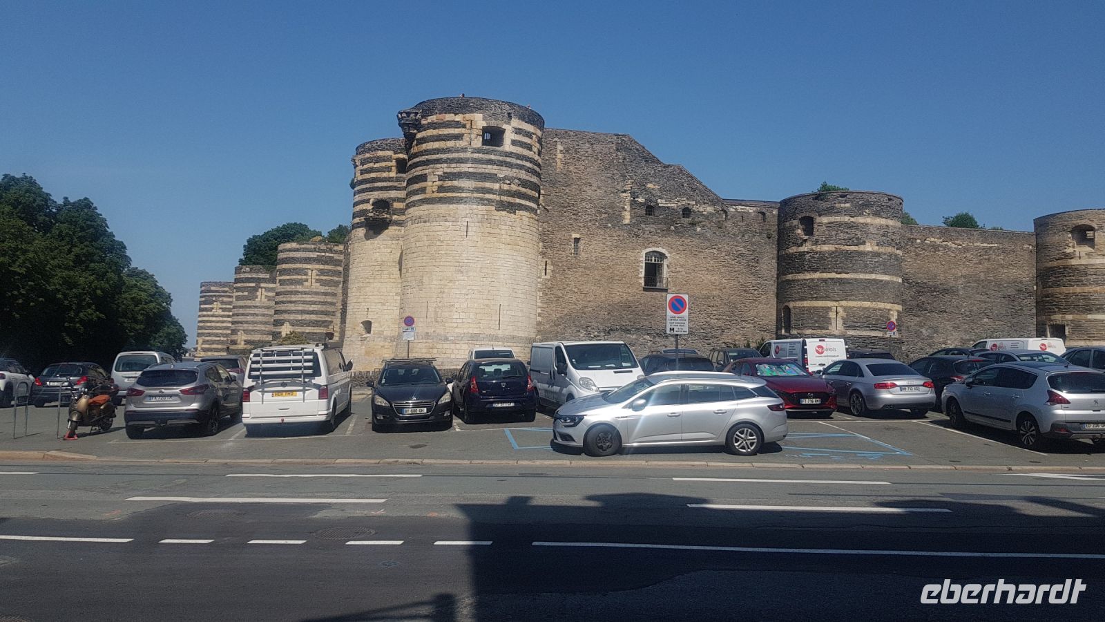 Dann kamen wir nach Angers, der alten Hauptstadt des Anjou. Sie liegt am Fluss Maine und war um 1200 eine Residenz der Plantagenet. Ihnen gehörte nicht nur fast das gesamte westliche Frankreich. Sie waren darüber hinaus auch Könige von England. Nach dem Sieg über die Plantagenet durch den König Philipp Auguste wurde das Anjou dem französischen Königreich angegliedert. Um es von künftigen Expansionsbestrebungen der Bretonen zu schützen, ließ die französische Regentin Blanka von Kastilien Anfang des 13. Jahrhunderts eine imposante Burg errichten, die später von ihrem Sohn Karl von Anjou vervollständigt wurde und heute ohne Turmspitzen erhalten geblieben ist.