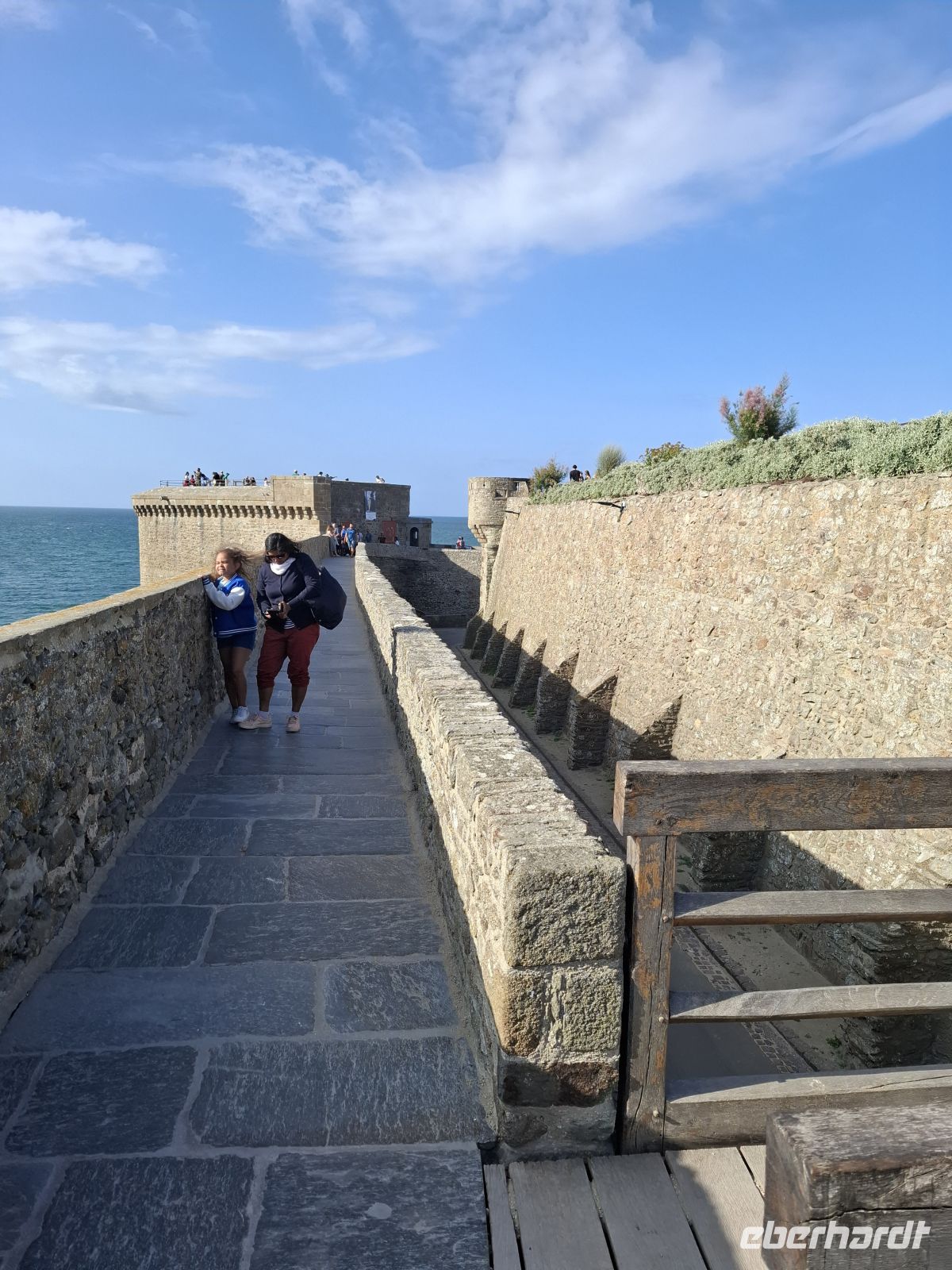 Nach diesem Genuss am Meer fuhren wir zurück nach St. Malo. Hier konnten wir vom Hotel, das direkt neben dem Eingang zur Altstadt lag, einen Spaziergang durch die Altstadt und auf der Stadtmauer machten. Die alte oft als „Korsarenhafen“ benannte Küstenstadt verfügte über gewaltige Wehranlagen. Ihre maritimen Traditionen leben bis heute in der bedeutendsten französischen Seefahrtschule und den Geschichten über die hiesigen wagemutigen Seehelden fort.