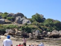 Nach ausgiebigem Spaziergang ging es schon weiter zum nächsten bekannten bretonischen Küstenabschnitt - der vor ungefähr 300 Millionen Jahren entstandenen „rosa Granitküste“ Ihren Namen „Cote de granit rosé“ erhielt die Felsenküste wegen der Farbgebung bestimmter Mineralien im Gestein. Innerhalb dieser langen Zeit entstand durch Erosion schließlich in der Umgebung des heutigen Ortes Ploumanach die verstreut wirkenden und mit phantasievollen Namen versehenen Felsenformationen. Der „alte Zöllnerpfad“ ist ein Wanderweg, der durch die schönsten hindurch um die Halbinsel von Ploumanach führt.