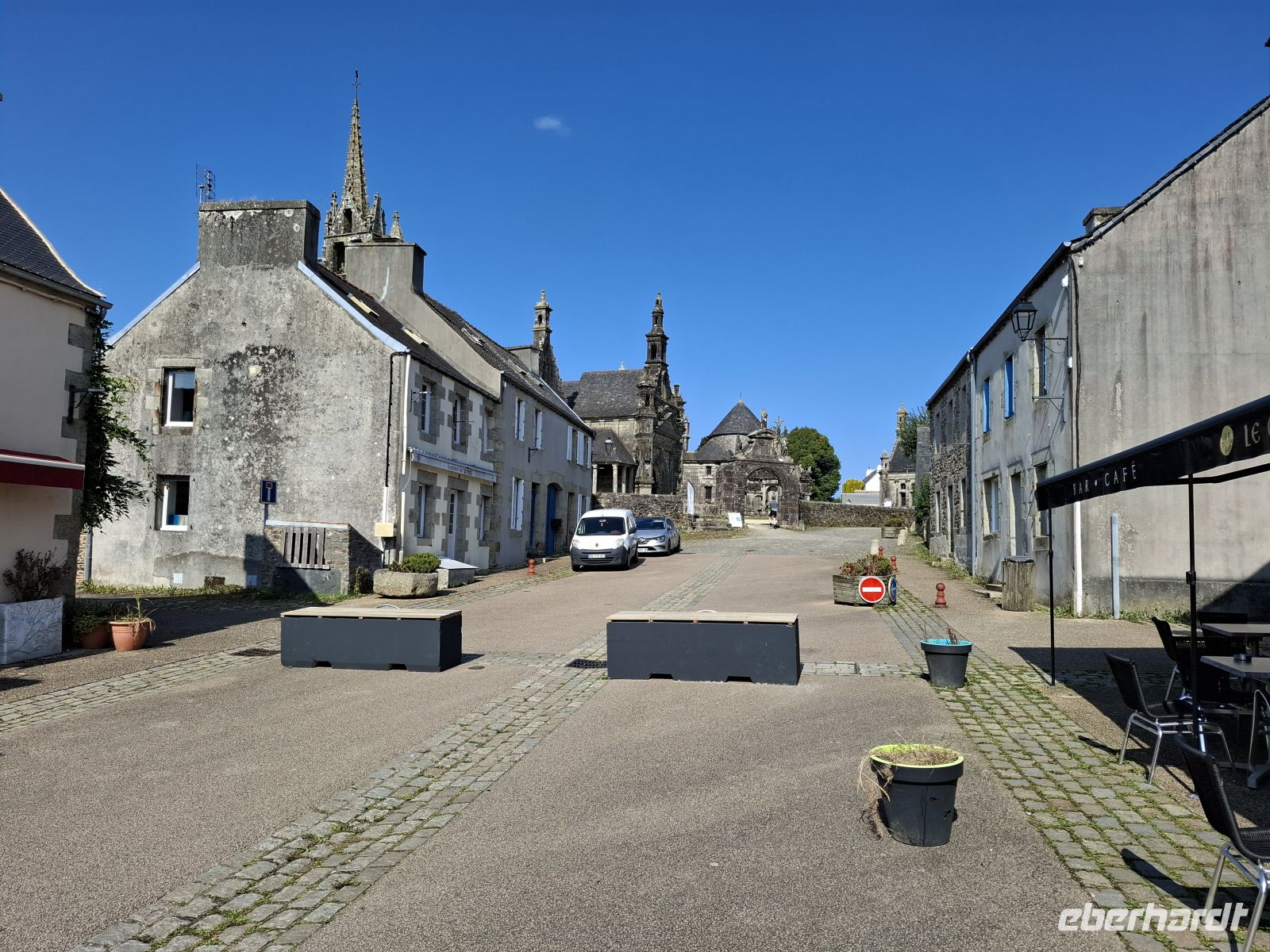 Weiter ging es dann aber zu einem weiteren interessanten Ziel – dem pittoresken Städtchen Locronan. Der Ort war schon oft wegen seines mittelalterlich erhaltenen Kerns und seiner alten Kirche Drehort und Kulisse für Historienfilme. Der einst für seine Segeltuchherstellung für die bretonische Flotte bekannte und wohlhabend gewordene Ort hat seit langem den Titel eines der „schönsten Dörfer Frankreichs“ und zieht stets zahlreiche Besucher an. Er steht komplett unter Denkmalschutz und wir hatten Muße, uns im alten Dorfkern umzusehen.