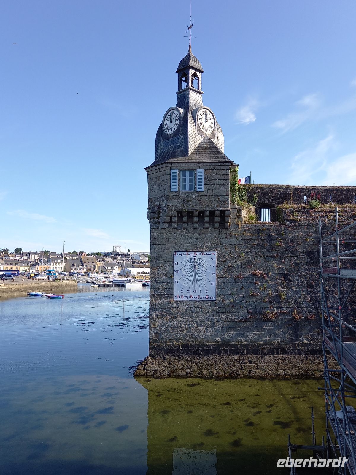 Auf unserem weiteren Weg nach hielten wir zunächst in der Fischereistadt Concarneau. In Film und Literatur ist der Ort auch durch den Einsatz des Kommissars Dupin nach den Bretagne-Krimis von Jean-Luc Bannalec bekannt. Vor allem aber besitzt der Fischereihafen sehenswerte Altstadt, die zum Weltkulturerbe der UNESCO gehört. Gelegen auf einer einstmals leicht zu verteidigenden Gezeiteninsel direkt im Hafen, ähnelt ihre Form einem gewaltigen steinernen Schiff. Sie hatte nur einen leicht zu verteidigenden Zugang, wird „La Ville close“ genannt, die „geschlossene Stadt“, und wurde in ihrer heutigen Erscheinung .entscheiden von Le Prestre de Vauban geprägt, dem Festungsbaumeister Ludwigs XIV. Unverändert umschließen seine ausgeklügelten Stadtbefestigungen die kleine, etwa 350 lange und 150 m breite Altstadt-Insel. Eine kleine Sperrfestung und einst zwei Zugbrücken sicherten ihren einzigen Zugang. Die „Ville Close“ hat ihr mittelalterliches Erscheinungsbild mit zwei Hauptstraßen, nur durch kurze Quergassen verbunden, bis heute trefflich bewahren können.