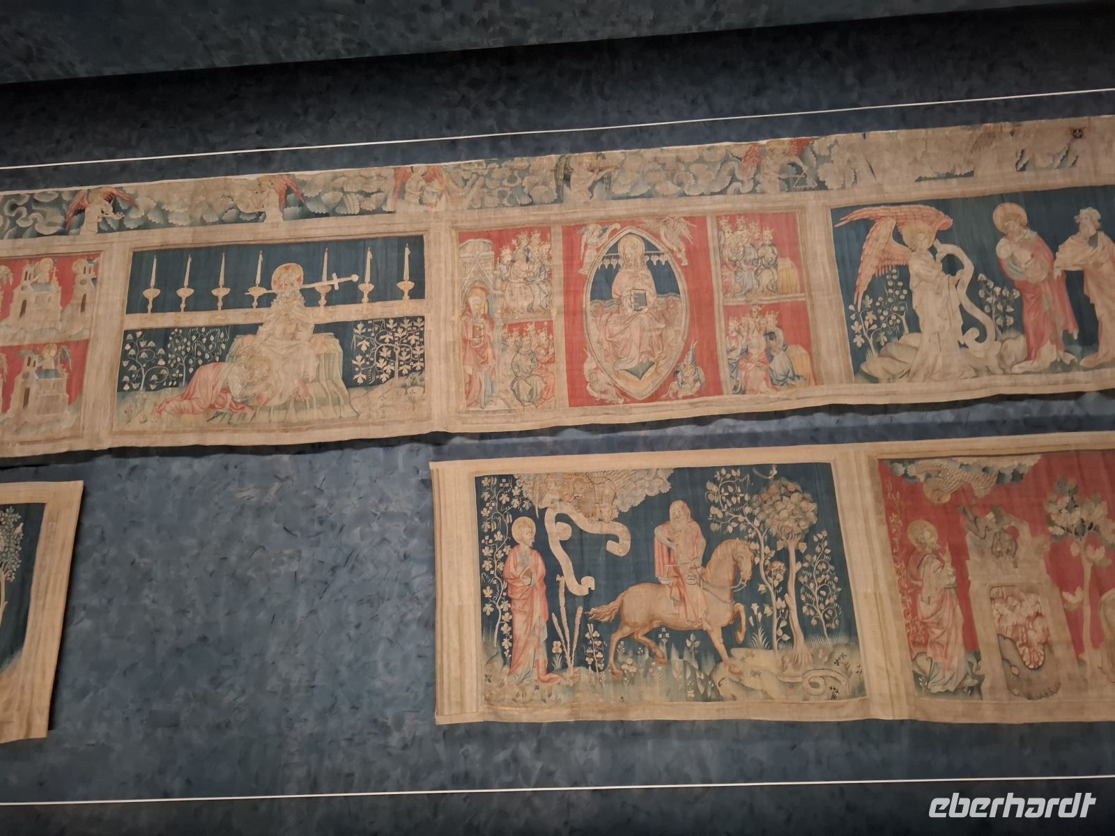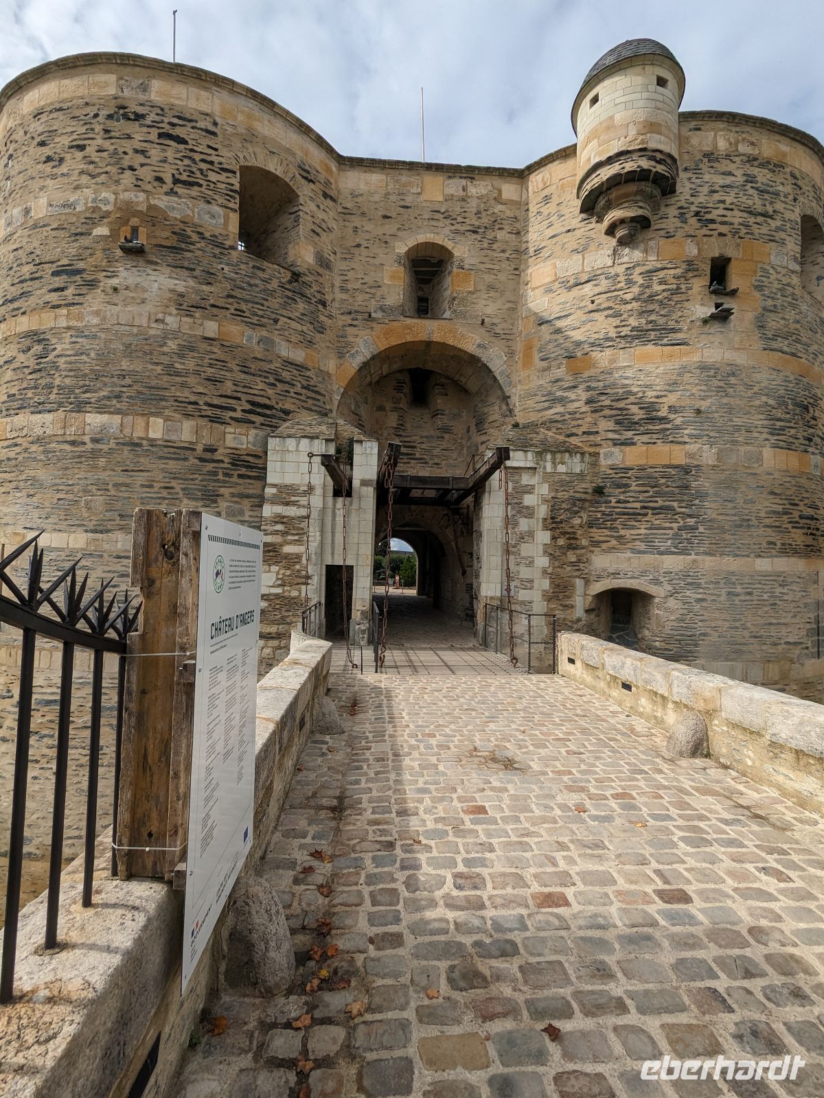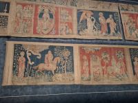 Heute verließen wir die Bretagne und starteten de facto schon zur Heimreise. Vorbei an der einstigen bretonischen Hauptstadt Nantes erreichten wir die historisch bedeutsame französische Landschaft des Anjou. Deren Hauptstadt Angers wird beherrscht von einem überaus düster und wehrhaft wirkenden Schloss. Trotz leichter Schwierigkeiten, da die Parkplätze durch Bauarbeiten versperrt waren, besuchten wir bei einem längeren Aufenthalt den Wehrbau, dessen 30 m hohe gewaltige Verteidigungstürme sich auf einer Anhöhe über dem Fluss erheben, der unweit von hier in die Loire fließt. Nach einem Brand vor zwanzig Jahren sind Teile des Schlosses nur noch als Ruine erhalten, aber die Spezialität liegt in einem unterhalb der Gärten eingerichteten Spezialbau: In einer hunderte Meter langen Galerie zeigt man eines der besterhaltenen mittelalterlichen Textilkunstwerke. Die „Teppiche der Apokalypse“ illustrieren als gewebte Bildwerke die Motive des letzten Teils des Neuen Testaments der Bibel, die „Offenbarung des Johannes“. Während des „hundertjährigen Krieges“ (1337 -1453) zwischen Frankreich und England gab der Herzog von Anjou die gewebten und gewirkten Gobelins über das Weltende in Auftrag. Vorlage war eine reich bebilderte Bibel-Abschrift. 103 m lang und etwa 4,30 m hoch stellen die 83 Einzelszenen selbst den berühmten, über 70 m langen Bildteppich aus Bayeux in den Schatten. Das einzigartige Bildwerk – übrigens der größte jemals in Europa gewebte Wandteppich - zeigt Ängste und den Aberglauben der mittelalterlichen Menschen über die Schrecken des bevorstehenden Weltunterganges – insbesondere als zur Zeit seiner Entstehung Ende des 14. Jh. England große Teile Frankreichs erobert hatte. Unsere Freizeit erlaubte es, die Kunstwerke ausgiebig zu betrachten und vielleicht noch einen kurzen Bummel durch die Altstadt von Angers zu machen