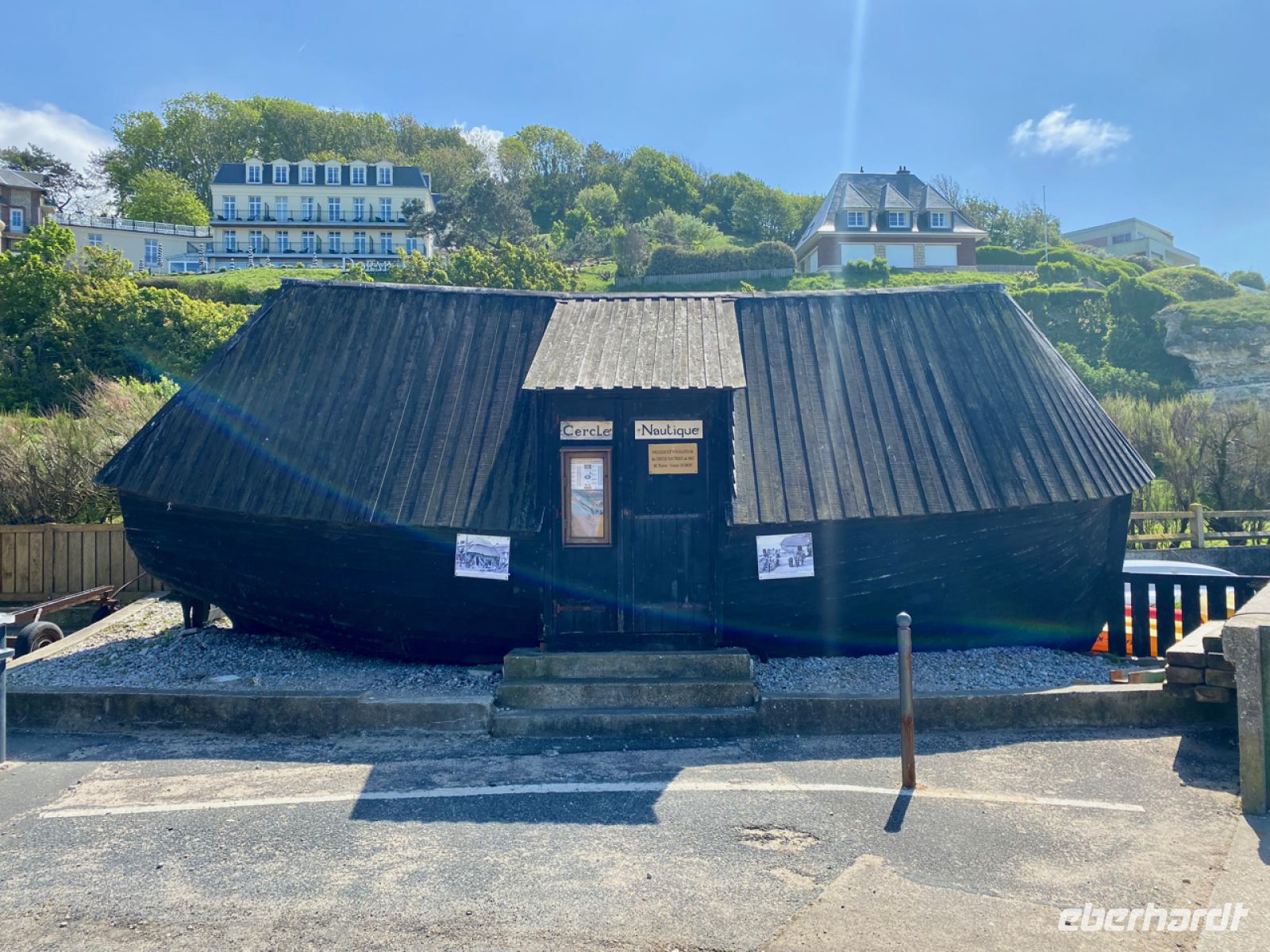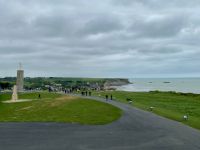 Diese Stadt scheint wesentlich größer, als sie ist. Es liegt an ihrer historischen Bedeutung, an der mächtigen Kathedrale und vielem mehr. Vor allem ist hier auch der Wandteppich von Bayeux zu Hause, der zur Zeit für mehrere Jahre restauriert wird. Wir sehen uns in der Stadt um und fahren dann wieder ans Meer, wo wir in einem Fischerort mit dem Namen Port-en-Bessin-Huppain halten. Wer genau hinsieht, kann an der Steilküste alte deutsche Befestigungen und ein sogenanntes Widerstandsnest erkennen. Hier begann auch der Omaha Beach genannte Abschnitt der Landungsstrände, mit dem wir die zeitgeschichtliche Exkursion für heute abschließen.