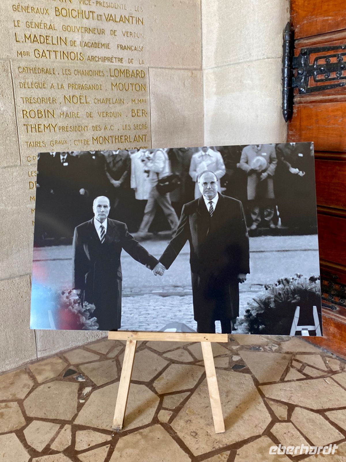 Als wir dann die Schlachtfelder verlassen, sind wir sehr bewegt. Einer der für den Verfasser dieses Berichts wichtigsten Eindrücke ist ein Foto aus dem Jahr 1984: Der französische Staatspräsident François Mitterrand und Bundeskanzler Helmut Kohl standen damals hier – und hielten sich an den Händen.