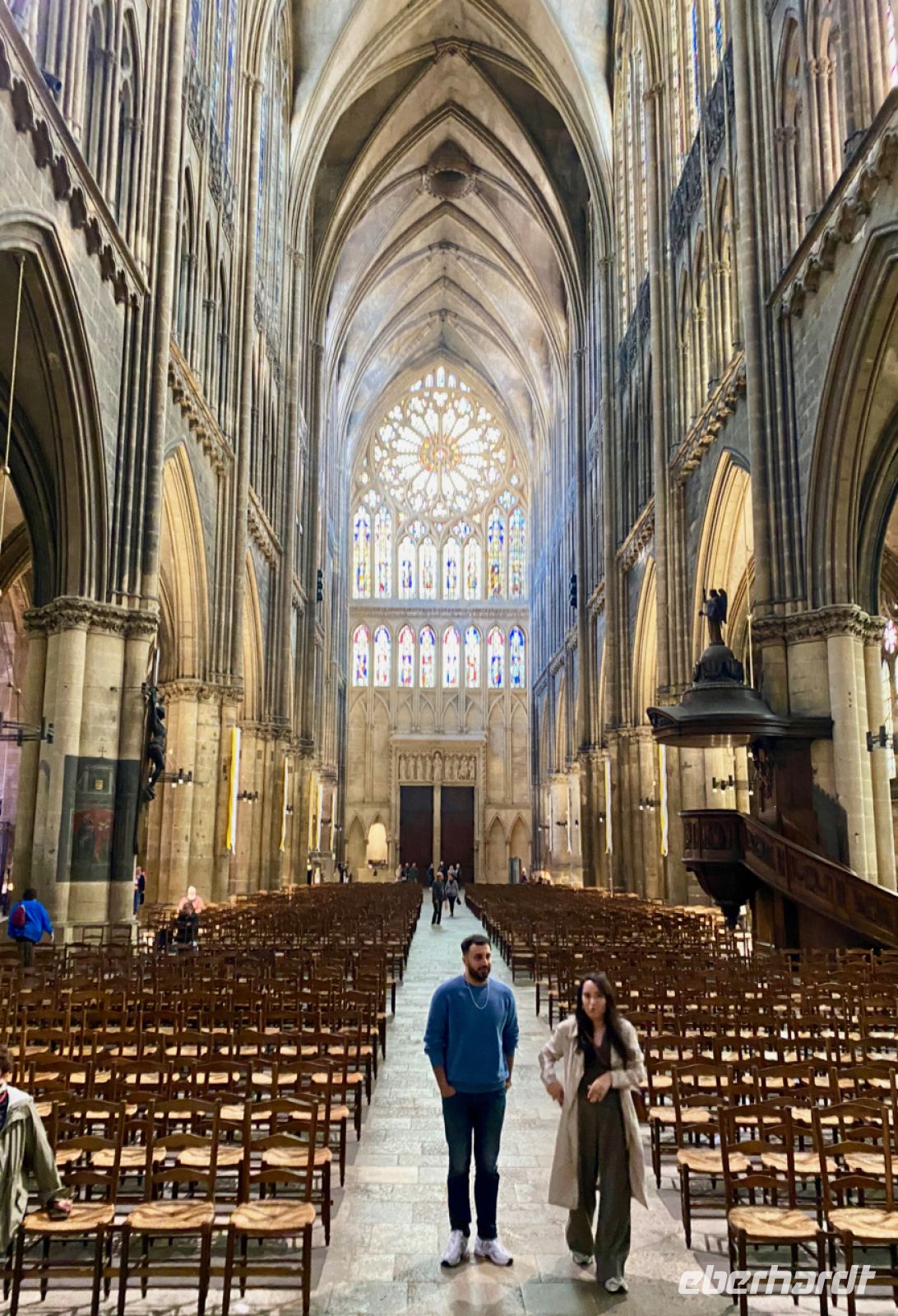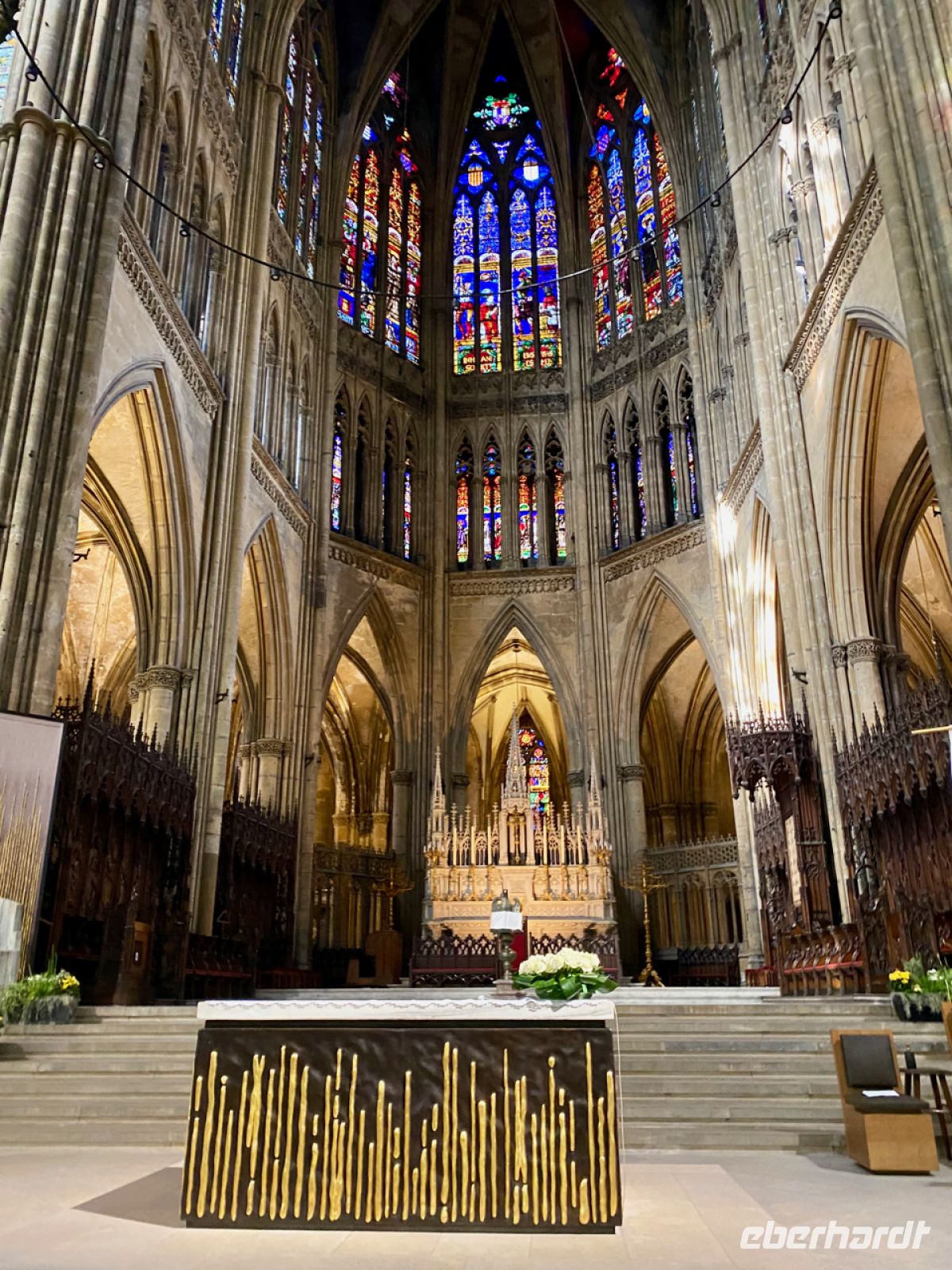 Nachdem wir uns alle eingerichtet haben, treffen wir uns zu einem gemeinsamen Stadtrundgang – wir wohnen ja direkt im Zentrum – und erkunden die reiche Geschichte der Stadt. Ein besonderes Erlebnis ist dabei natürlich der Besuch des gewaltigen Doms St. Stephan zu Metz. Über viele Jahrhunderte entstand hier eine Kathedrale des Lichts und der Pracht. Die ältesten Fenster sind bis zu sieben Jahrhunderte alt und haben manche schwere Zeit überstanden. Neuere sind von Künstlern wie Marc Chagall gestaltet, ganz neue entstehen gerade aus zeitgenössischer Hand. Auch von außen ist der Bau überwältigend, ein Erlebnis!