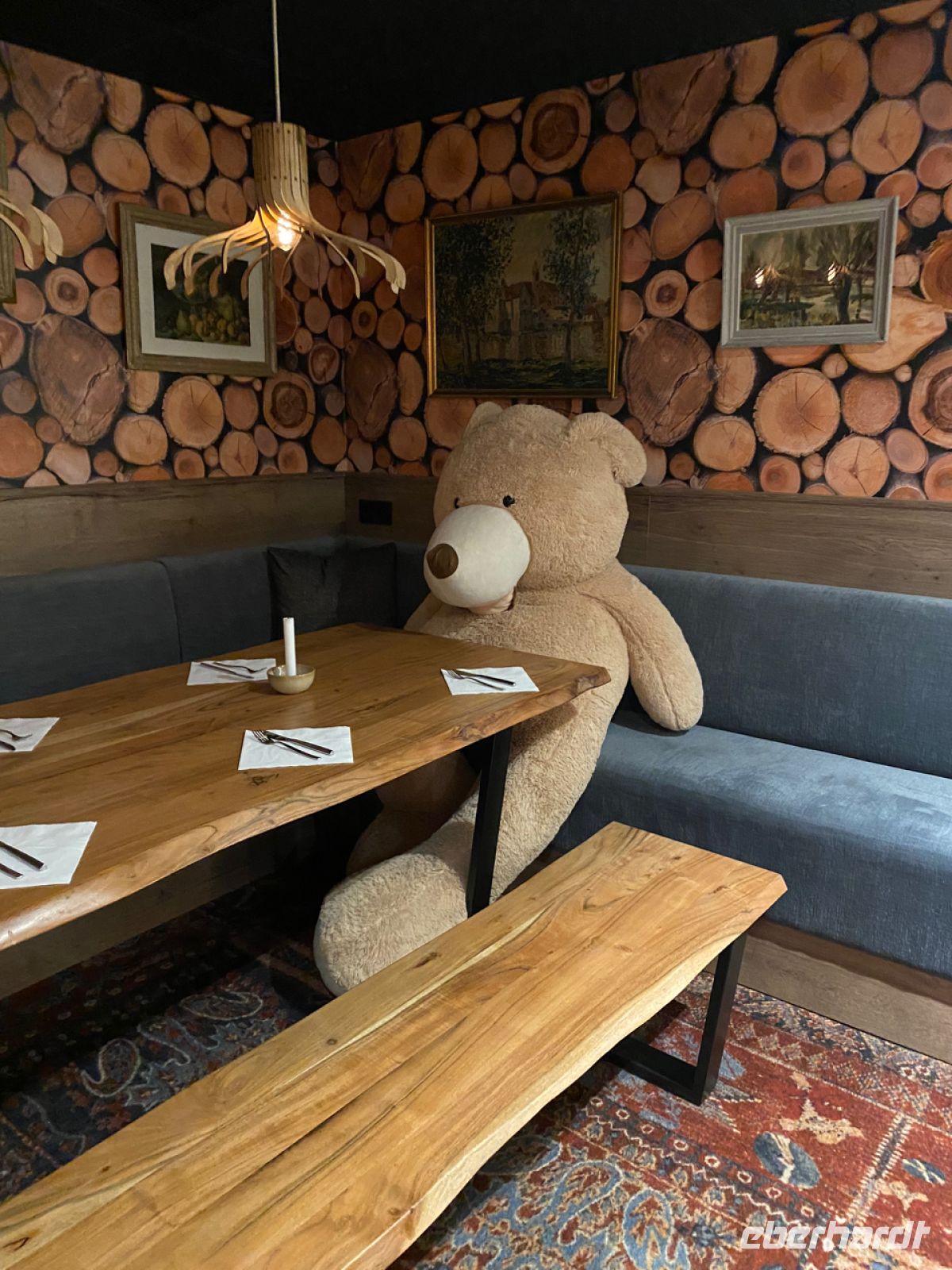 Wir sind jetzt schon nördlich von Paris und fahren entfernt parallel zur Seine, die wir dann in Rouen treffen. Wir sind nun in der Hauptstadt der Normandie angekommen! Im Hotel können wir uns erholen, es ist sehr ruhig und gemütlich, auch wenn es insgesamt groß und modern hier ist. Unser Abendessen findet in einer Bärenhöhle statt, in Anwesenheit des Hausherrn – na dann, gute Nacht für heute!