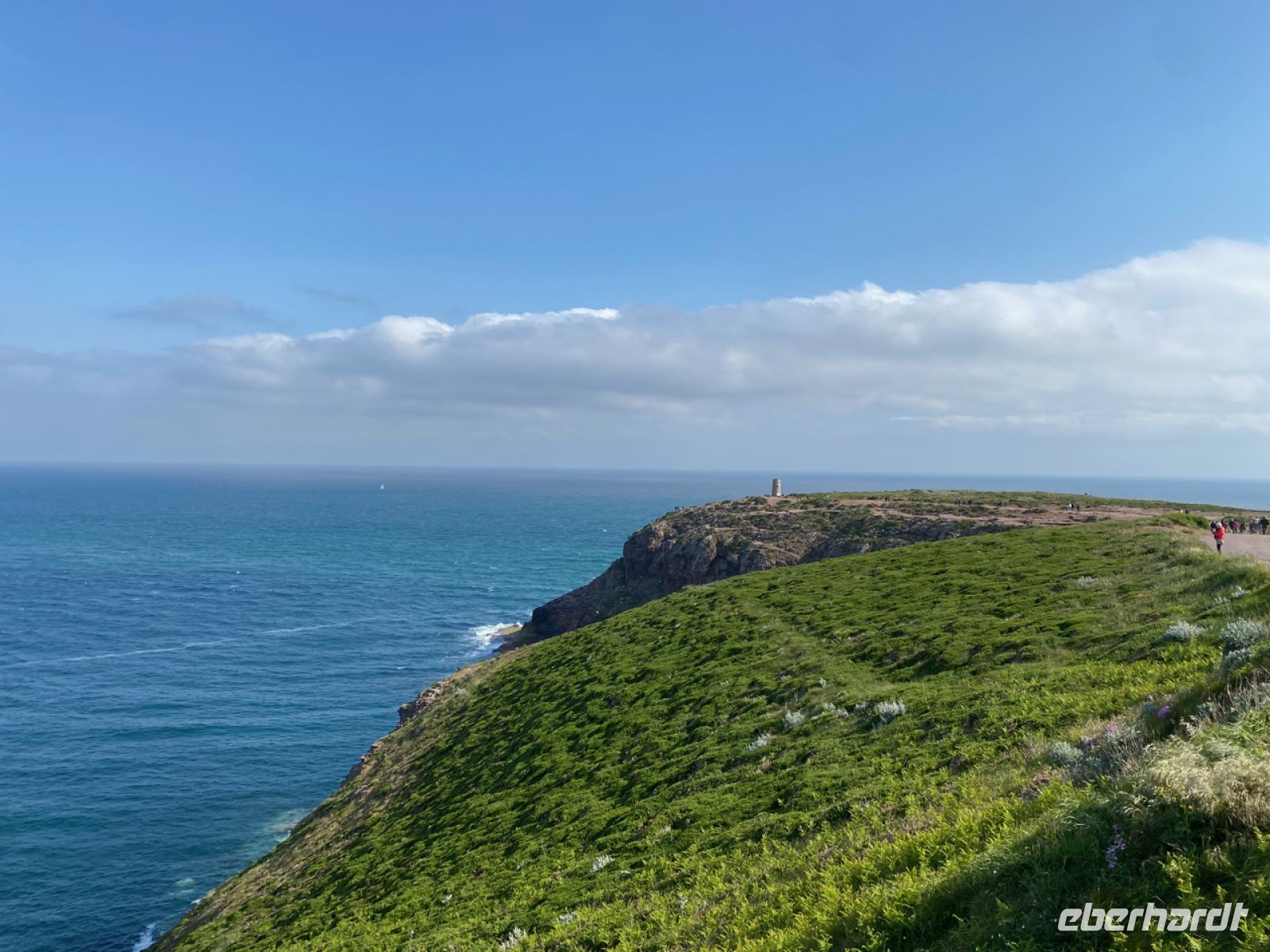 Auch unsere nächste Besichtigung widmet sich einem Meisterwerk der Baukunst. Der ältere der beiden Leuchttürme am Cap Fréhel stammt aus dem 17. Jahrhundert; der Festungsbaumeister Vauban hat ihn einst für König Ludwig XIV. errichtet. Das Schönste hier ist allerdings die eindrucksvolle Natur. Es riecht nach Meer und Pflanzen im Sonnenschein. In diesem Licht können wir die besondere Farbe des Meeres leuchten sehen, die der Küste hier den Namen Côte d’Émeraude, zu deutsch Smaragdküste, gab.