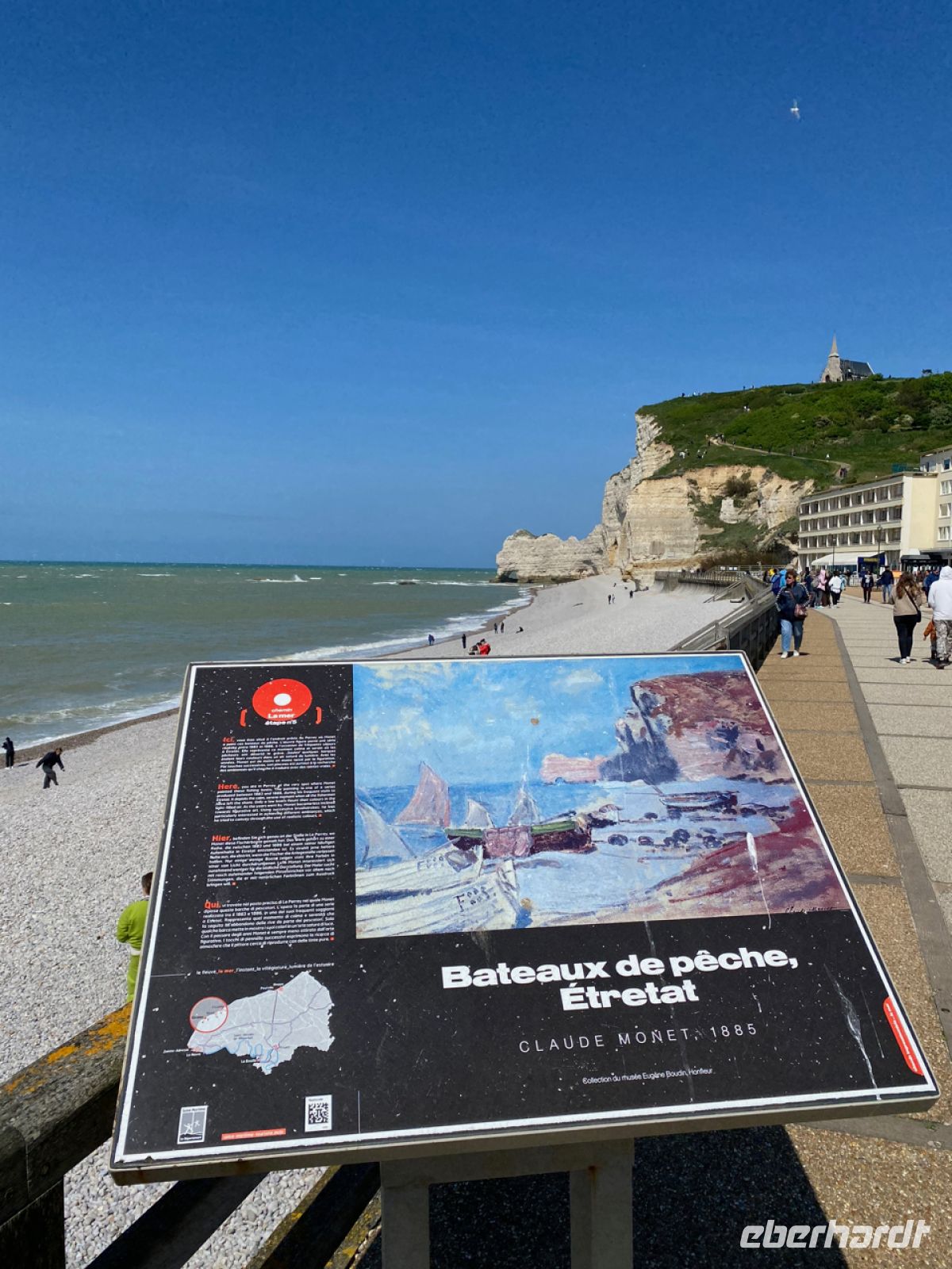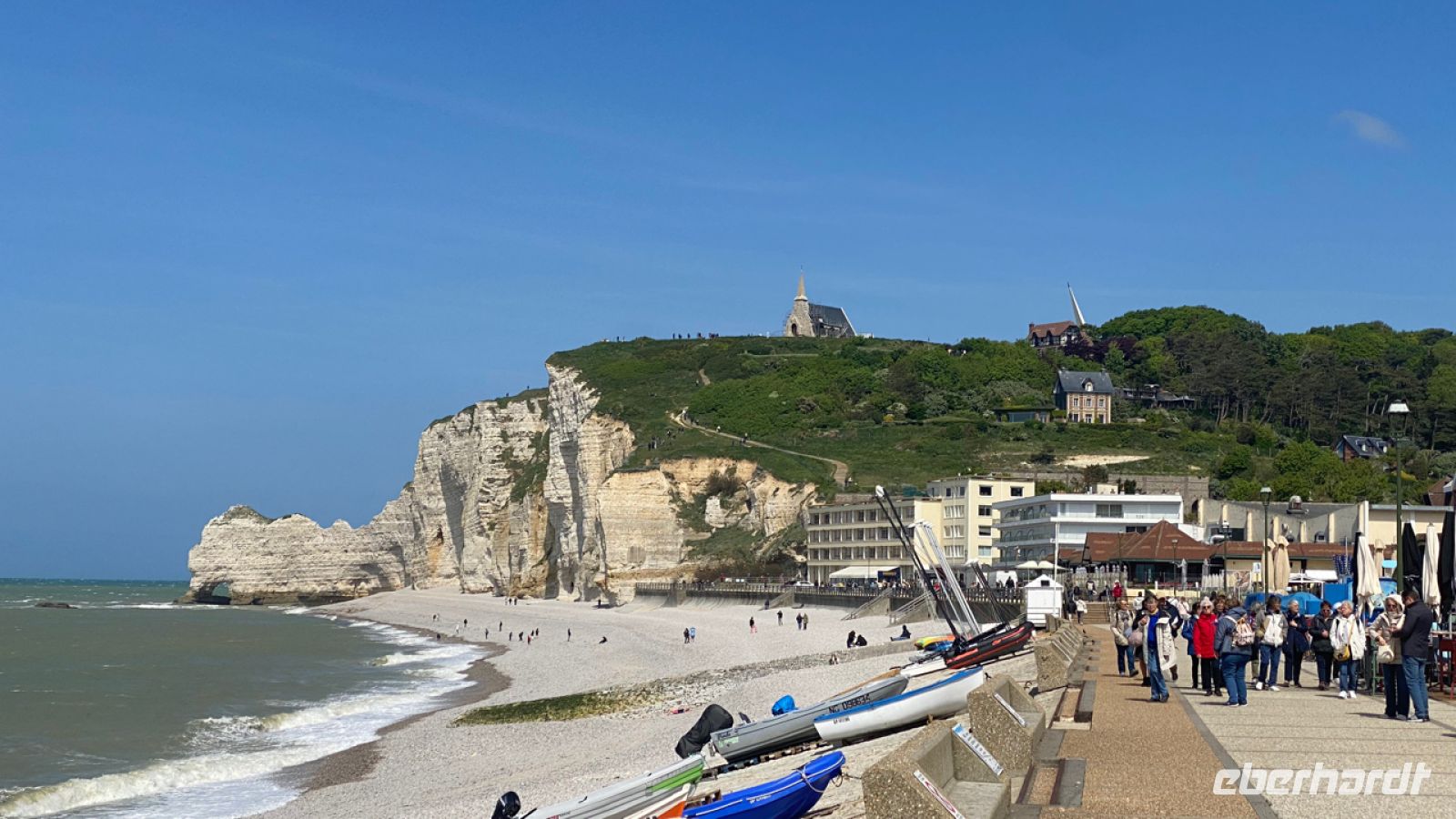 Unterhaltsam und spannend zeigt sie uns bei einem Spaziergang die Pracht der Gotik, das mittelalterliche Rouen mit seinen faszinierenden Fachwerkbauten, den Prunk und den Reichtum der Großen Uhr und natürlich hören wir die Geschichte der heiligen Johanna von Orléans, deren Scheiterhaufen hier einst stand. Es gibt noch etwas Freizeit, bevor wir dann im Bus alle wieder treffen, um an die Alabasterküste bei Étretat zu fahren. Hier stehen die Felsentore, die auch auf Monets Bildern zu sehen sind. Am Strand aus Feuerstein genießen wir die Aussicht und die Meeresbrise, und so mancher erklimmt eine der Klippen, um von dort noch weiter zu blicken.