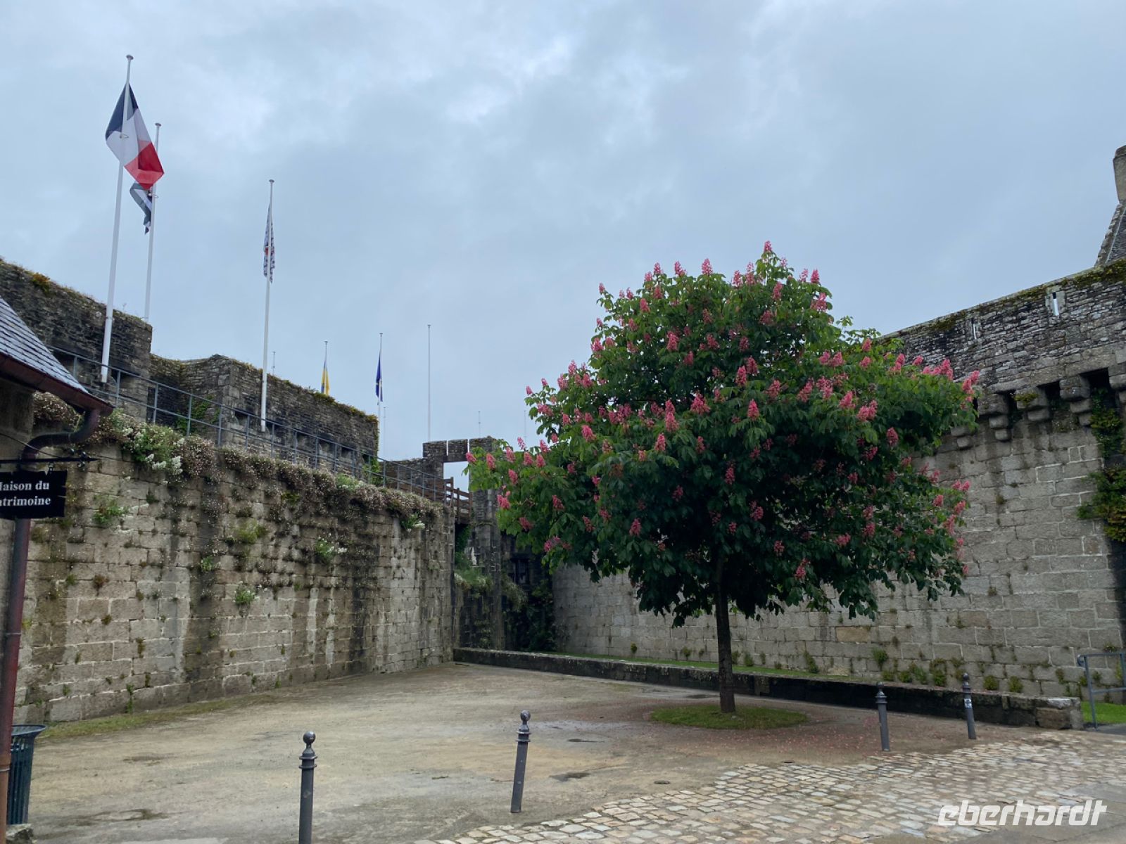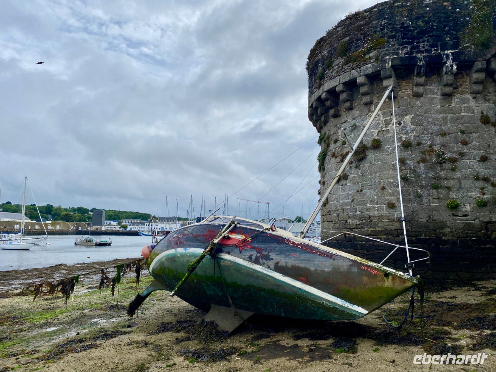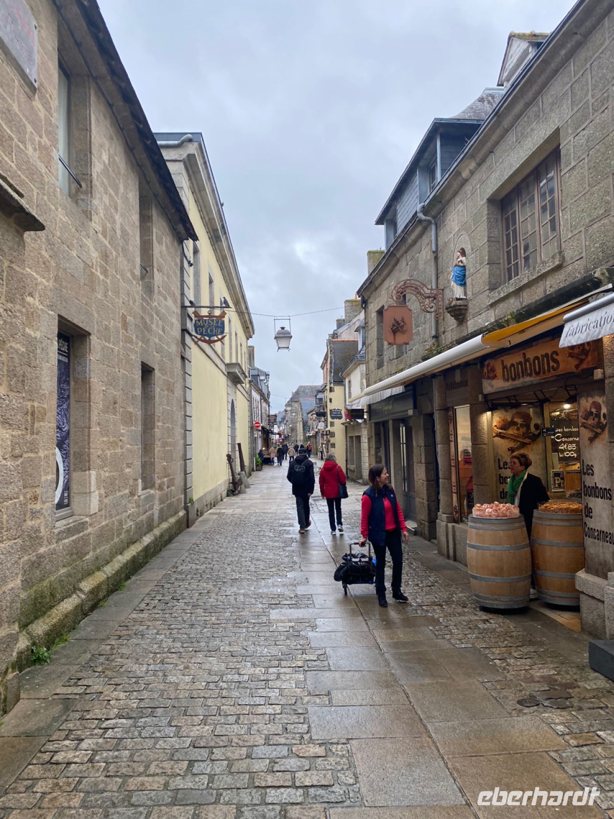 Heute verlassen wir Quimper, um noch morgens, bevor die Stadt überlaufen sein wird, Concarneau zu besuchen – genauer gesagt die Ville Close, die geschlossene Stadt. Die Befestigung erinnert nicht ohne Grund an Saint-Malo. An beiden Orten hatte der Ingenieur Vauban seine Hand im Spiel. Wir kennen schon seinen Leuchtturm. Wir haben Glück und gehören zu den Ersten, die die Stadt fast ganz alleine erleben. Umgeben von gewaltigen Mauern und Türmen wurde hier ein strategisch wichtiger Hafen im 17. Jahrhundert ausgebaut. Es ist Apple, das gibt dem Ort noch eine ganz besondere Atmosphäre. Es riecht nach Algen und Meer, während sich im Städtchen langsam der Duft der typischen bretonischen Bäckereien verbreitet.