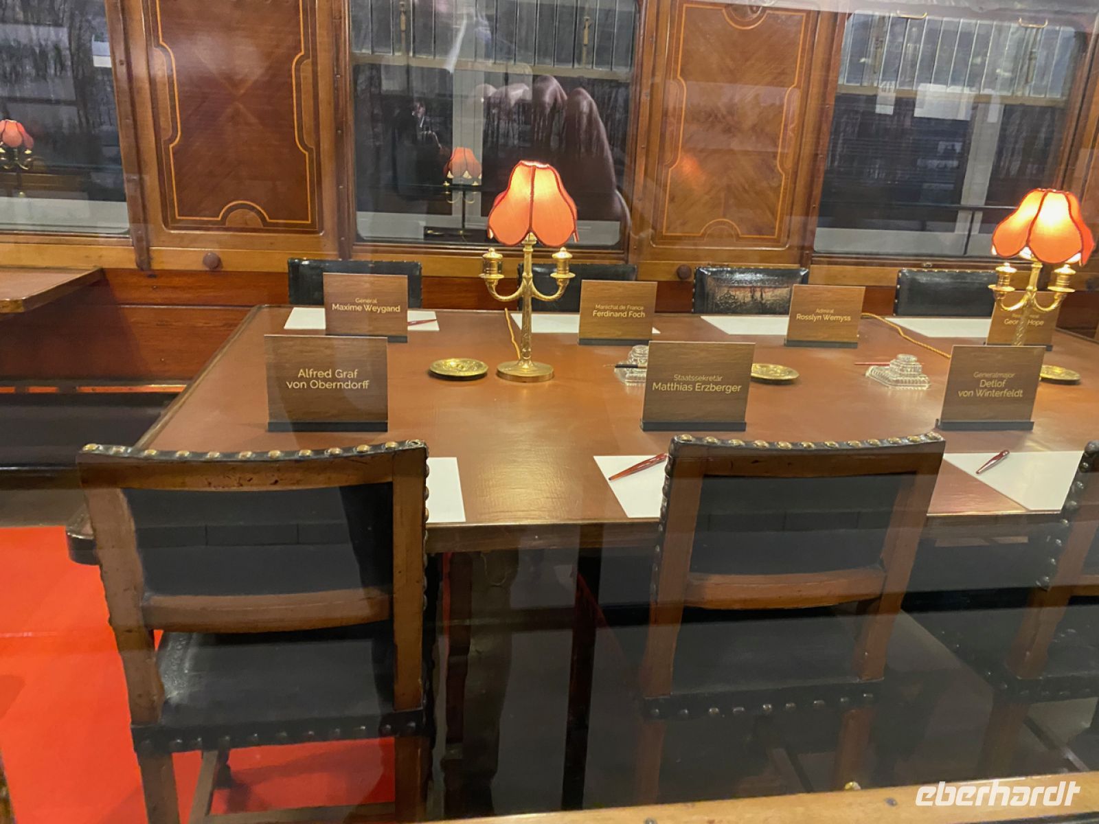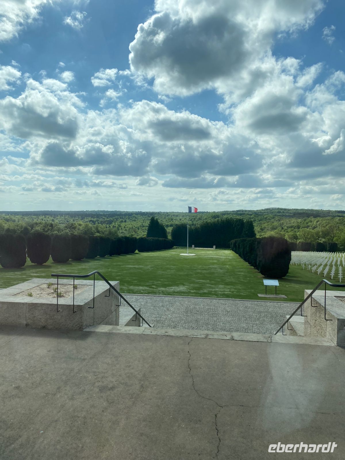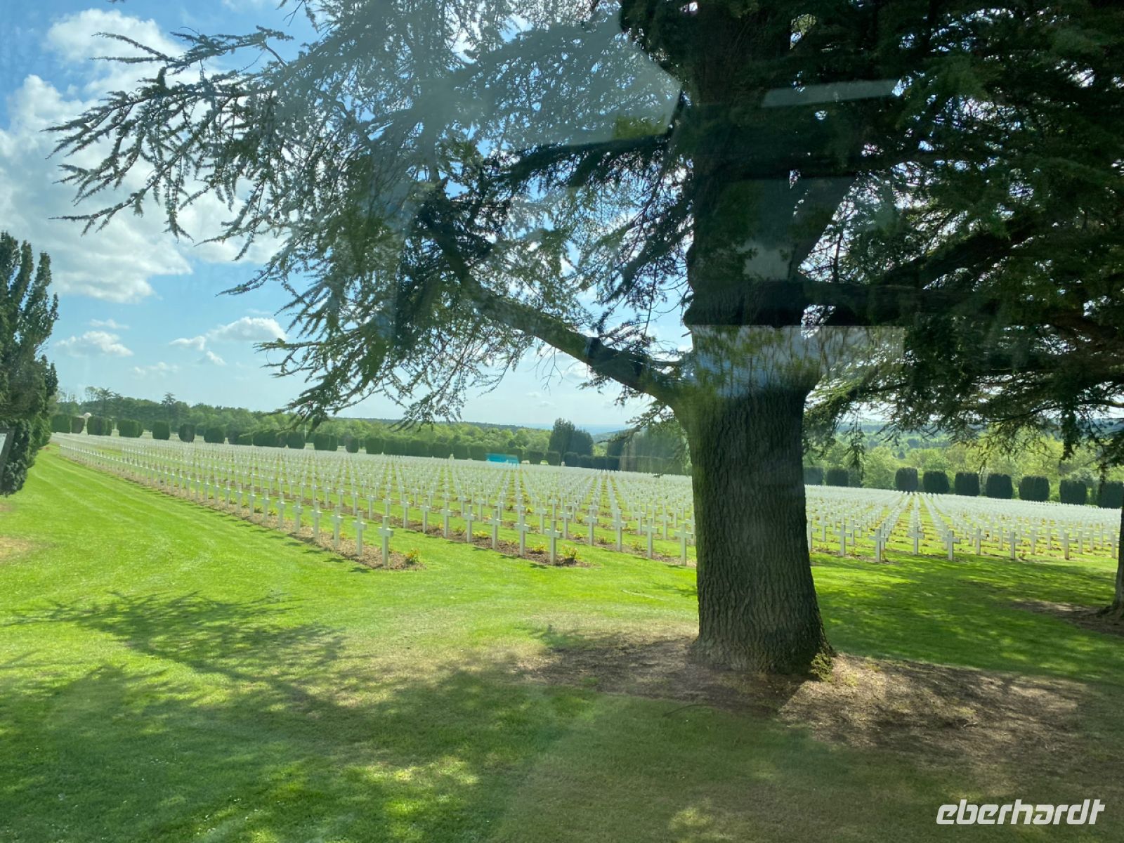 Dazu passt ein Besuch, den wir nicht zuletzt dank unseres tollen Fahrers Evgenij noch in unser Programm unterbringen können. Auch wenn die gefahrene Strecke heute recht lang ist, liegen wir so gut im Zeitplan, dass wir nach einer schönen Fahrt durch die für erfreuliche Getränke berühmte Champagne den Wald von Compiègne ansteuern. Hier steht der berühmte Eisenbahnwagen aus dem Zug, in dem unter sehr unterschiedlichen Umständen die Waffenstillstände beider Weltkriege unterzeichnet wurden. Ein Museum und eine Gedenkstätte gibt es auch hier und einen schön gestalteten Park.
