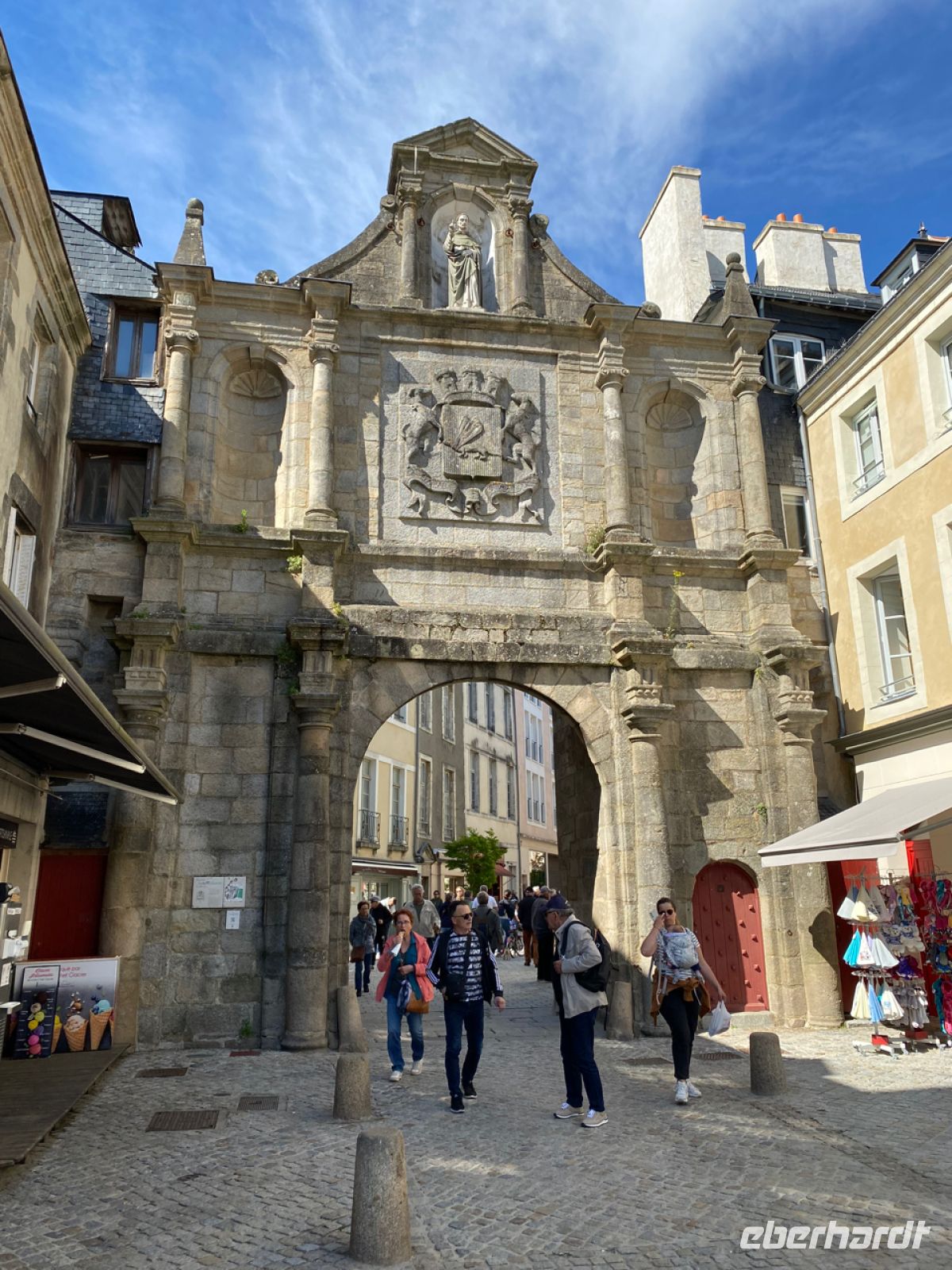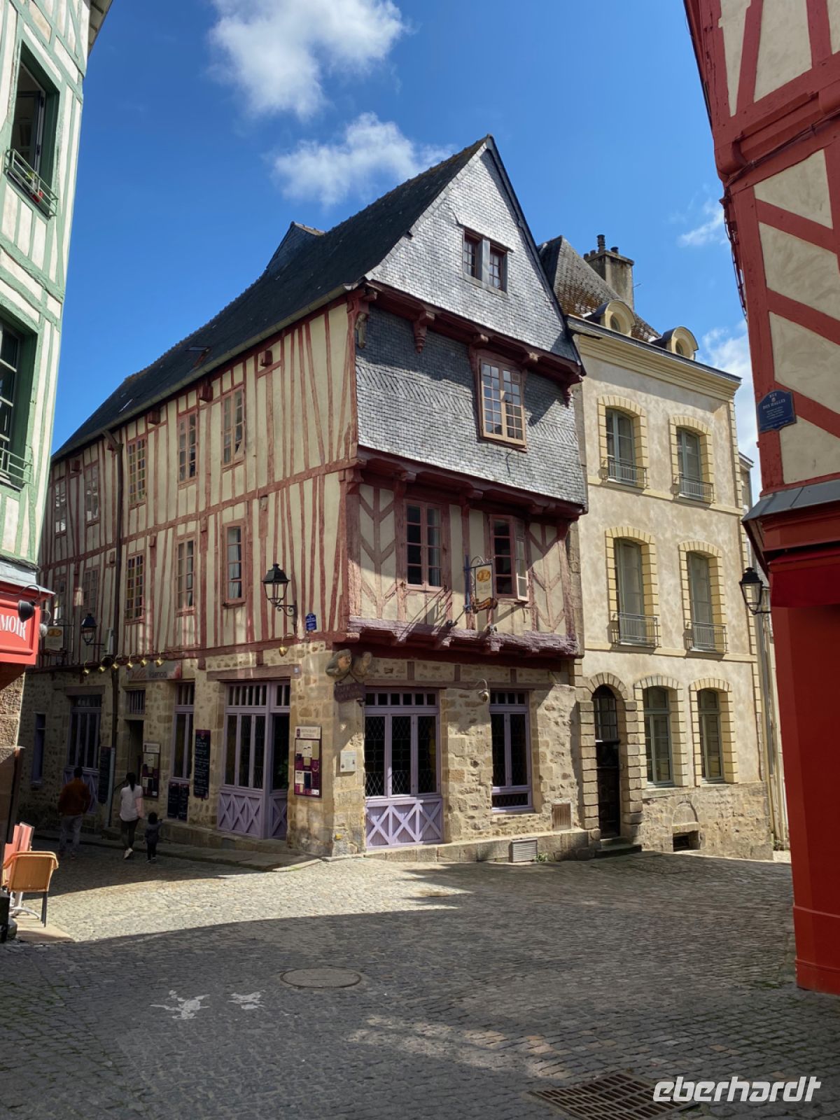 Am Nachmittag treffen wir dann in der Stadt Vannes ein. Hier erwartet uns Kristin; zu Fuß führt sie uns durch diese bedeutende bretonische Stadt. Wir wandern über Plätze, die den Reichtum der Bewohner symbolisieren, und durch enge Straßen, in denen sich uralte Fachwerkhäuser auf schwindelerregende Weise über die Gassen neigen.