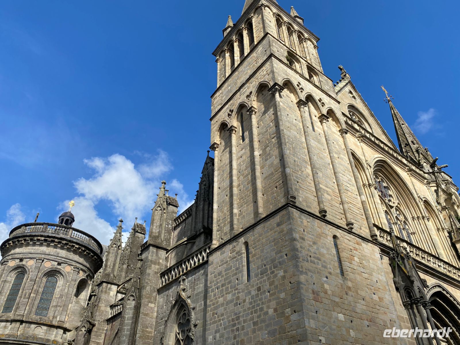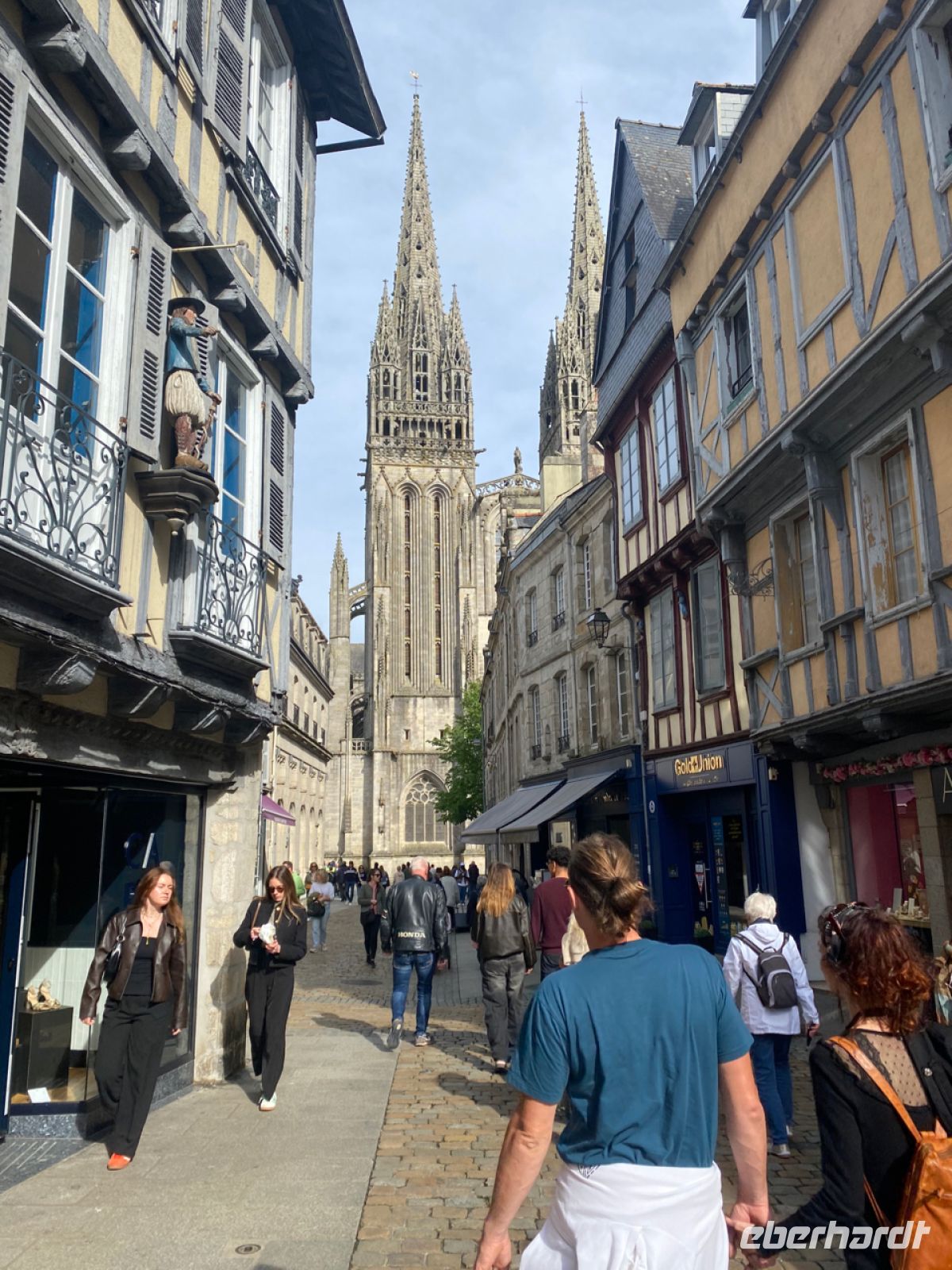 Wir fühlen uns dagegen sehr wohl in unserem modernen Luxus-Reisebus und machen uns nun wieder auf den Weg nach Kemper. Dort unternehmen wir noch einen Stadtspaziergang bei schönstem Sonnenschein in der Altstadt. Wir besichtigen die Kathedrale Saint-Corentin und haben danach noch Zeit zum Shoppen oder Bummeln, bevor wir im Hotel zu Abend essen und bald dann tief und fest schlummern.
