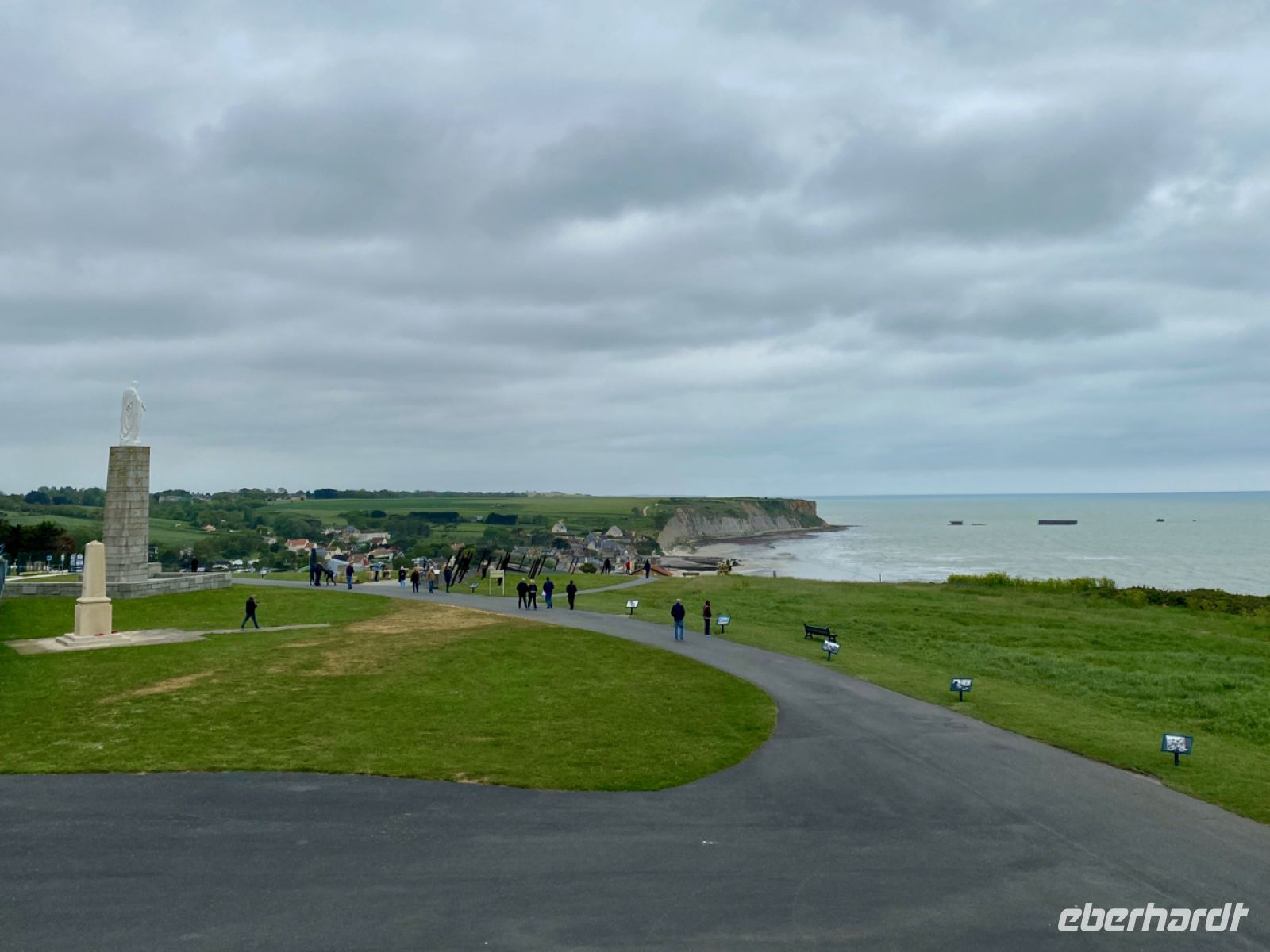 An Juno Beach entlang fahren wir dann nach Arromanches; hier sind wir nun in Gold Beach, wo ein gewaltiger künstlicher Hafen entstand. Die Überreste kann man immer noch sehr gut von unserem Aussichtspunkt sehen, ein Museum im Ort dokumentiert die Ereignisse in einer packenden Ausstellung. Wir haben Zeit, um alles anzusehen, und fahren dann weiter, an Obstgärten voller Apfelbäume vorbei, nach Bayeux.