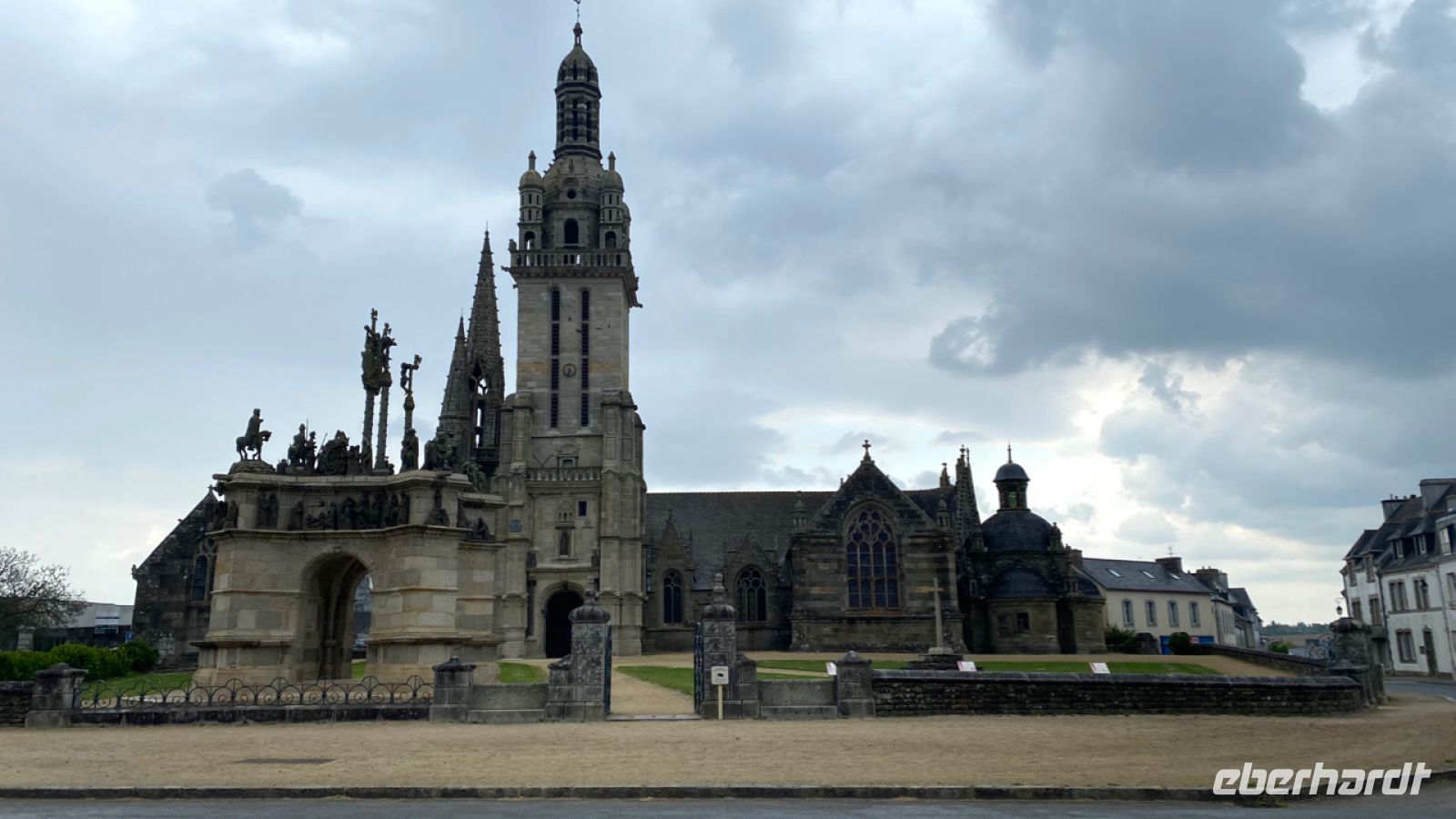 Wir halten am Strand Plage de la Baie des Trépassés, einem beliebten Treffpunkt der Wellenreiter, und fahren dann wieder ins Landesinnere. In Confort-Meilars erwartet uns eine ganz besondere bretonische Kirche. Auch hier gibt es eine prunkvoll mit Figuren geschmückte Kreuzigunggruppe, hier Calvaire genannt. Einzigartig ist allerdings das berühmte Glockenrad der wundertätigen Madonna, an dem wir hier auch drehen dürfen.