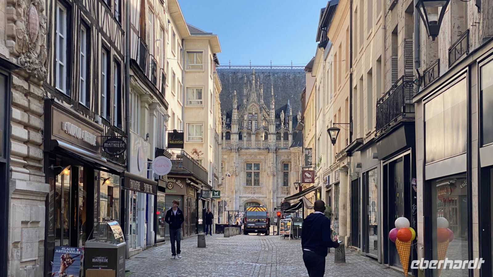 Jetzt sind wir in der Normandie! Hier gibt es unendlich schöne Küsten und malerische Orte in alten Städten. Kein Wunder, dass Claude Monet hier seine Inspiration fand! Wir beginnen heute unser Programm an einem seiner bedeutendsten Motive, der Kathedrale von Rouen mit ihrer unglaublichen Fassade. Hier treffen wir Inga, unsere Stadtführerin.