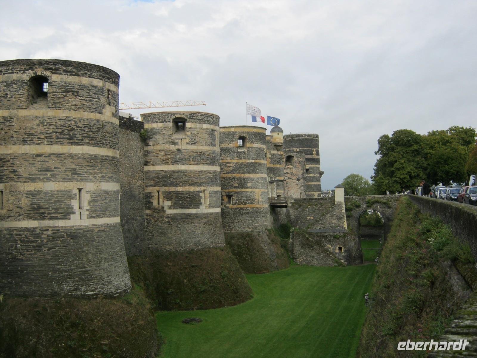 Es war ein weiter Weg zurück Richtung Osten, der uns bevorstand und den wir natürlich in Etappen bewältigten. Zunächst machten wir in Angers Station. Das dortige Schloß macht mit seinen gewaltigen gestreiften Mauern immer noch einen imposanten Eindruck, das Innere versinnbildlicht das lateinische Sprichwort: sic transit gloria mundi! Aber man verwahrt unterirdisch einen einzigartigen Schatz, den berühmten Wandteppich der Apokalypse. Den muß man einfach gesehen haben, auch wenn man ihn nicht gleich versteht und sich genötigt sieht, nachzulesen.