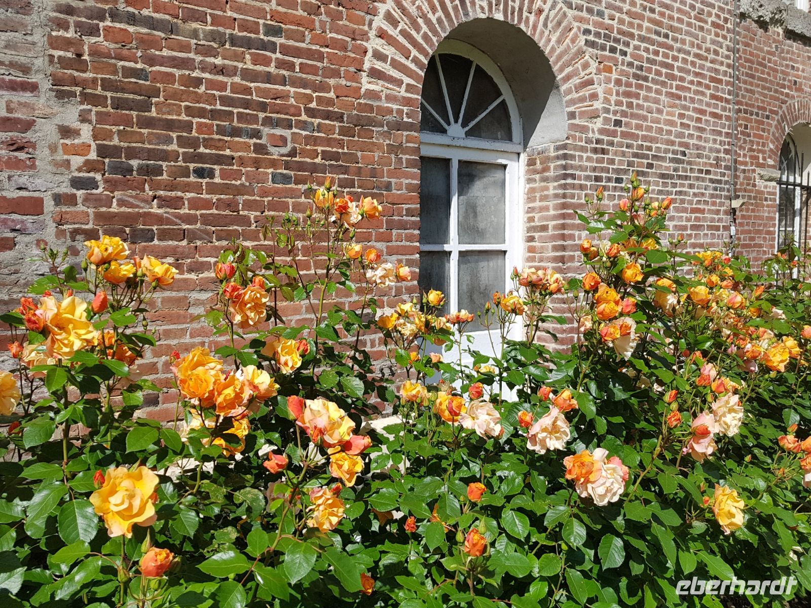 Dann ging es weiter nach Honfleur, wo uns unsere Reiseleiterin zum Alten Hafen führte, von dem Samuel de Champlain mit seinen Schiffen ablegten, um die Küste Kanadas zu erreichen und dort im Jahre 1608 Quebec zu gründen. Wenig später kamen wir zu der von Schiffsbaumeistern komplett aus Holz gebauten Kirche Ste-Catherine, die wir gemeinsam besichtigten. Dann blieb noch etwas Zeit, um sich auf dem Flohmarkt, der gerade um die Kirche herum statt fand, umzusehen, bevor anschließend zum Chateau du Breuil im Hinterland der Küste, dem Pays d'Auge, fuhren.