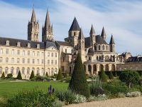 Gestärkt durch das sehr gutes Frühstück unseres Hotels, des Novotel Caen Côte de Nacre, das auch normannische Spezialitäten wie Apfelsaft und Camembert anbot, unternahmen wir mit unserer Reiseleiterin am Vormittag eine Stadtbesichtigung der Innenstadt von Caen. Sie wurde zwar im Zuge der Befreiung der Normandie im Zweiten Weltkrieg durch die alliierten Streitkräfte zu 80 % zerstört, dennoch sind einige Straßen und Sehenswürdigkeiten erhalten geblieben, die wir uns ansahen. So besichtigten wir zuerst die beeindruckende Abteikirche St. Etienne, in der der Normannenherzog Wilhelm der Eroberer, der nach der Eroberung Englands im Jahr 1066 zum König Englands gekrönt wurde, einst beigesetzt wurde. Sie stellt mit ihrer reich dekorierten Architektur ein Schlüsselbau innerhalb der romanischen Baukunst Frankreichs dar.