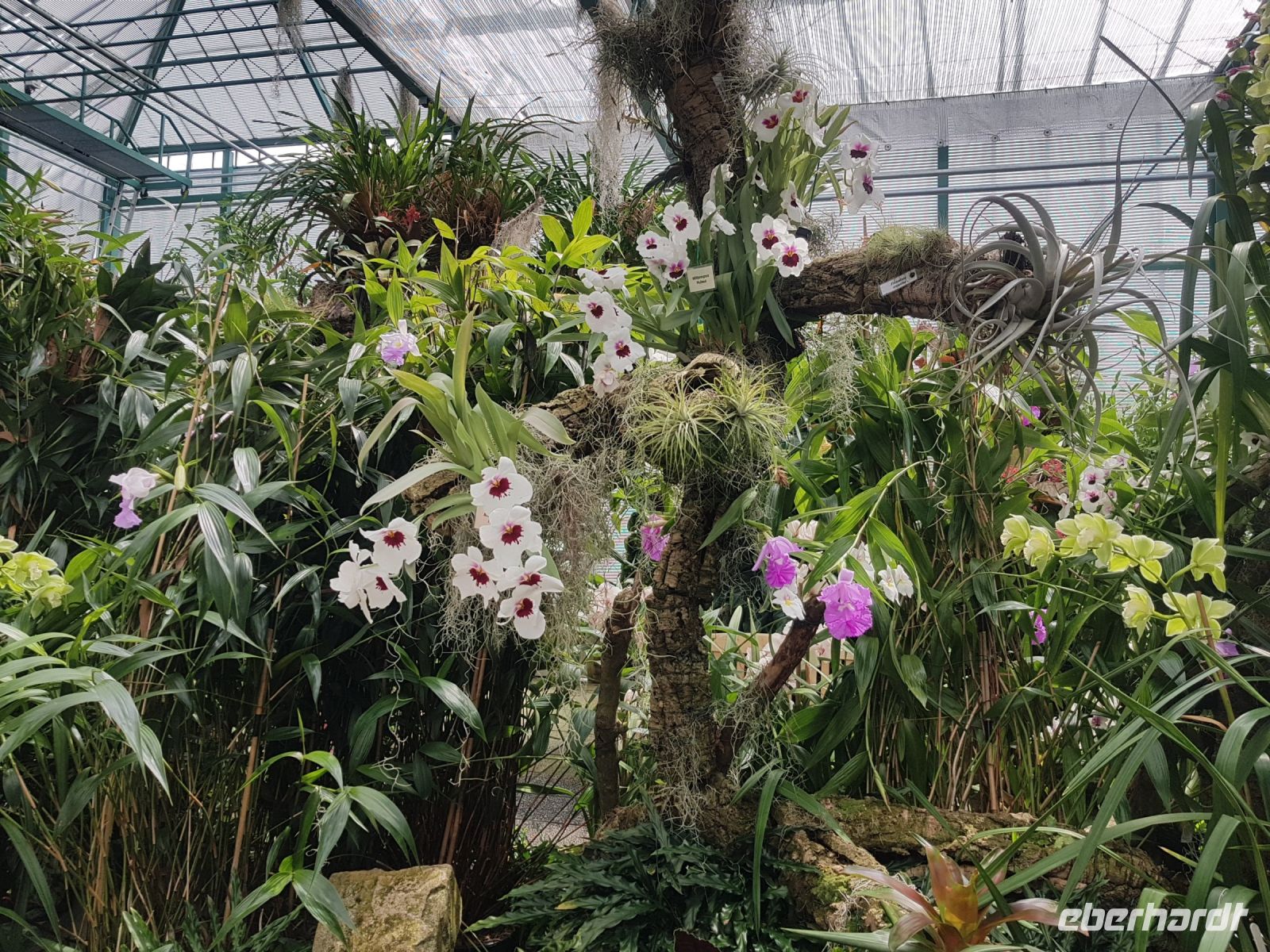 Gestärkt durch einen leckeren Krabbensalat oder andere schmackhafte Speisen setzten wir unsere Gartentour fort. Sie führt uns zur Eric Young Orchid Foundation, wo wir in einem großen Gewächshaus eine zauberhafte Orchideensammlung sahen. Orchideen wie sie noch nie jemand zu Gesicht bekommen hatte sahen wir dort. Sie stammen teilweise aus älteren Sammlungen, die Eric Young für seine Sammlung übernommen hat. Wir waren einfach nur fasziniert von der Schönheit und Vielfältigkeit dieser Orchideensammlung.