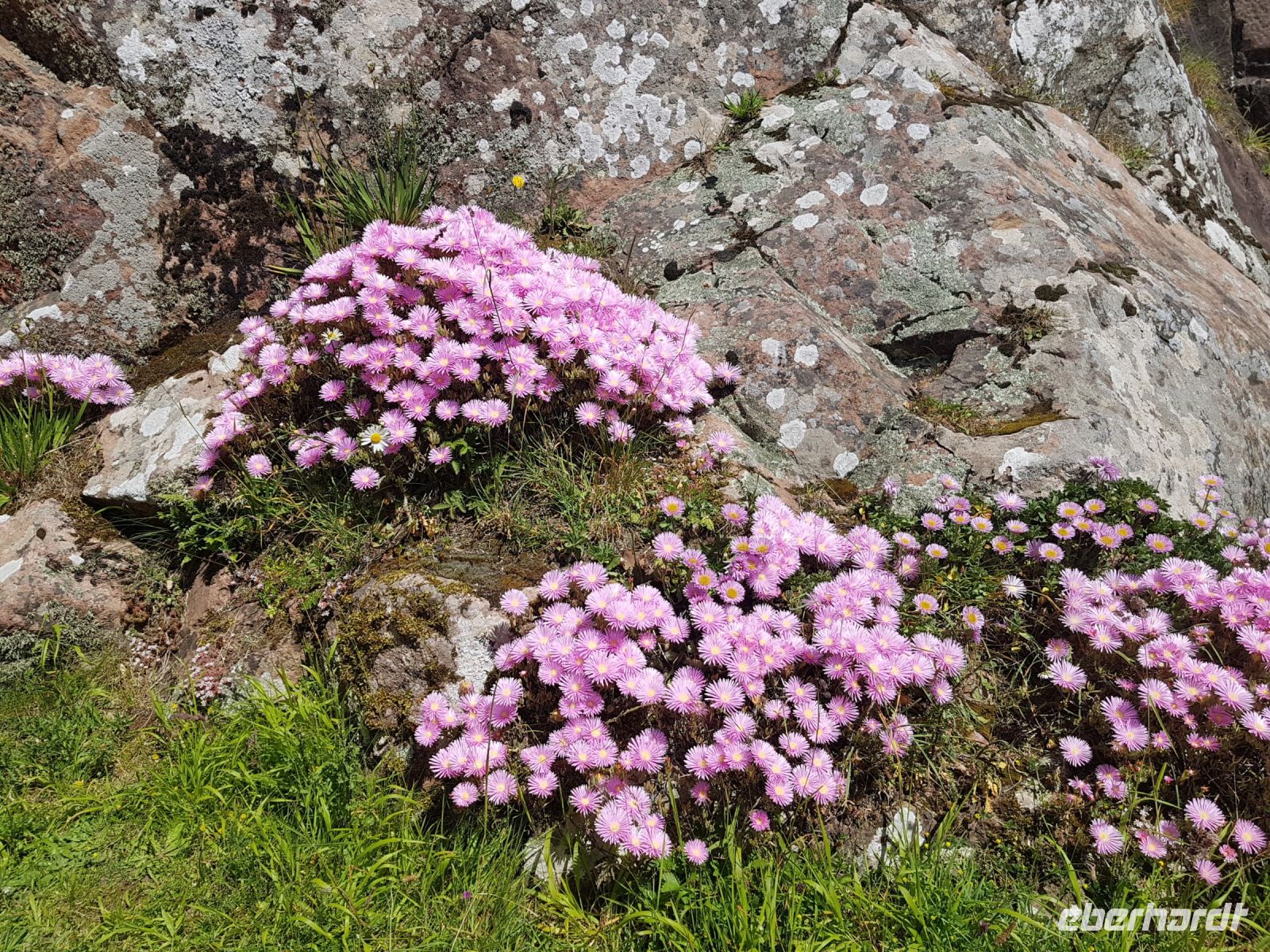 Zuerst besuchten wir den Garten Domaine des Vaux von Mr. & Ms. Benney, der uns als traumhaftes Gartenparadies überraschte. Vor dem Haus haben die Benney's ein in Form eines Amphitheaters terrassenförmig angelegtes Halbrund mit zauberhaft komponierten Blumenarrangements ausgeschmückt. Darüber hinaus erstreckt sich der Garten über das benachbarte Tal hinweg, in dem einige Bereiche sich selbst überlassen bleiben. Hier kann man sehr gut sehen, wie ungemein förderlich das Klima der Kanalinseln für die Vegetation ist.